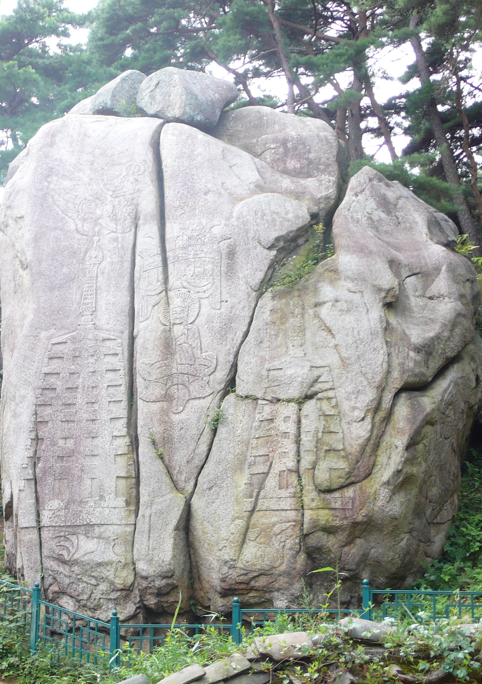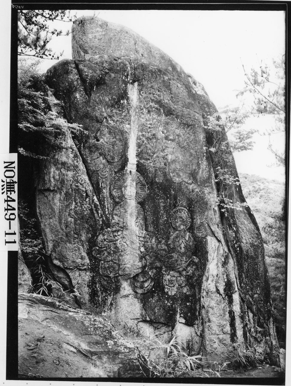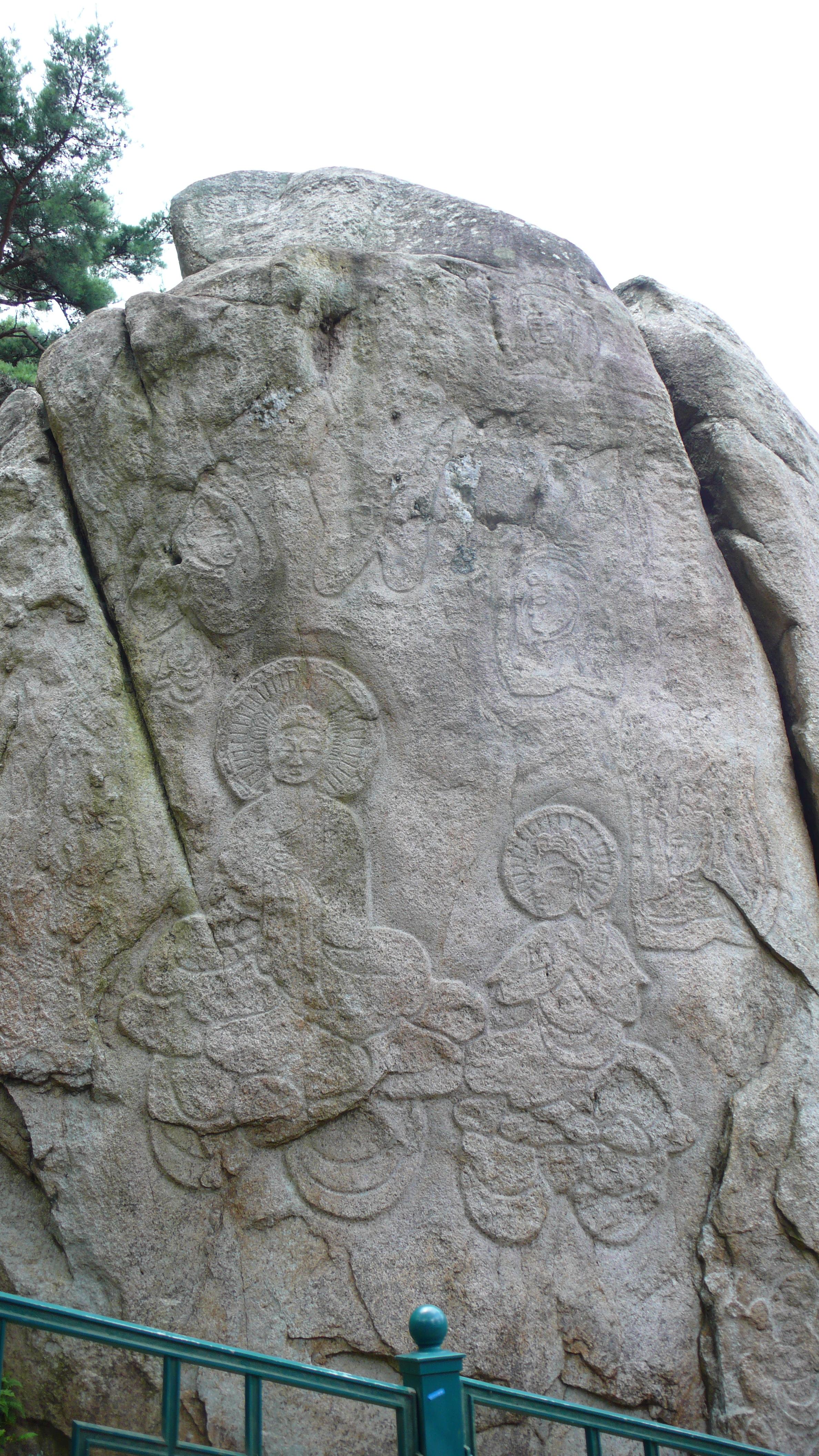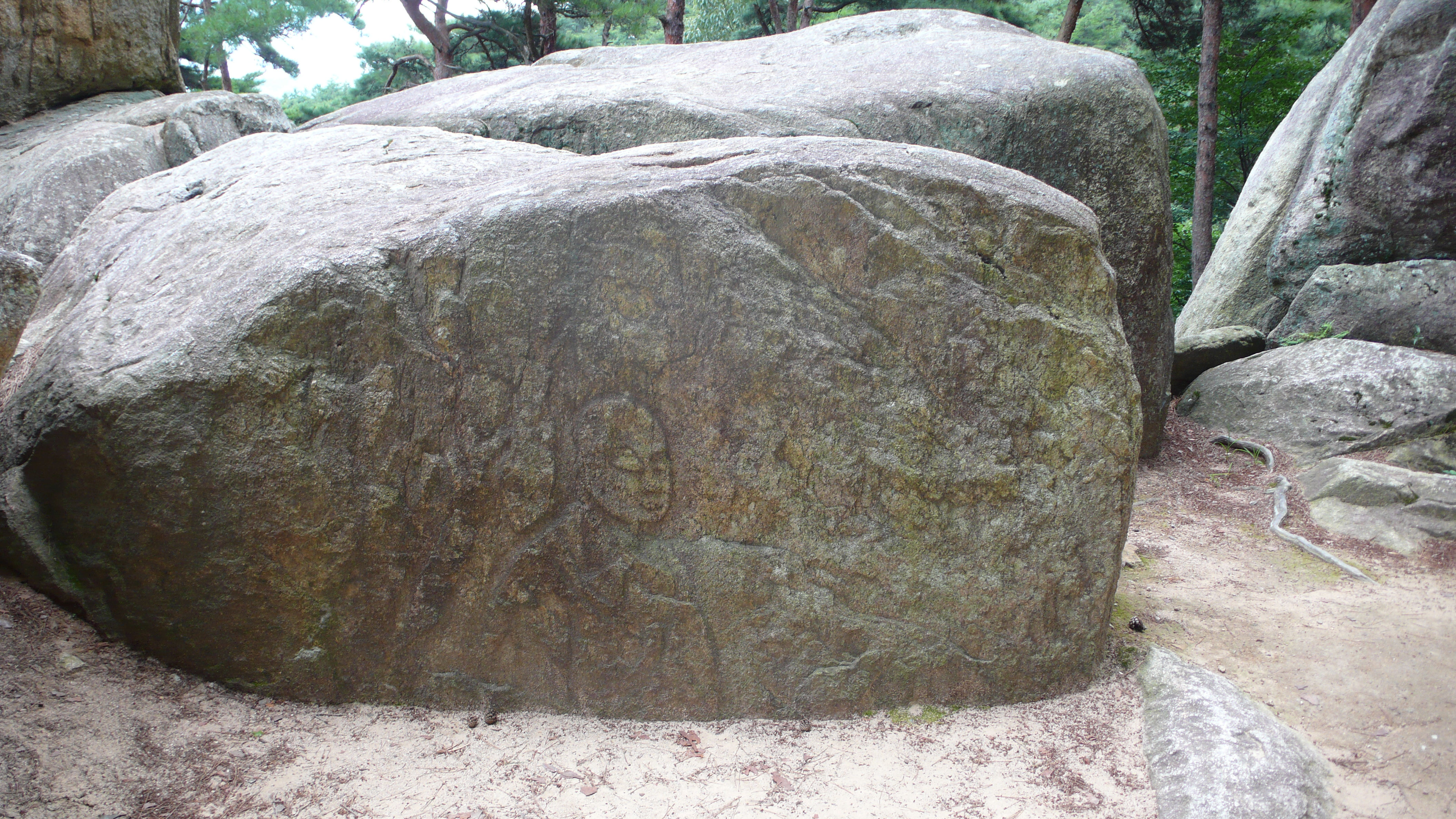 부처님 위로는 햇볕과 비바람을 막아주는 보개寶蓋(우산, 양산)가 펼쳐있다. 하늘에서는 천신이 내려와 부처님을 찬탄하고 땅에서는 주작과 현무를 배치시켜 부처님과 탑을 수호하고 있다. 천신과 부처님, 석탑과 수호신의 배치는 전형적인 사찰의 모습, 불국토의 모습을 바위에 재현해 놓은 모습이다.