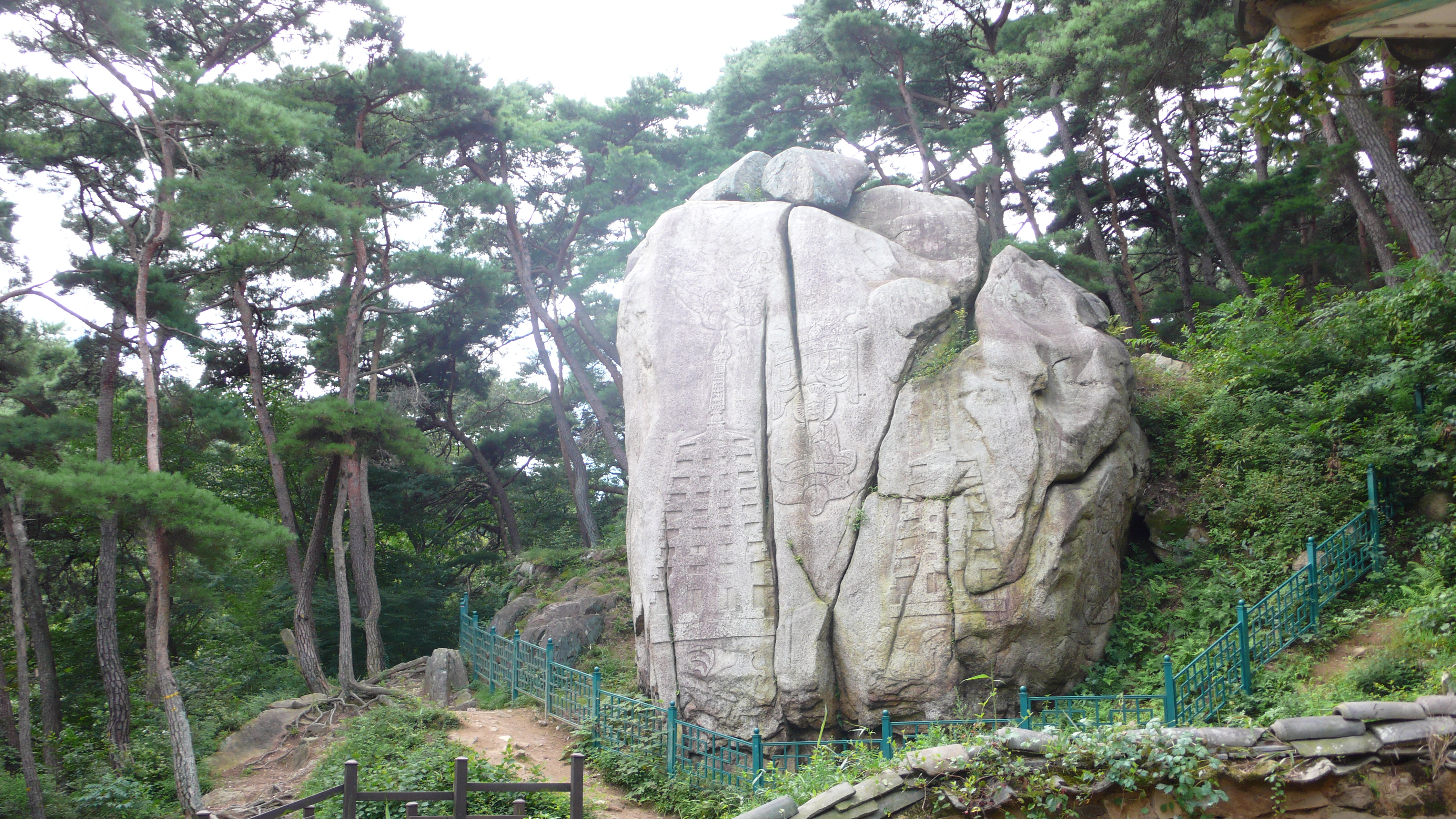 남쪽 산 위로 거대한 바위의 마애불상군이 서 있고 아래로 대웅전, 칠성각 , 요사체등이 자리 잡고 있다.