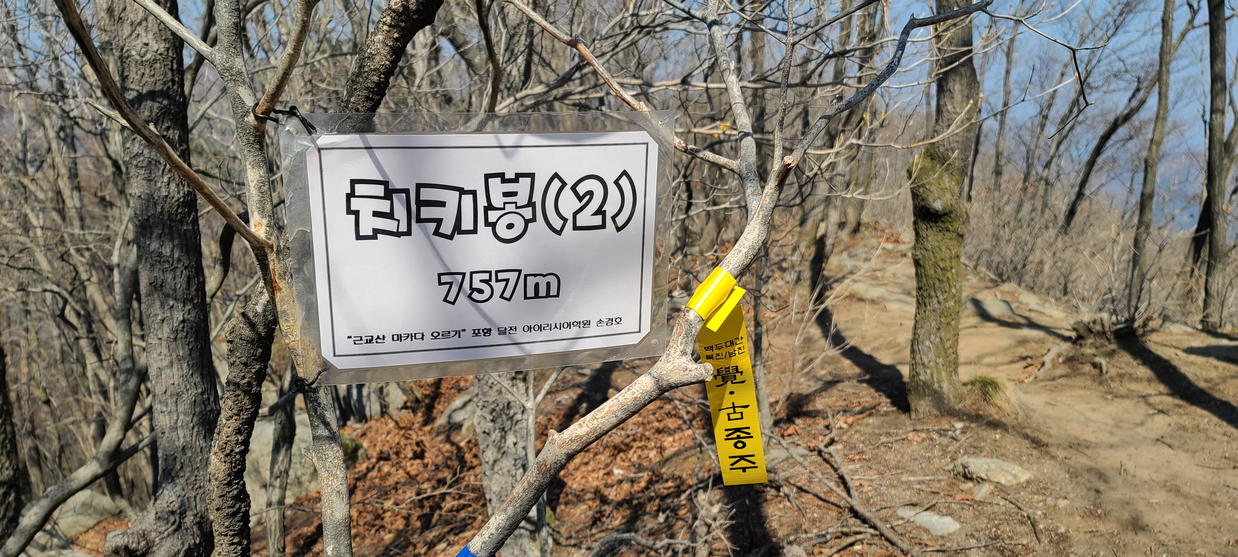 ◆ 산행코스 : 계정사~(2.5)~가산바위(1시간 40분)~(1.1)~중문 용바위~가산봉~(2.2)~치키봉~(3.2)~한티재