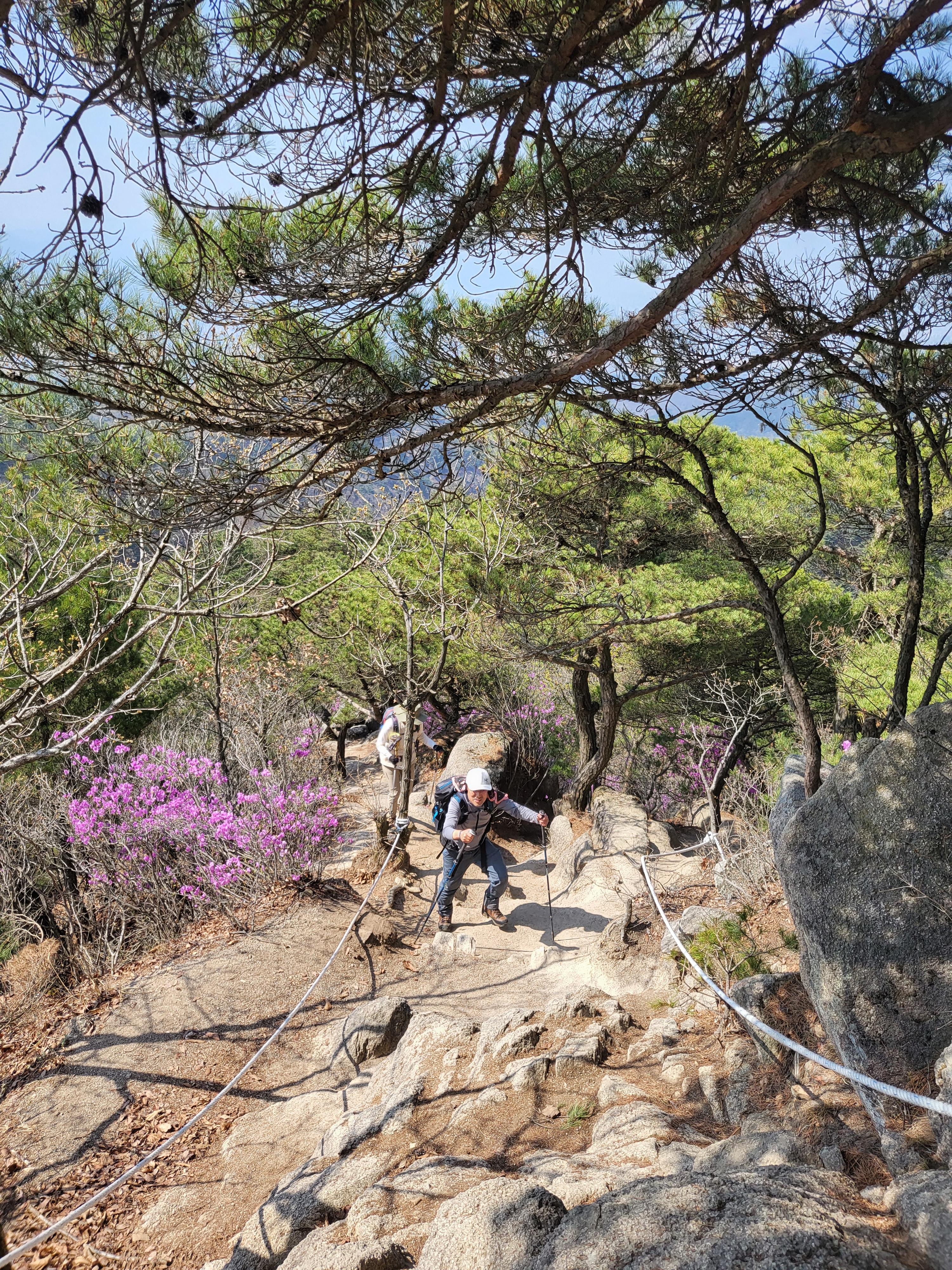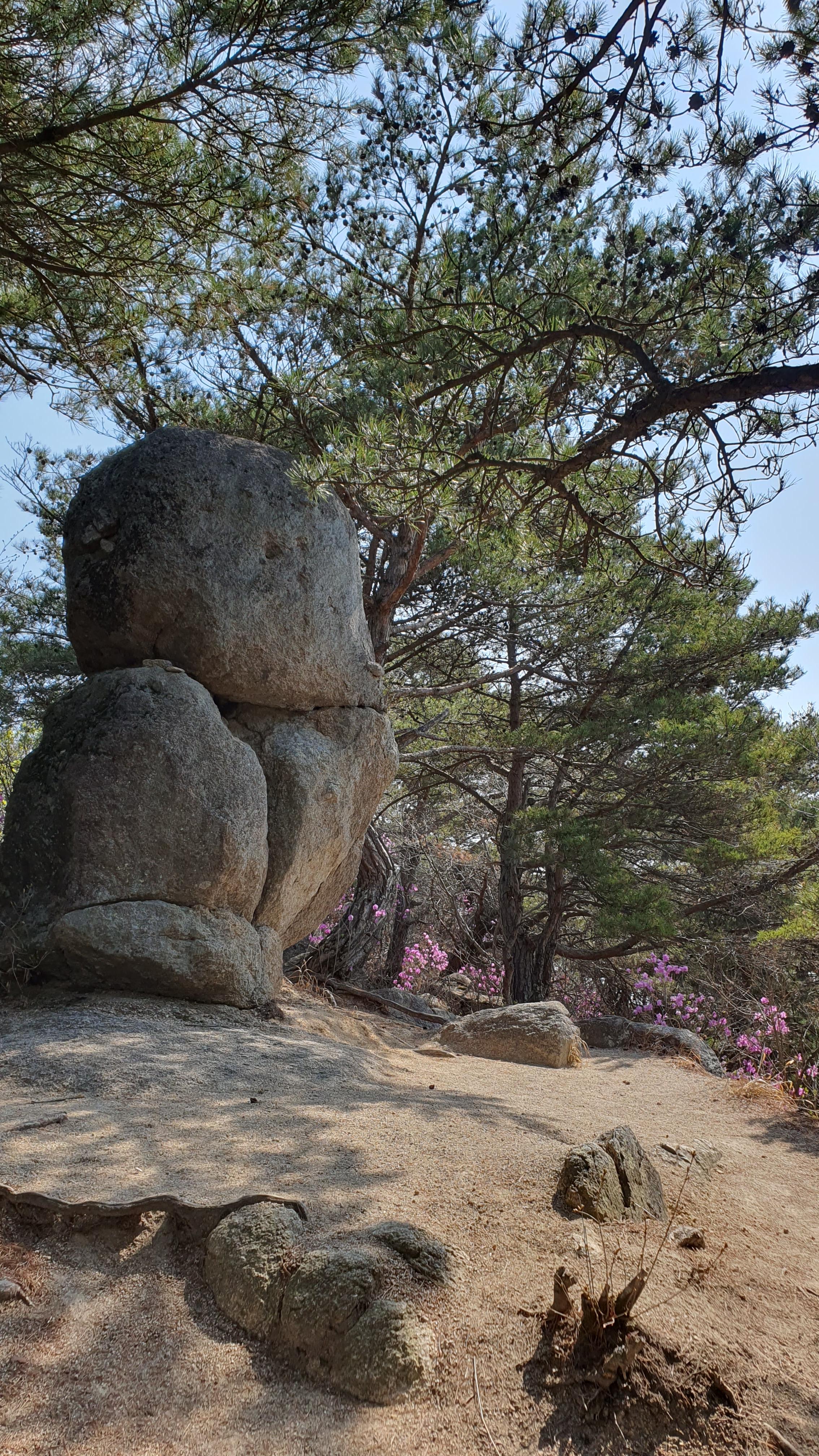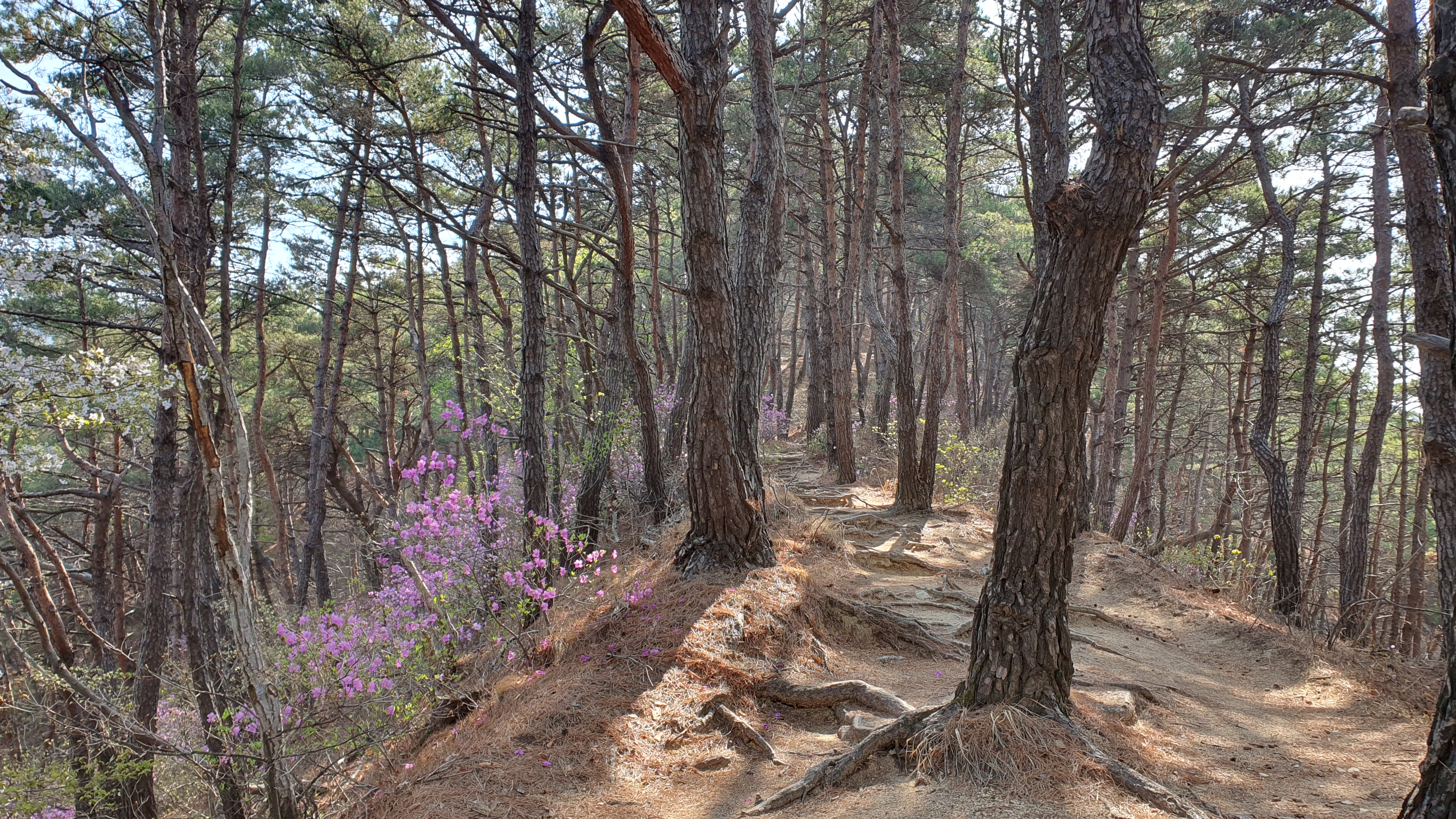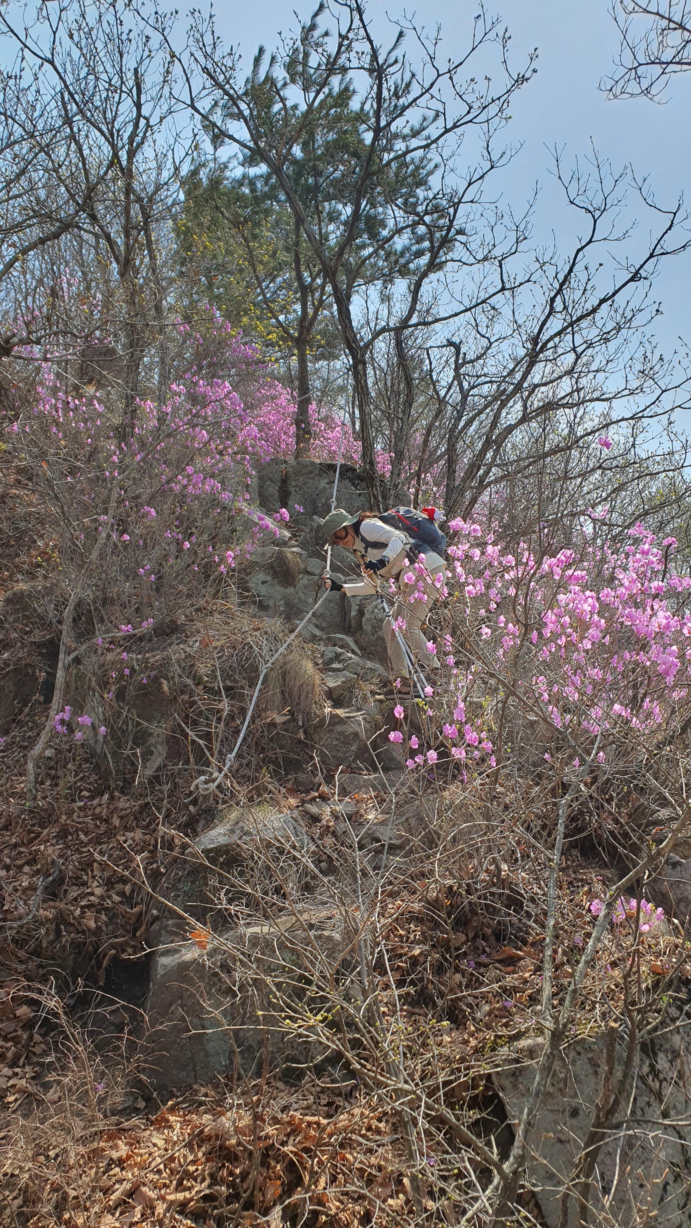 진달래 - 달래는 달래인데 왜 앞에 진자가 붙었을까? 진달래. 봄이면 어김없이 피어나며 절대 산을 떠나지 않습니다. 바위와 아름드리 소나무와 함께 당당히 산의 주인으로 살아가는 진달래. 그래서 진자가 붙었나?