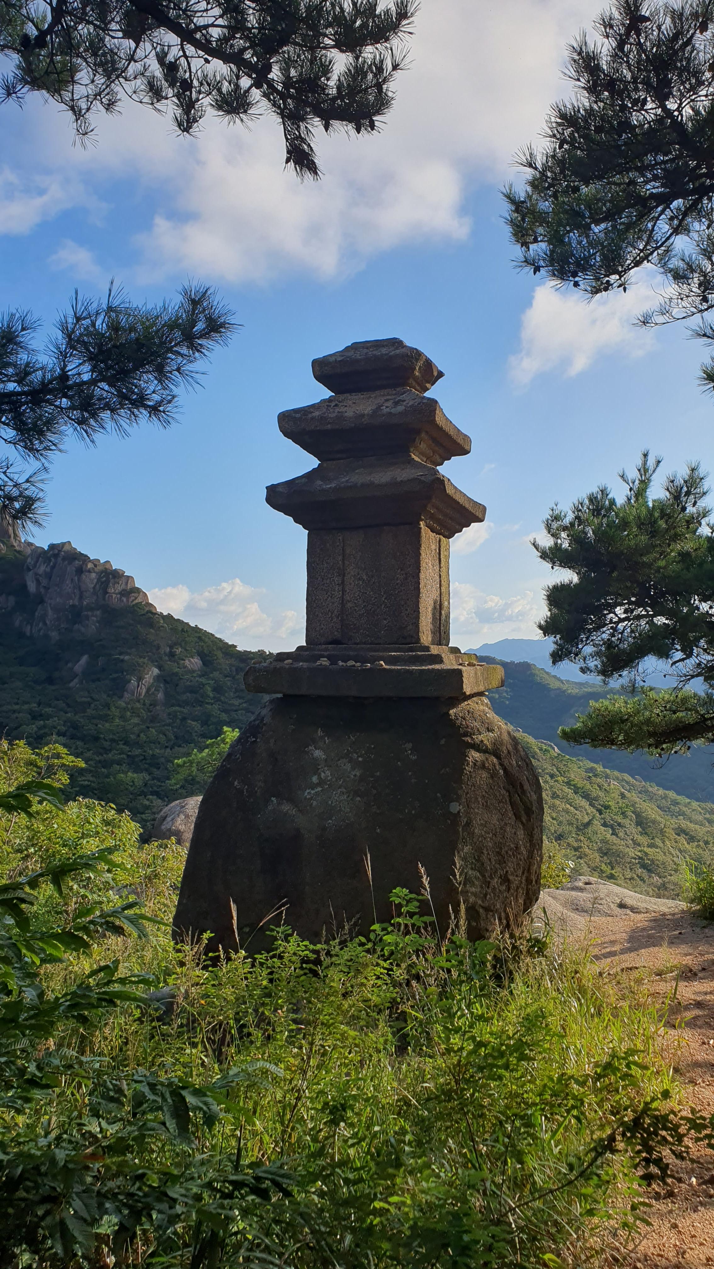 산꼭대기 탑, 자연암반을 기단으로 조성한 탑.