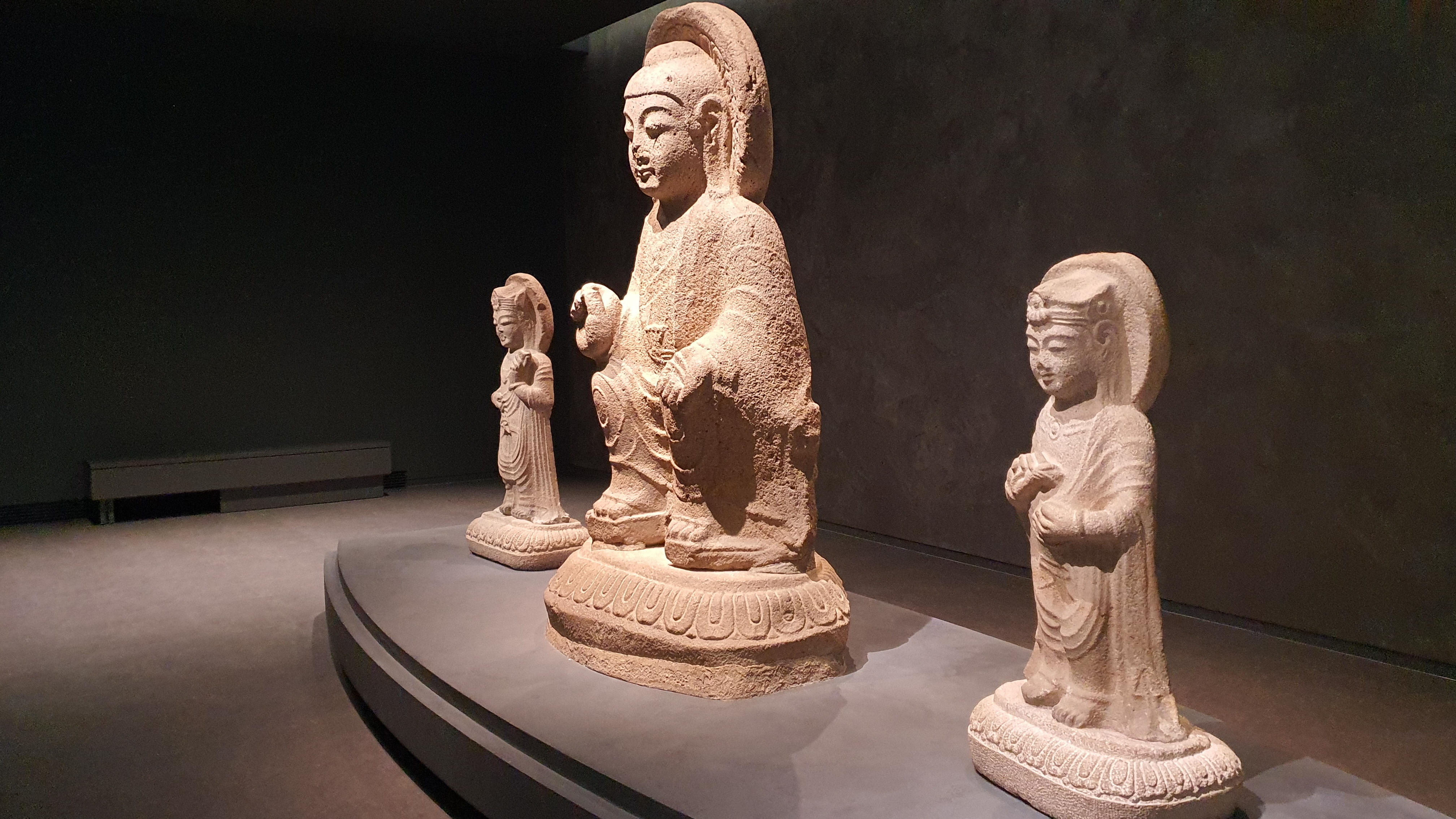 박물관 복도에 전시된 용장계 석조여래좌상입니다. 불두를 찾은것인지...잘 복원되어 모셔져있습니다.