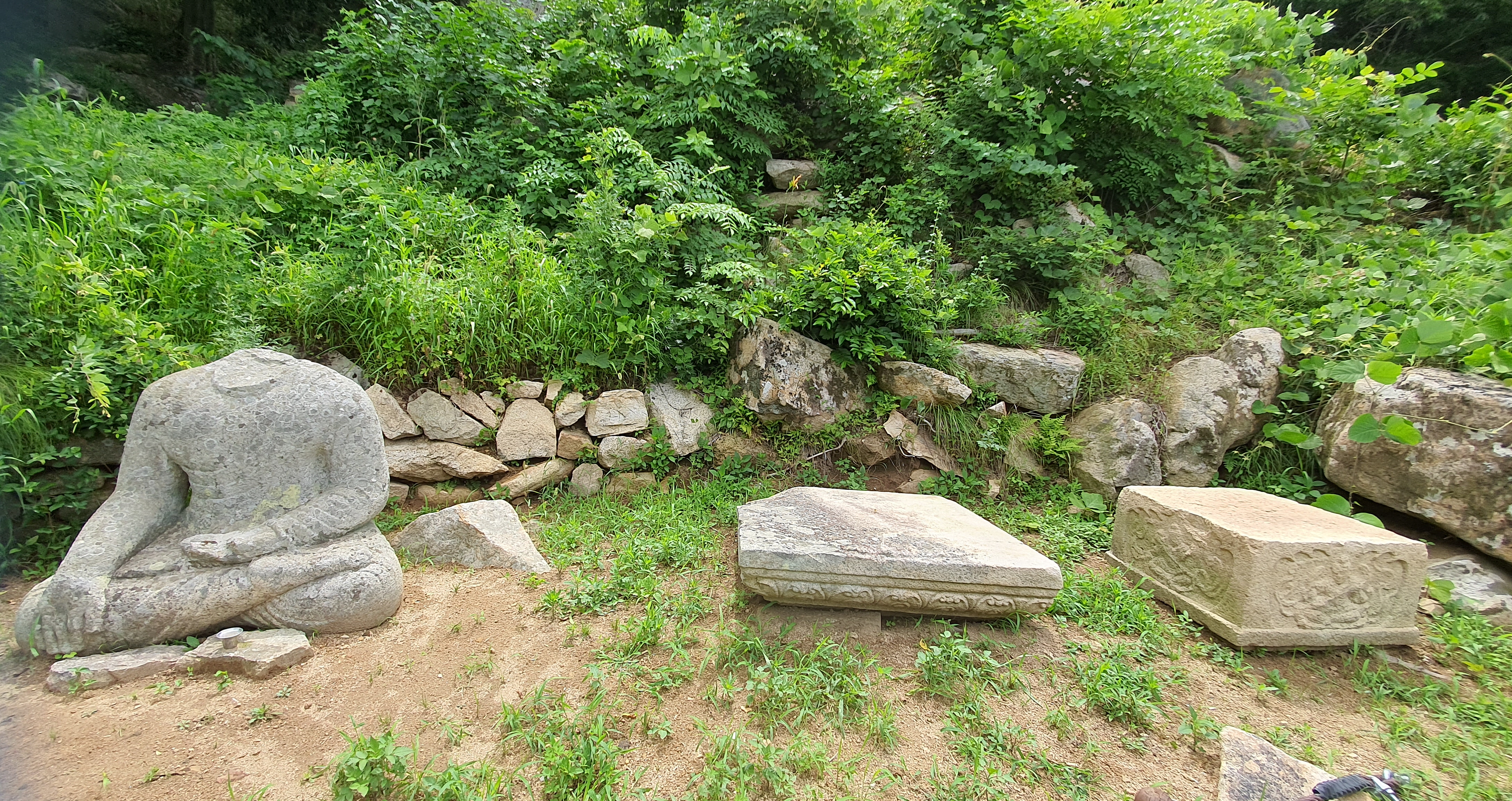 왜 부처님 발을 세워놨을까요. 발가락과 발톱이 선명합니다. 눞혀놔야 정상일 텐데...한쪽발은 사리지고 없는 것 갔습니다.