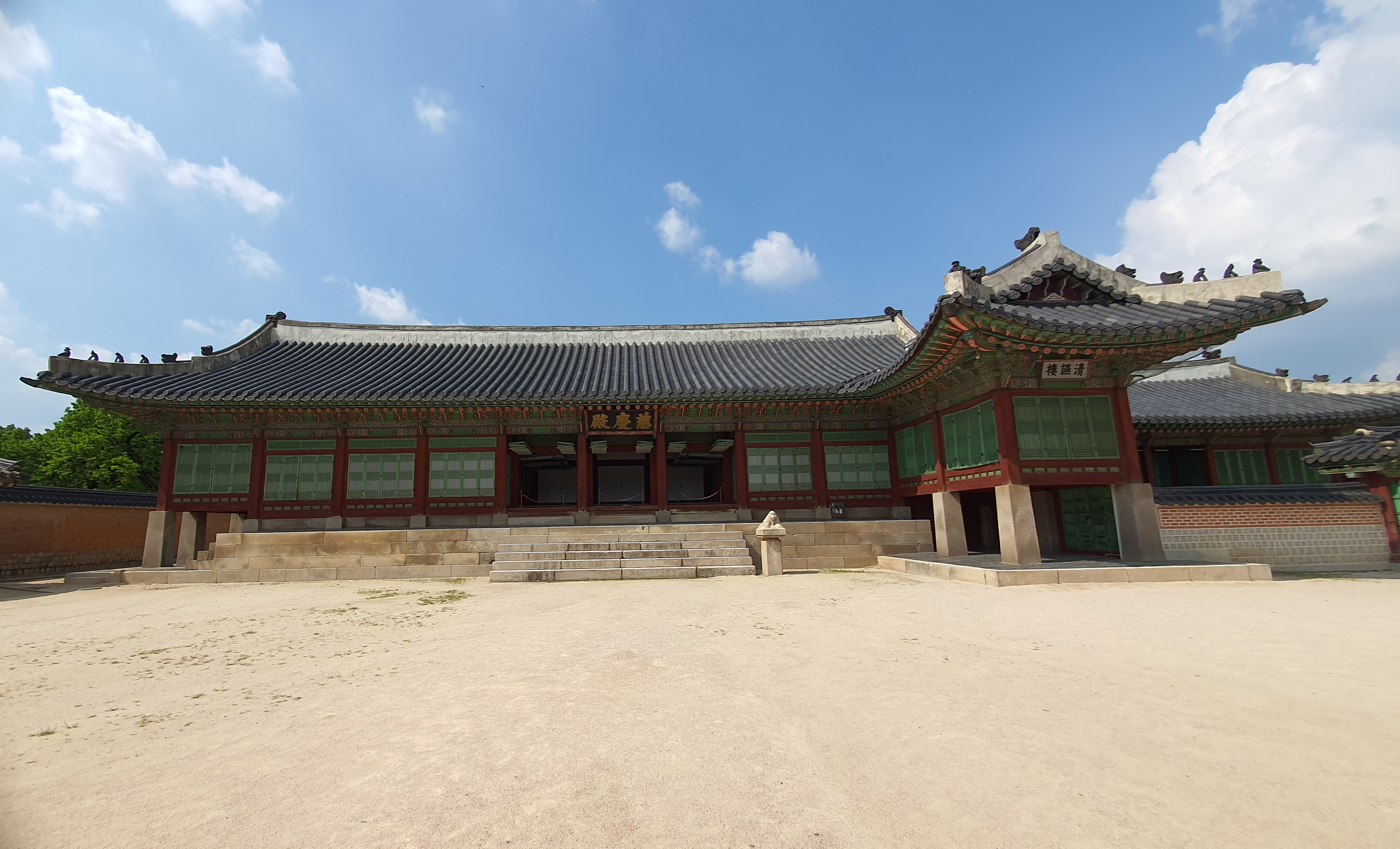 광화문 - 근정문 - 근정전 - 강녕전 - 교태전(후원 아미산) - 자경전 - 향원정 - 건청궁 - 집옥재 - 경회루