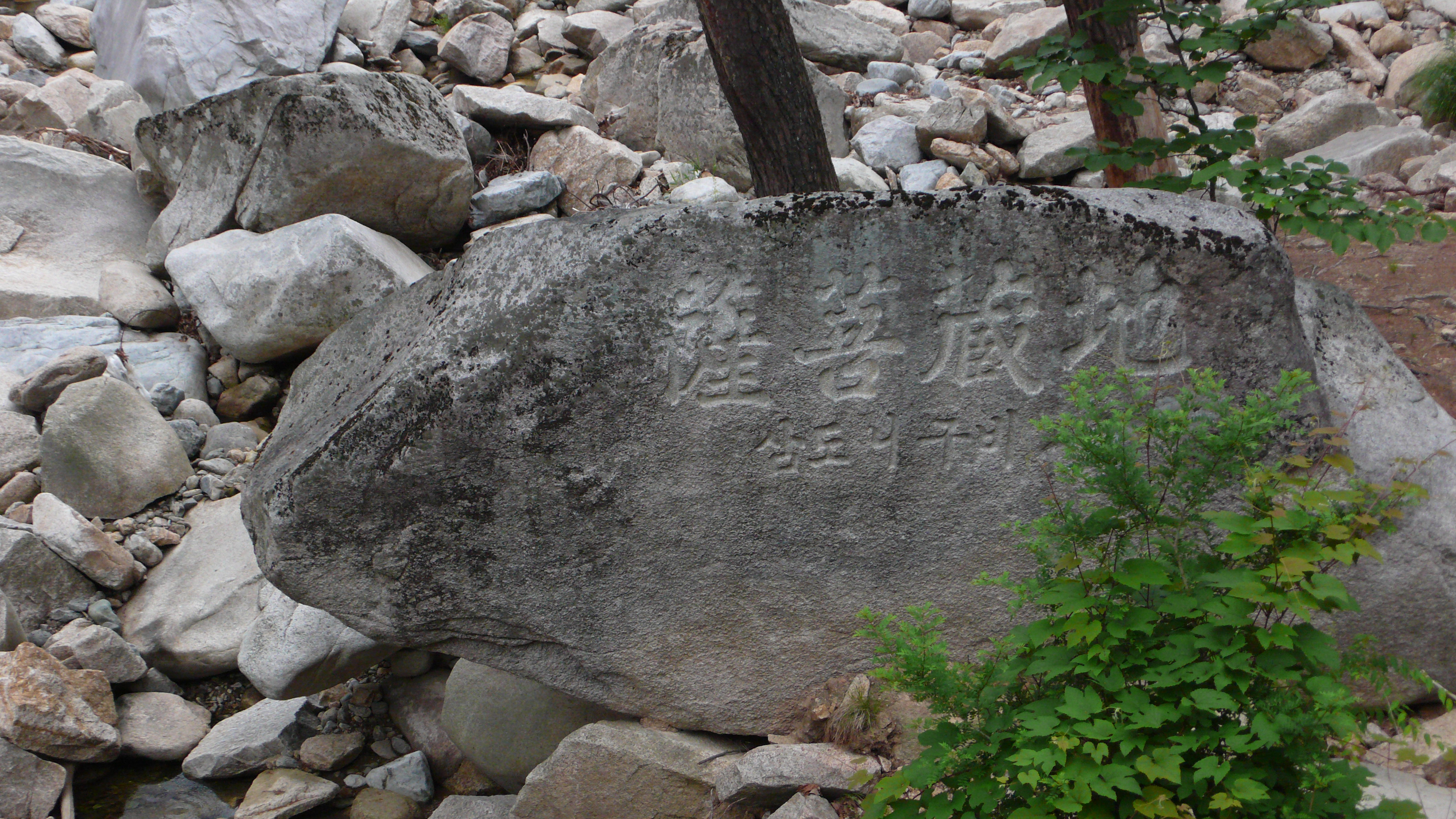 첩석대가 있는 계곡의 화강암 암반에 새겨 있으며 해서체의 곧고 웅대한 글씨로 새겨져 있는 지장보살. 해인사로 들어오는 길목에서 지옥중생을 구제하시는 지장보살이 중생들을 맞이하며 이곳이 부처님이 상주하시는 연화장 세계임을 말해주고 있다. 아래에는 ‘비구니도삼’이라는 글씨가 새겨져 있는데 1928년 약수암 주지를 지냈던 비구니스님으로 글을 쓴 환경 스님께 화주공덕을 지은 것이 아닌가 추정해본다.