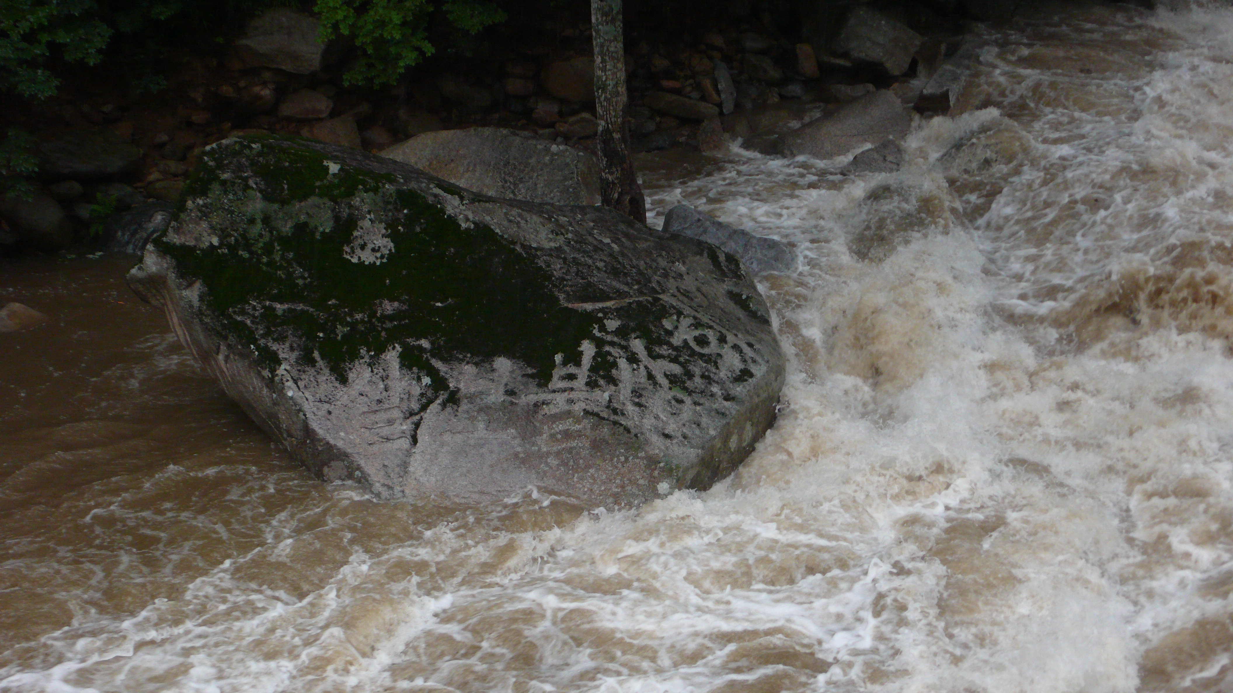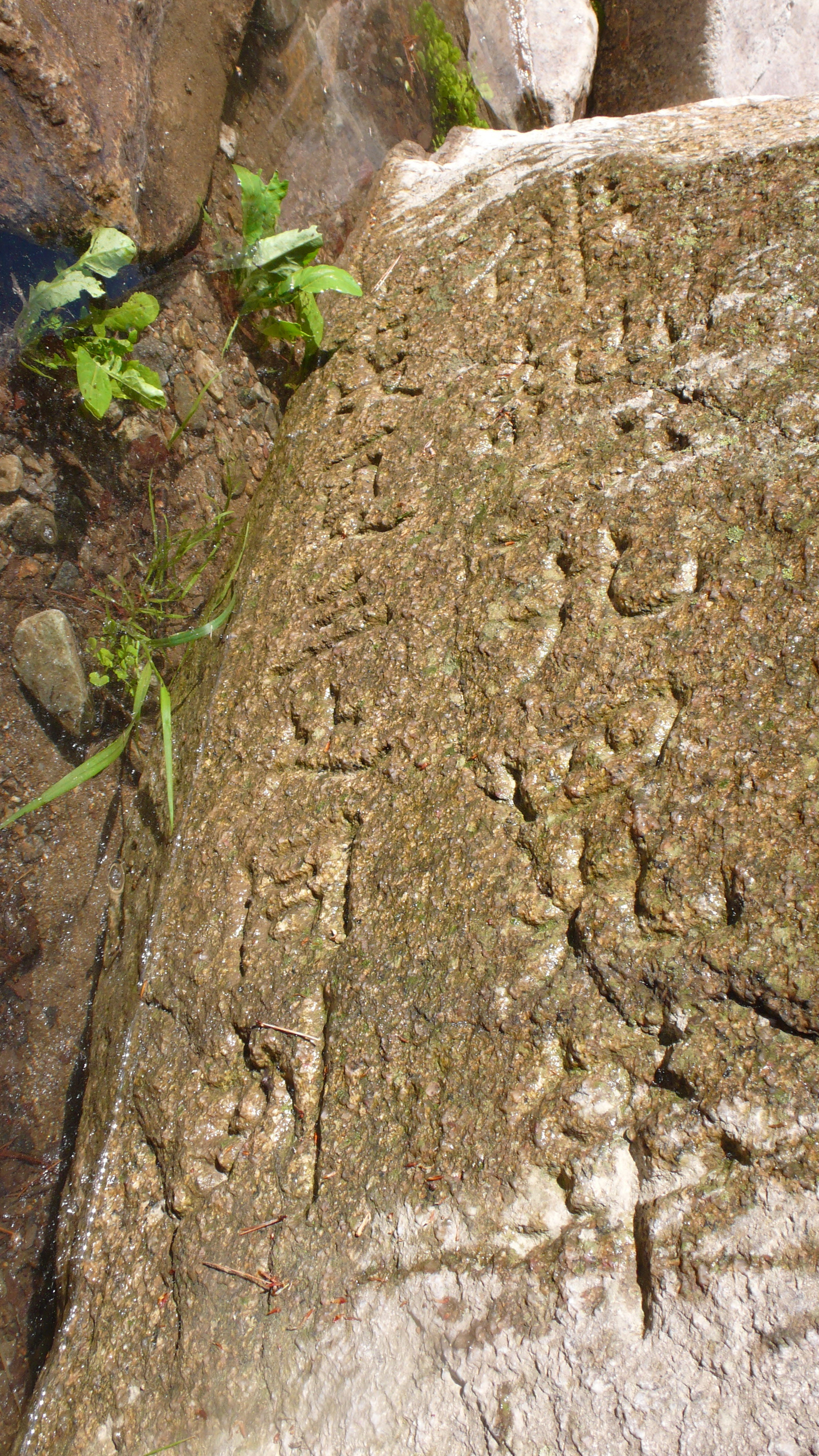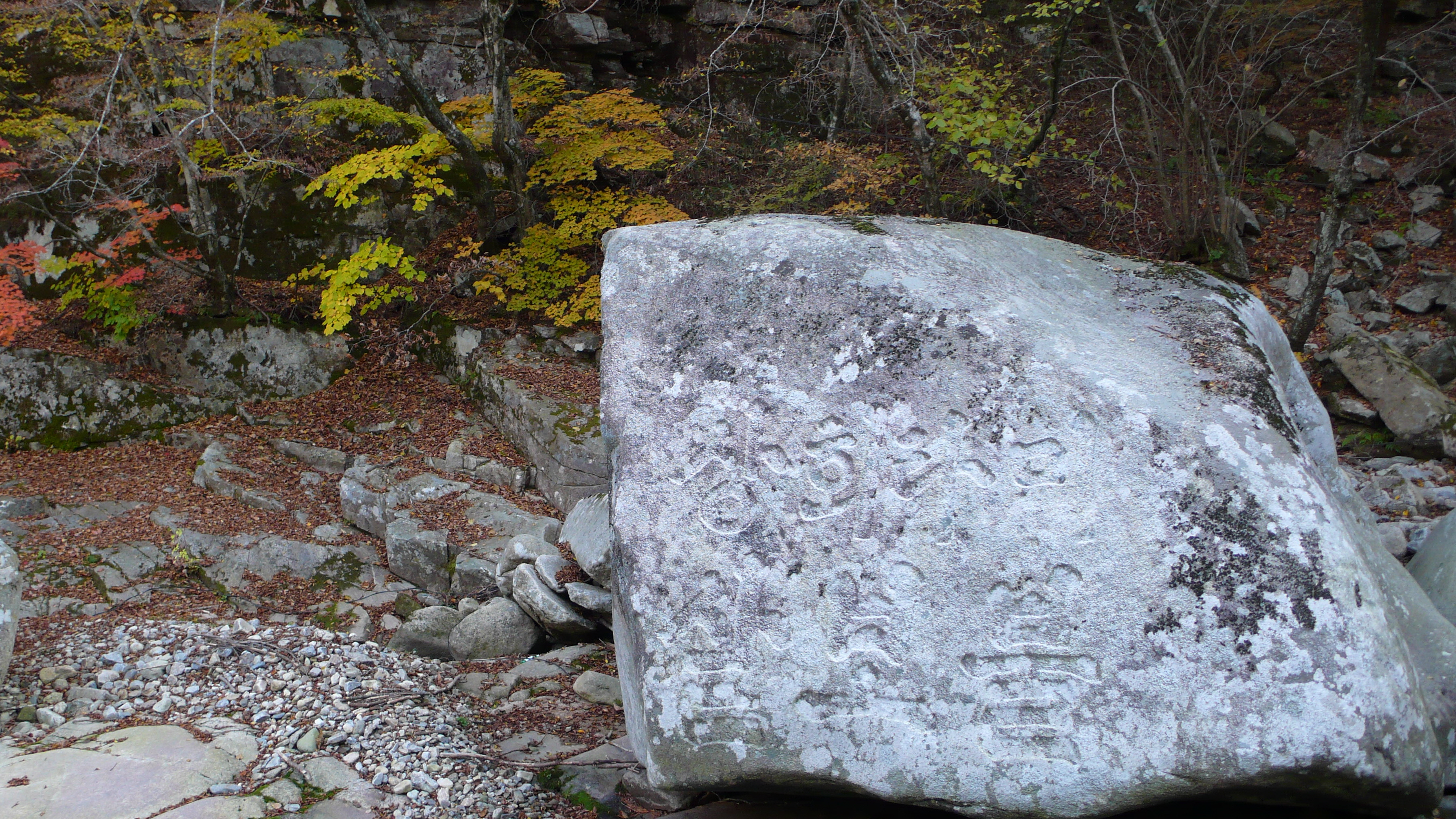 나무아미타불을 새긴 구선암 옆에서 삼신불 명호를 동시에 새겼다는 바위기록이 발견되었다. 넘어진 바위에 반쯤 물에 잠긴체 석문이 새겨져 있다.
