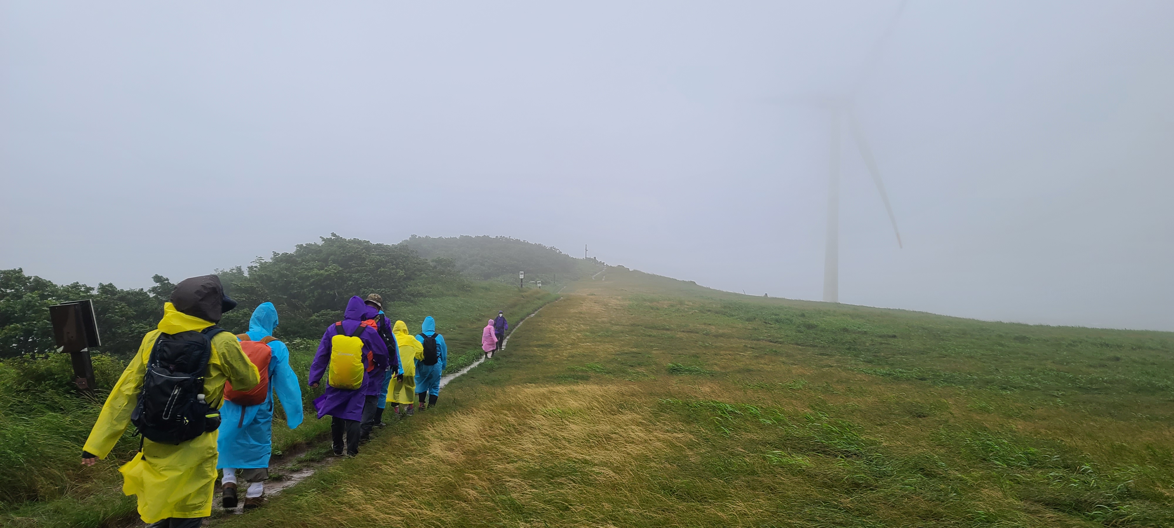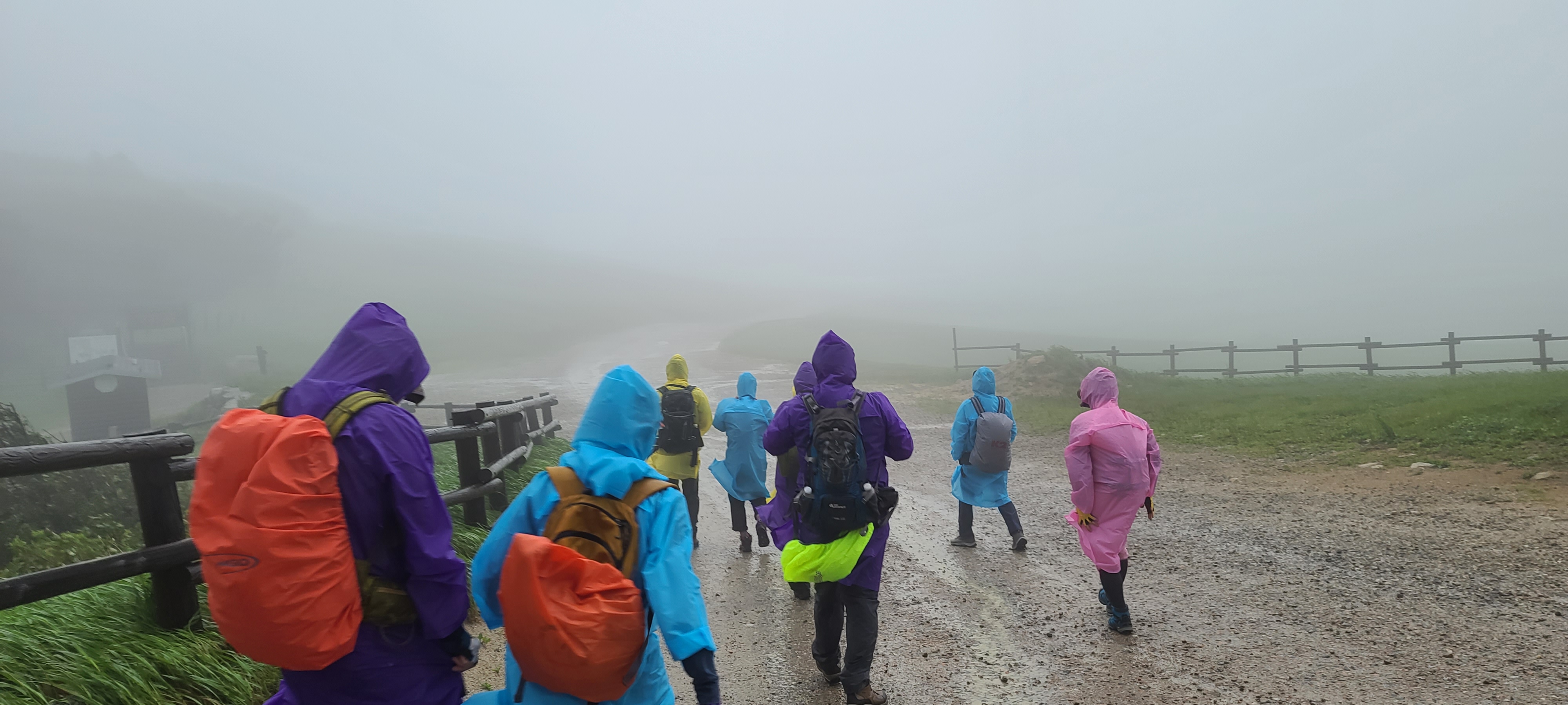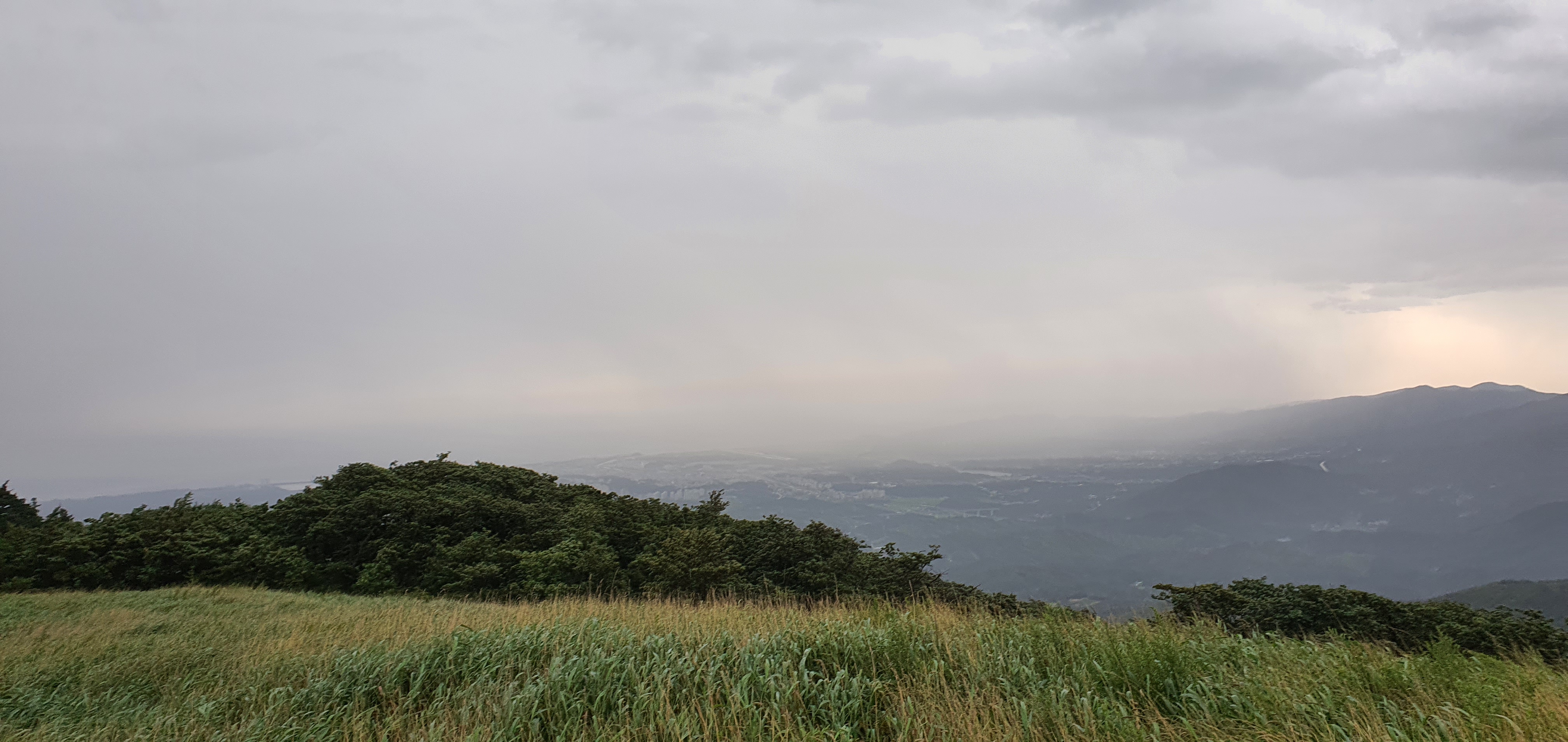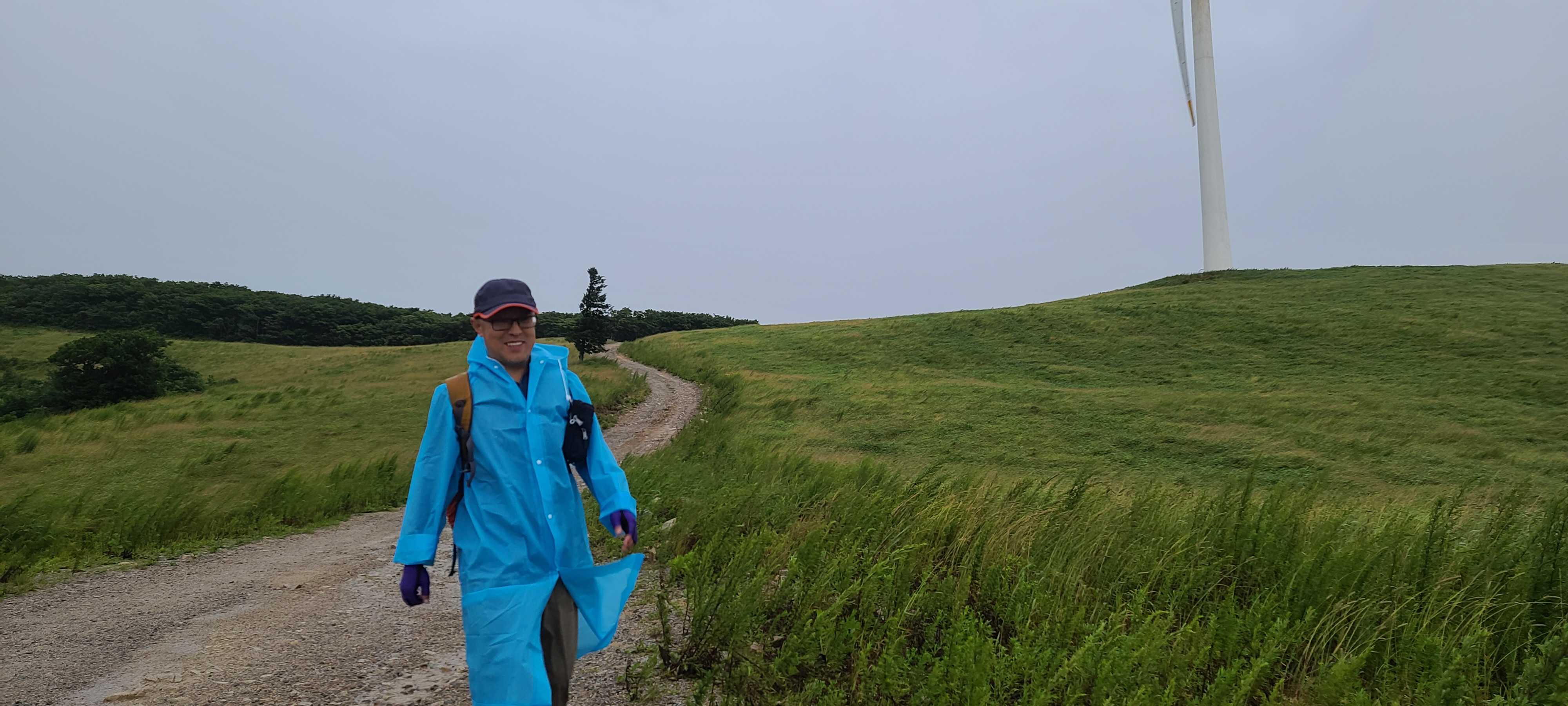 전망대에 하차하려하니 버스 기사님이 번개와 폭우때문에 하차가 않된다고 한다. 산행은 안하고 내려서 전망만 보다가 다음버스타고 하산하겠다고 하니 기사님이 모른 척 하고 내려주신다. 나이들면서 거짓말만 늘었다. 번개와 바람. 비를 맞으며 선자령으로 향한다.