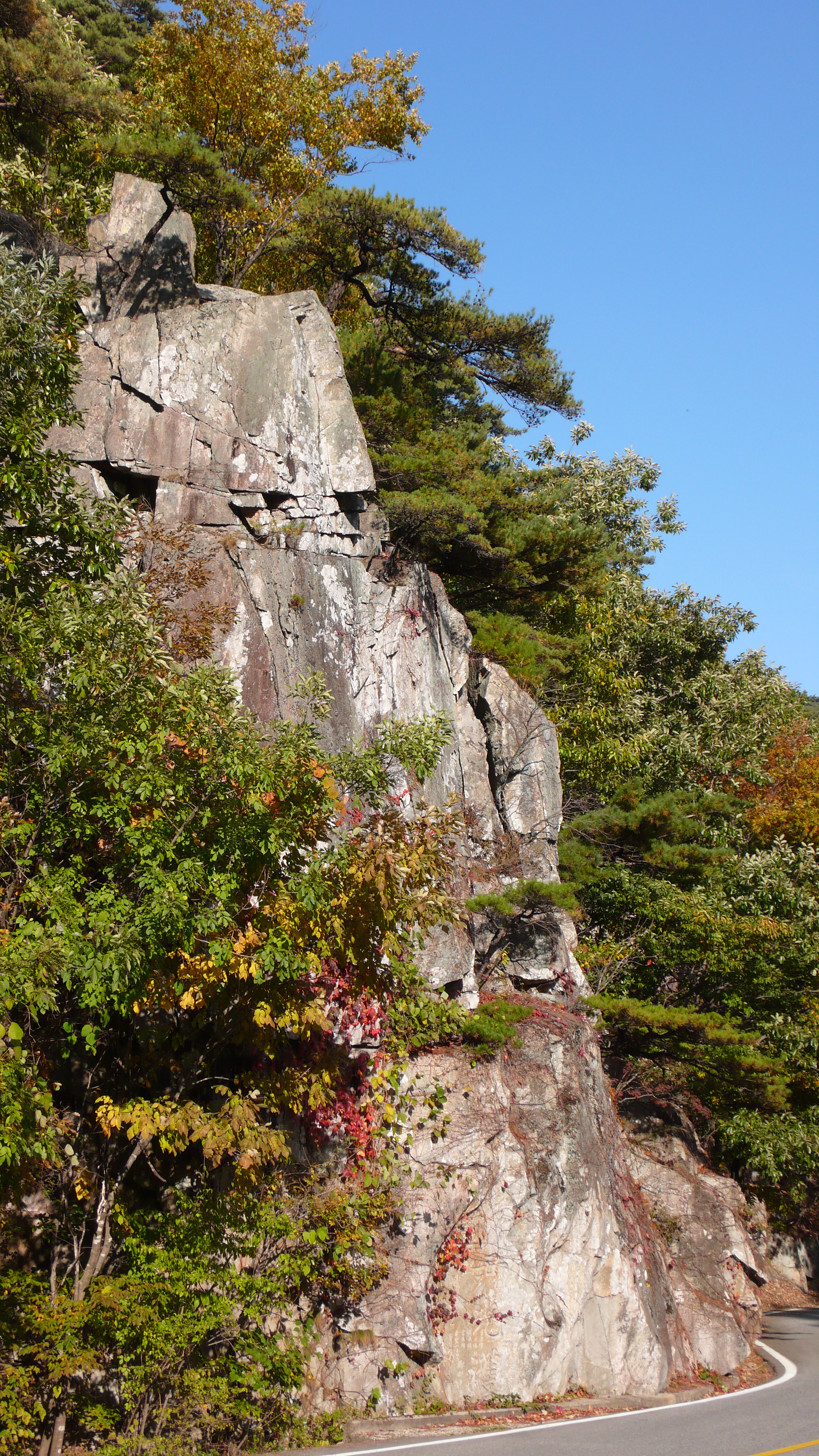홍류동을 따라 차를 타고 들어오다 보면 도로 안쪽으로 튀어나온 바위가 있다. 취적봉이다. 그 모습이 선바위 모양을 하고 있고 바위 상부에는 피리 입대 모양의 바위가 서있어 취적봉이라 한다.