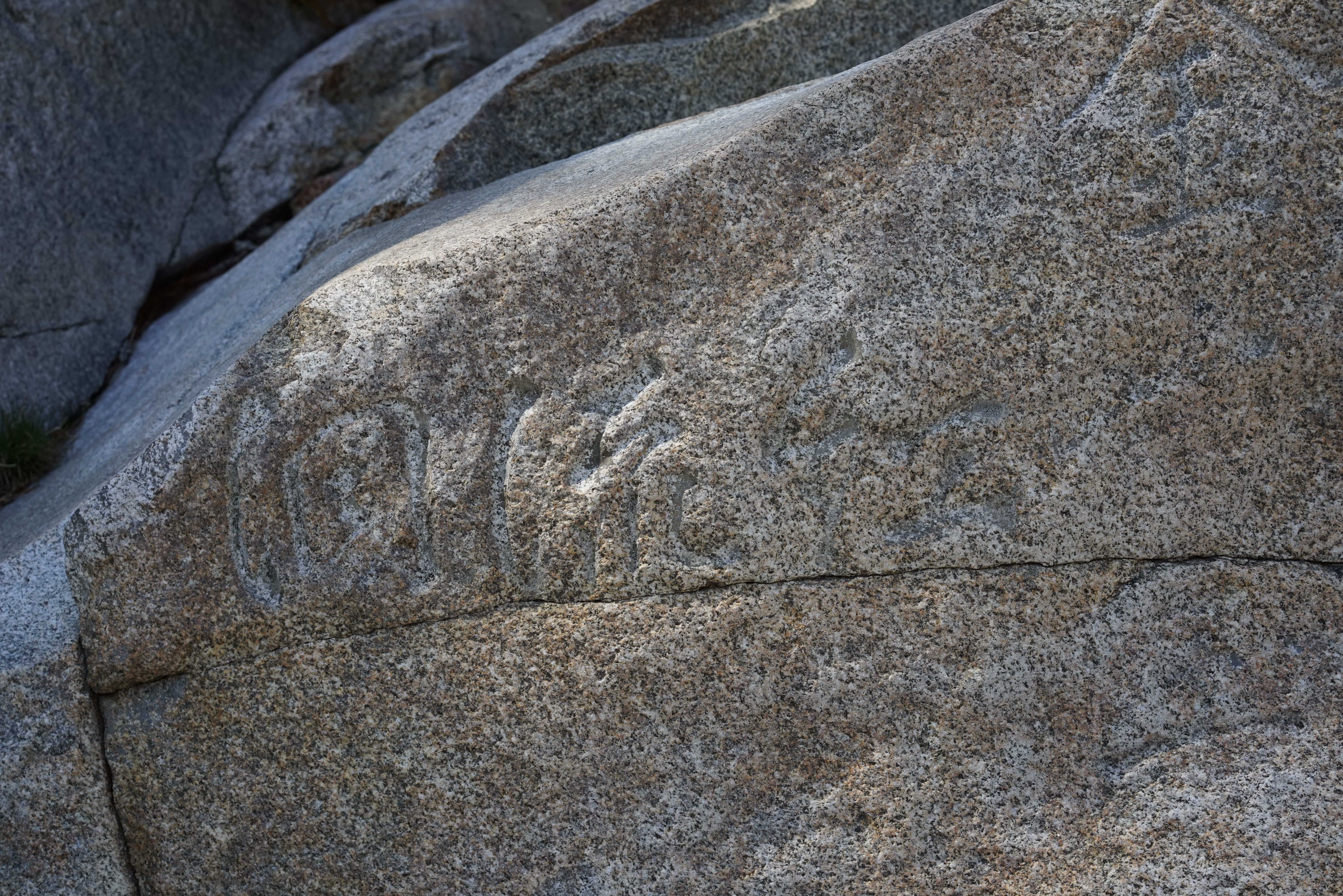 최치원의 둔세시가 음각되어 있는 바위 치원대에는 고교와 농산 네글자만을 눈으로 확인할수 있다.