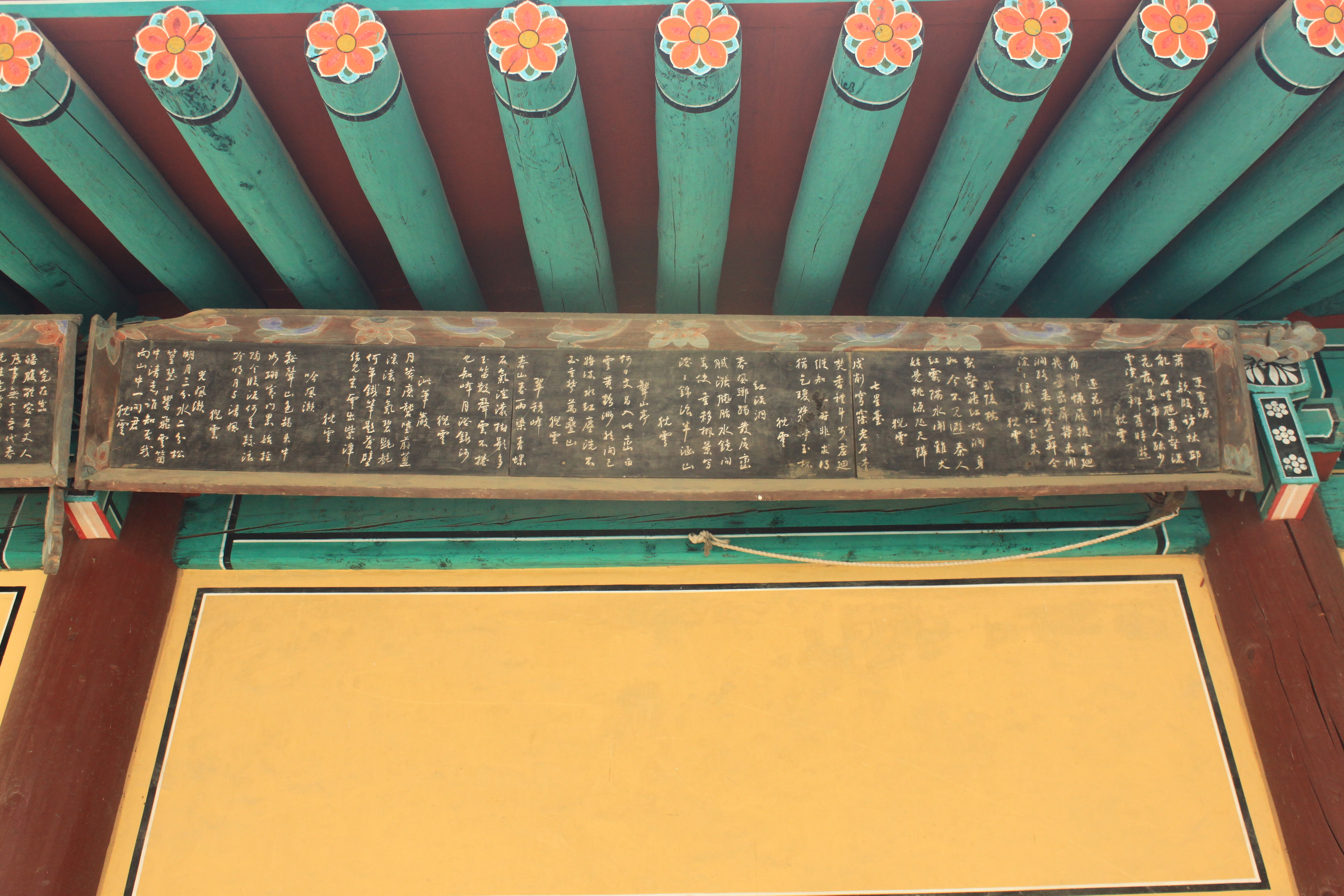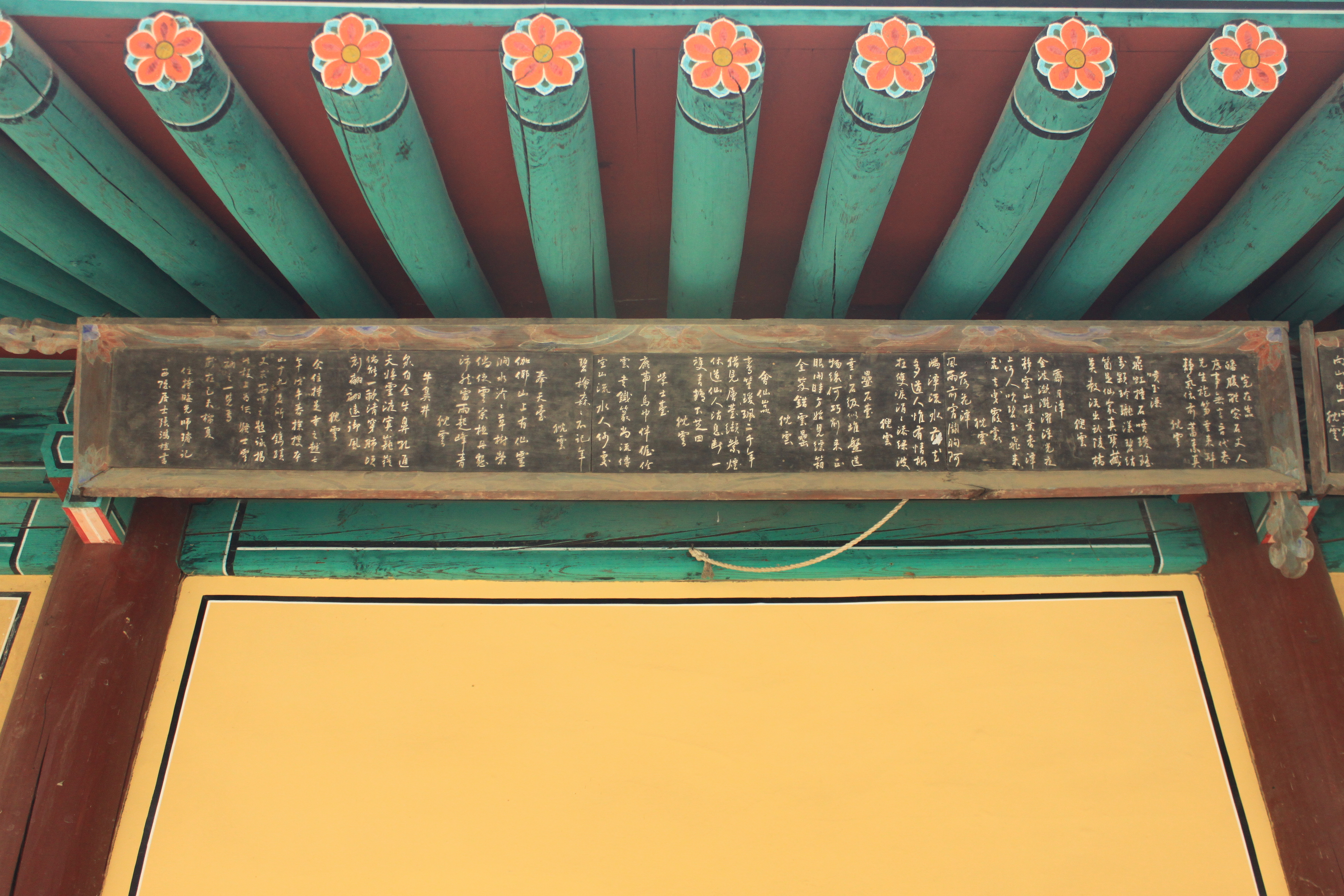 해인사 종무소 사운당 건물 외벽에 가야19명소에 대한 시가 각 되있는 현판이 걸려있다.