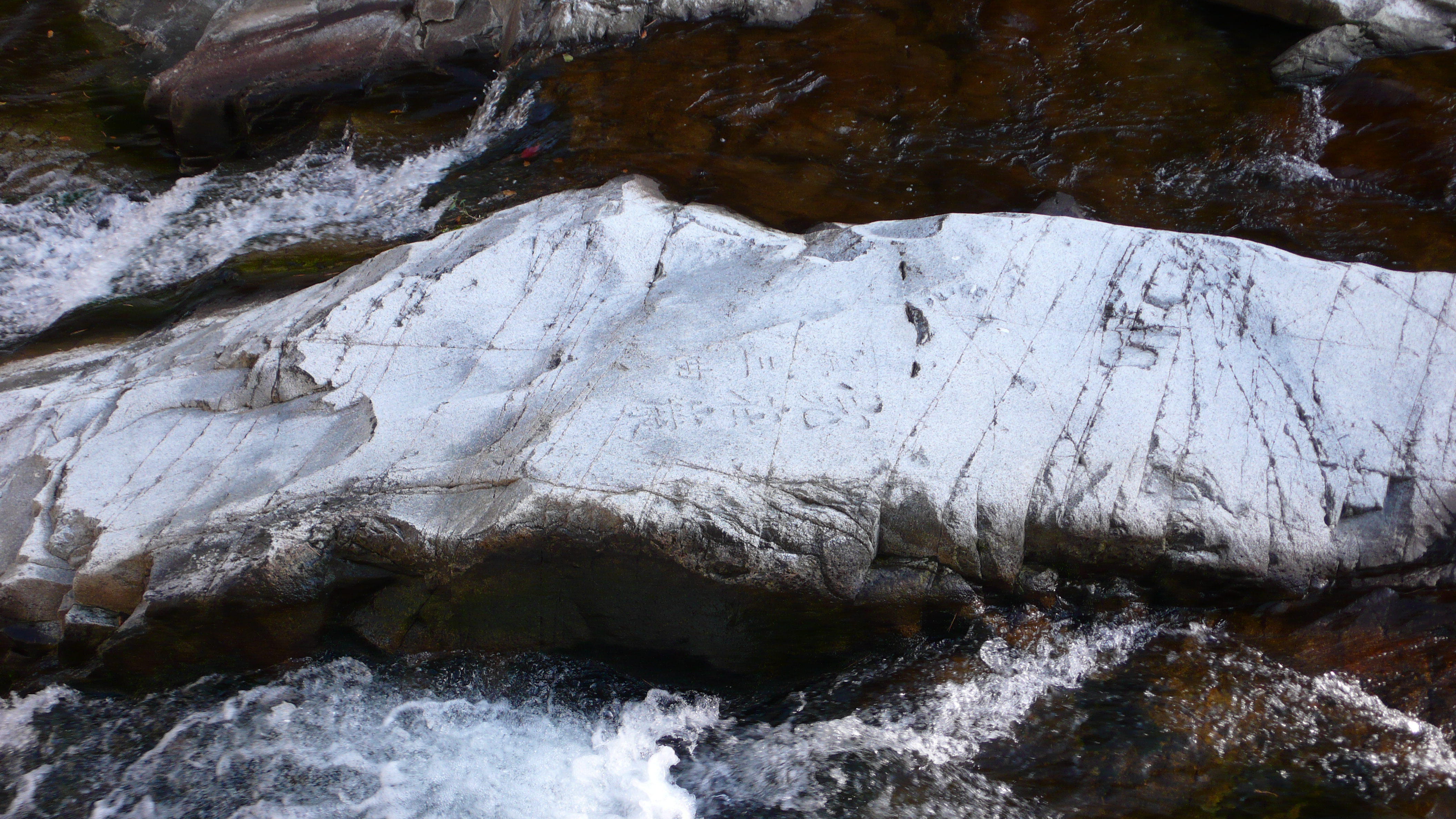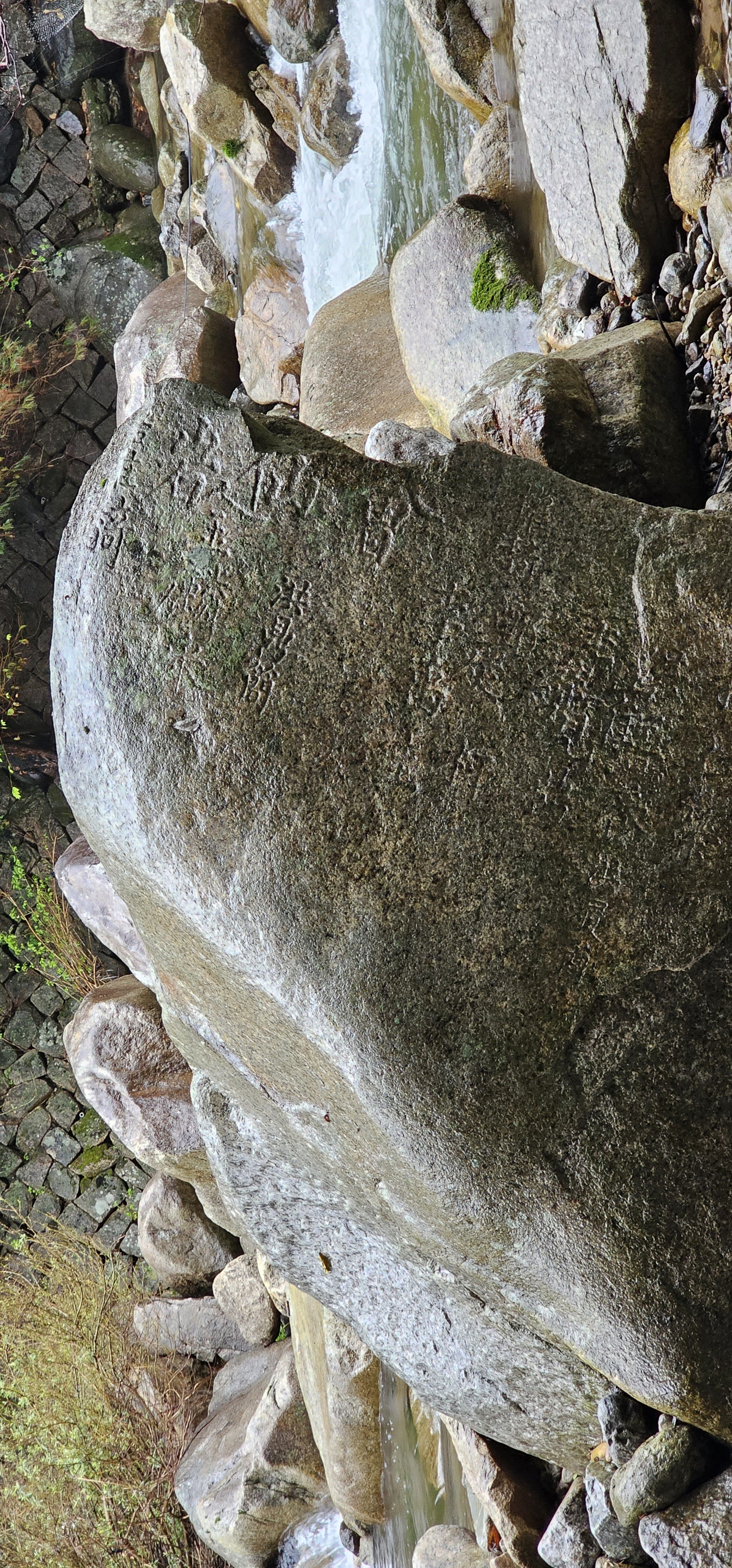 국립공원 사무소에 문의 하여 석각장소를 찾아가니 분명 몇 번이고 지나갔던 자리에 회선암 석각이 환하게 웃고 있다. 아마 회선암에서 어떤 충격으로 떨어져 계곡 한 복판에 자리잡고 있는 것 같다.