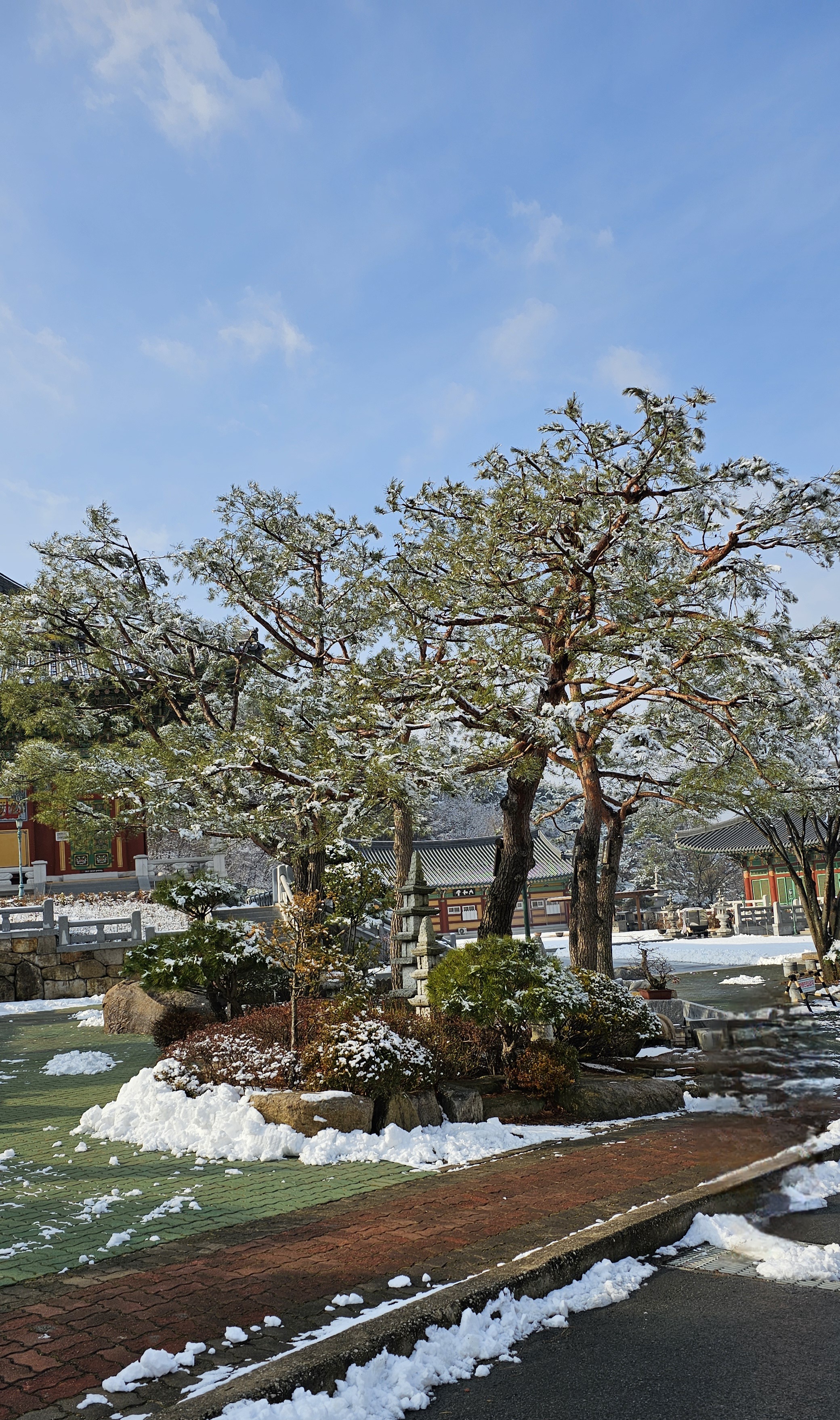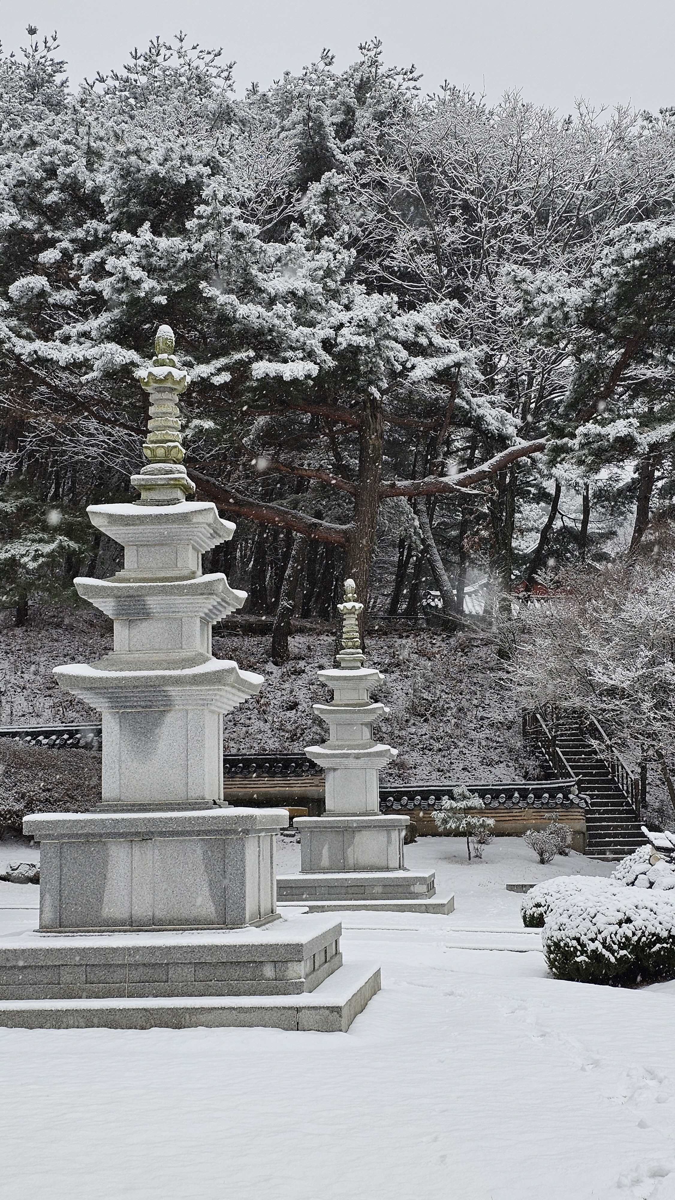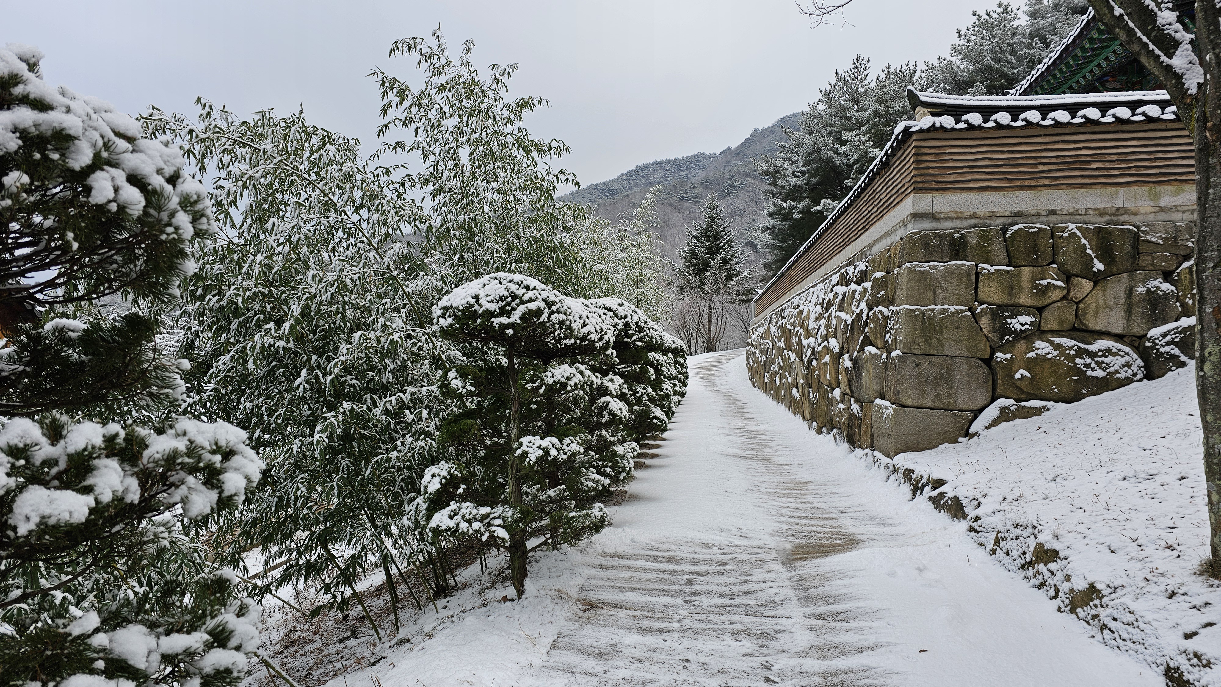 눈 보기 힘든 대구에 새벽부터 함박눈이 내렸다. 시내에는 비와 섞여내려 다 녹았는데 산속에 위치한 도림사에는 오후까지 눈구경을 할수 있었습니다.