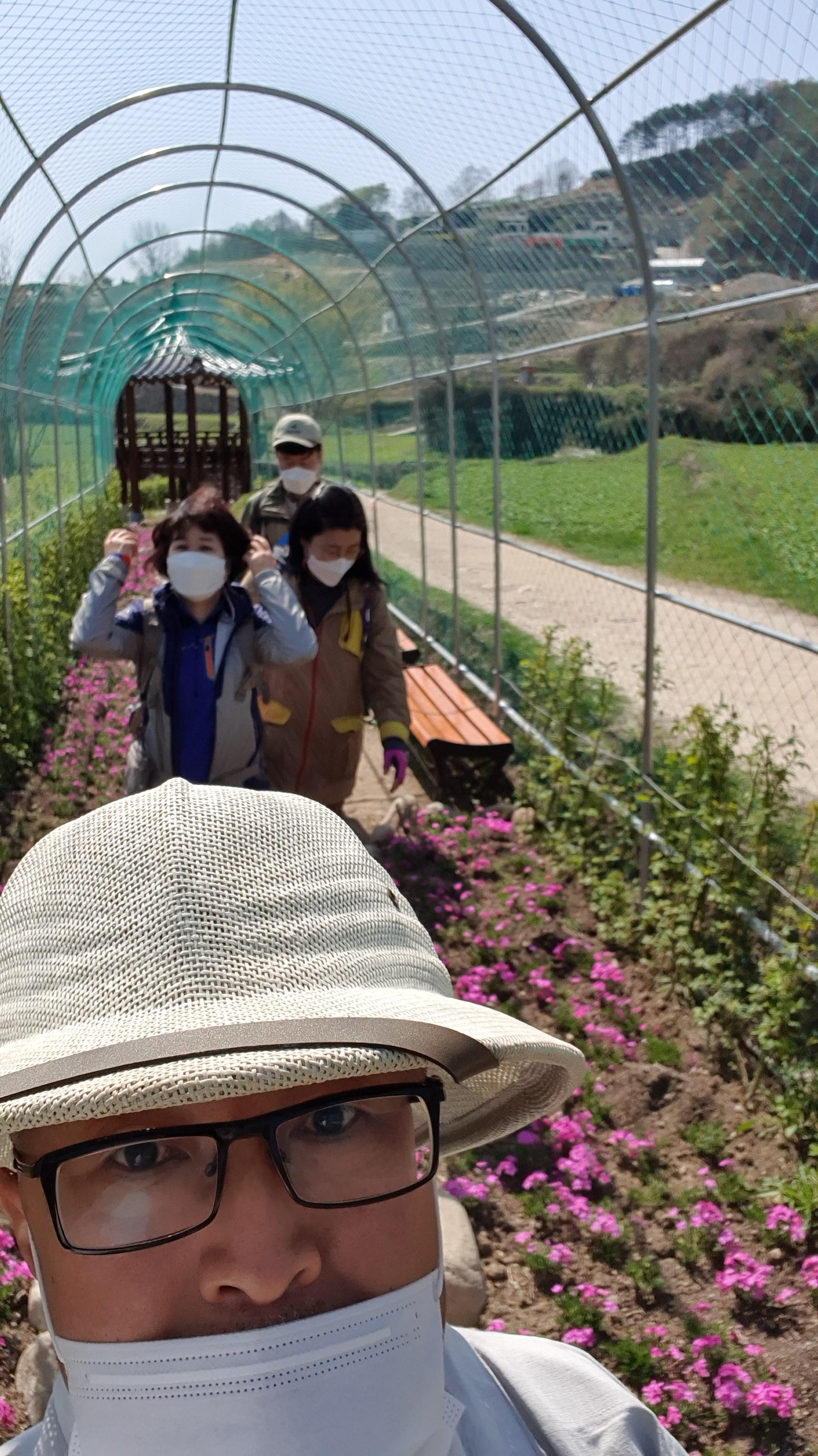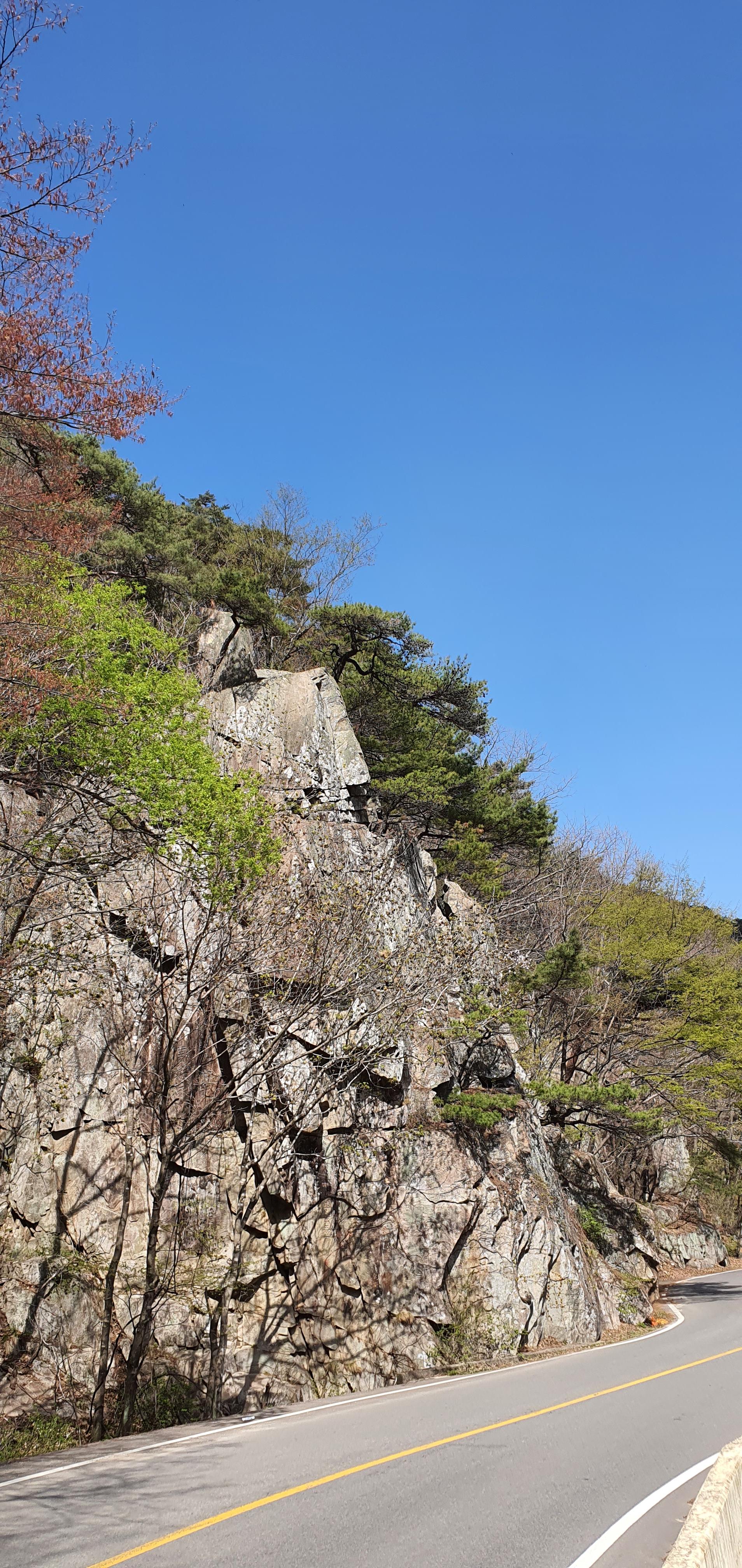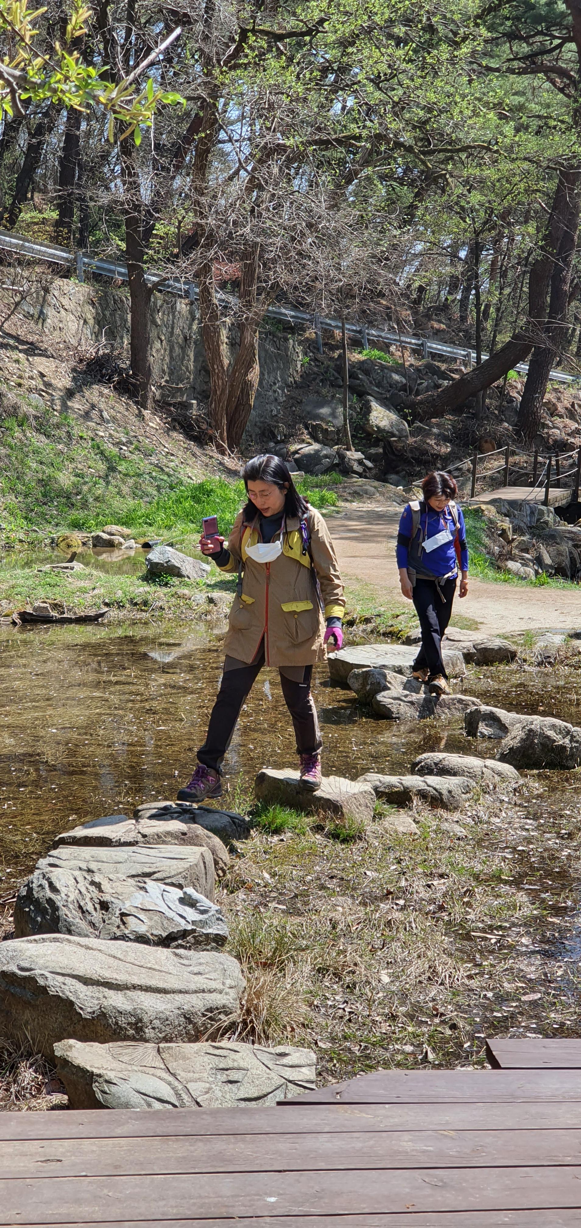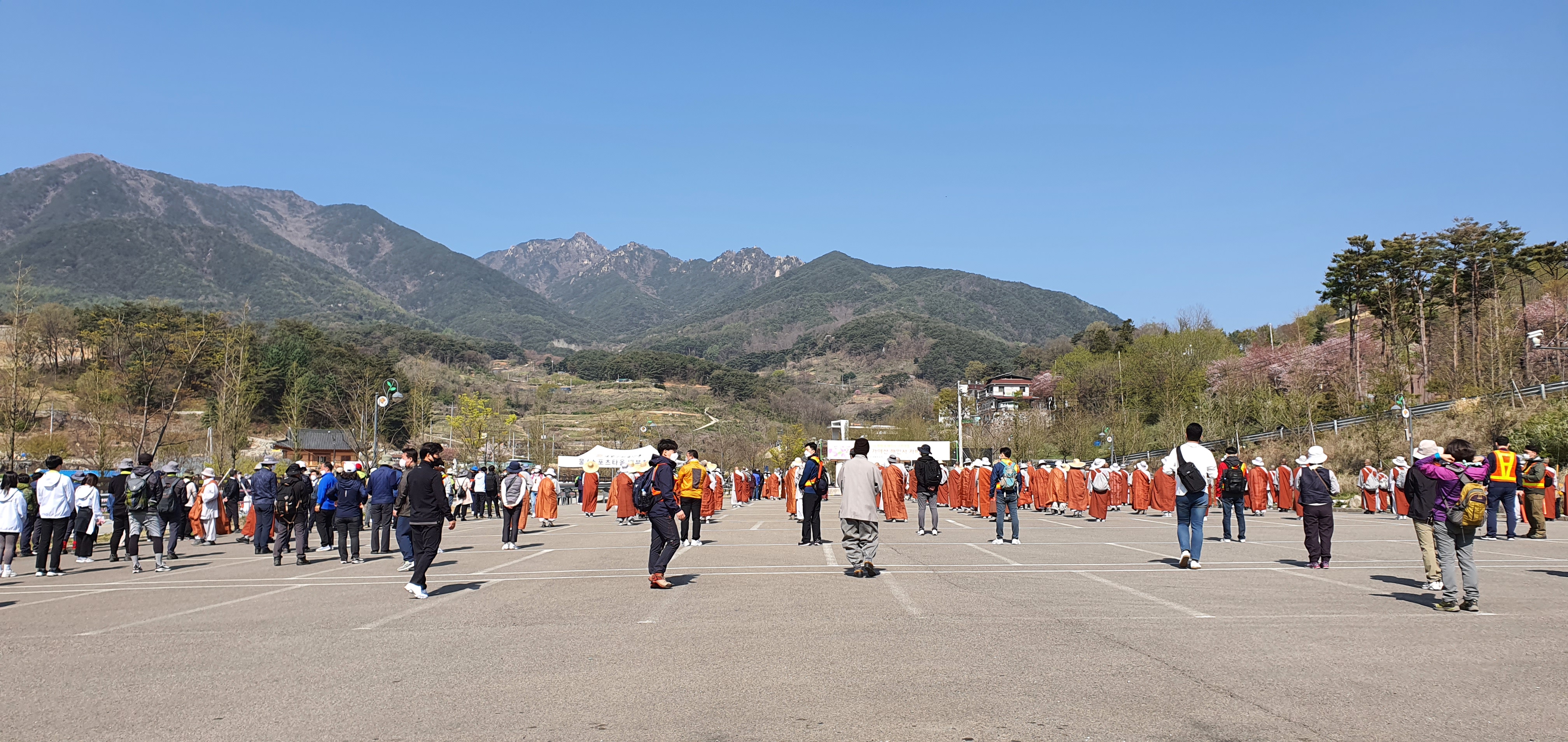 2021 4 7 스님들과 불자들 해인사 소리길 7키로...순례하는날... 묵언과 행진간격 1.5미터 유지...코로나시대에 즈음한 순례 지침. 500여명동참해서 서로가 조심해야될 상황입니다. 일행이있어 중간에 끼진 못하고 순례행열 맨 뒤에 따라가며 살랑살랑 이야기하며 거리를 두고 간다.