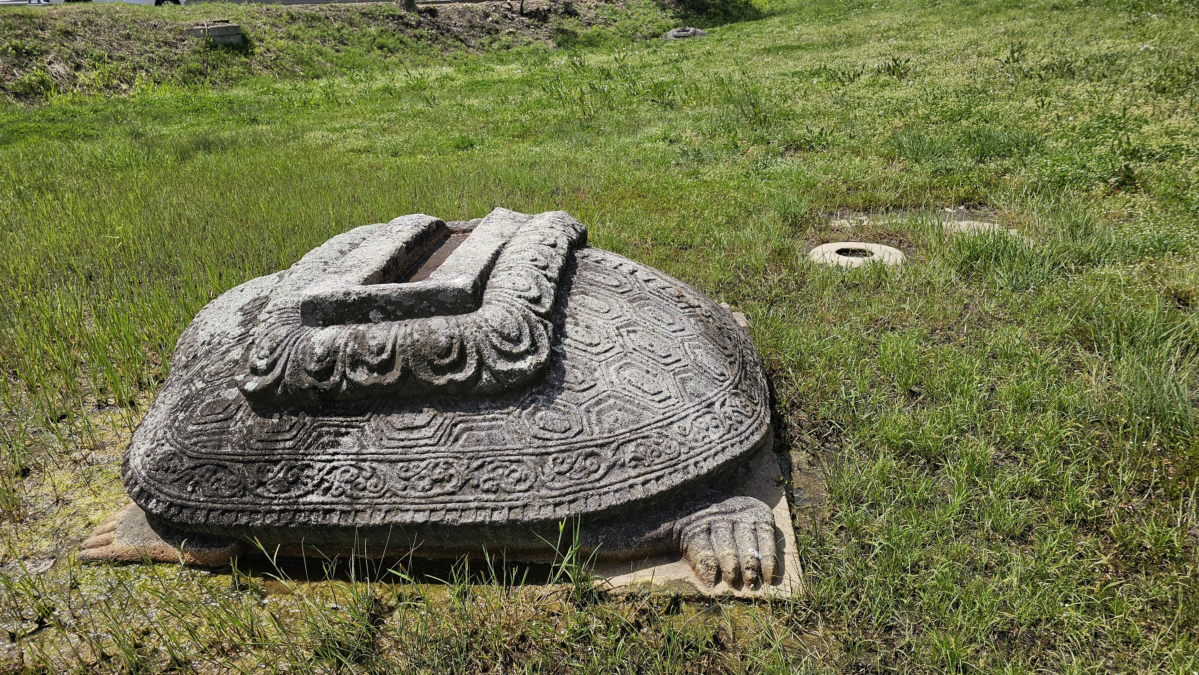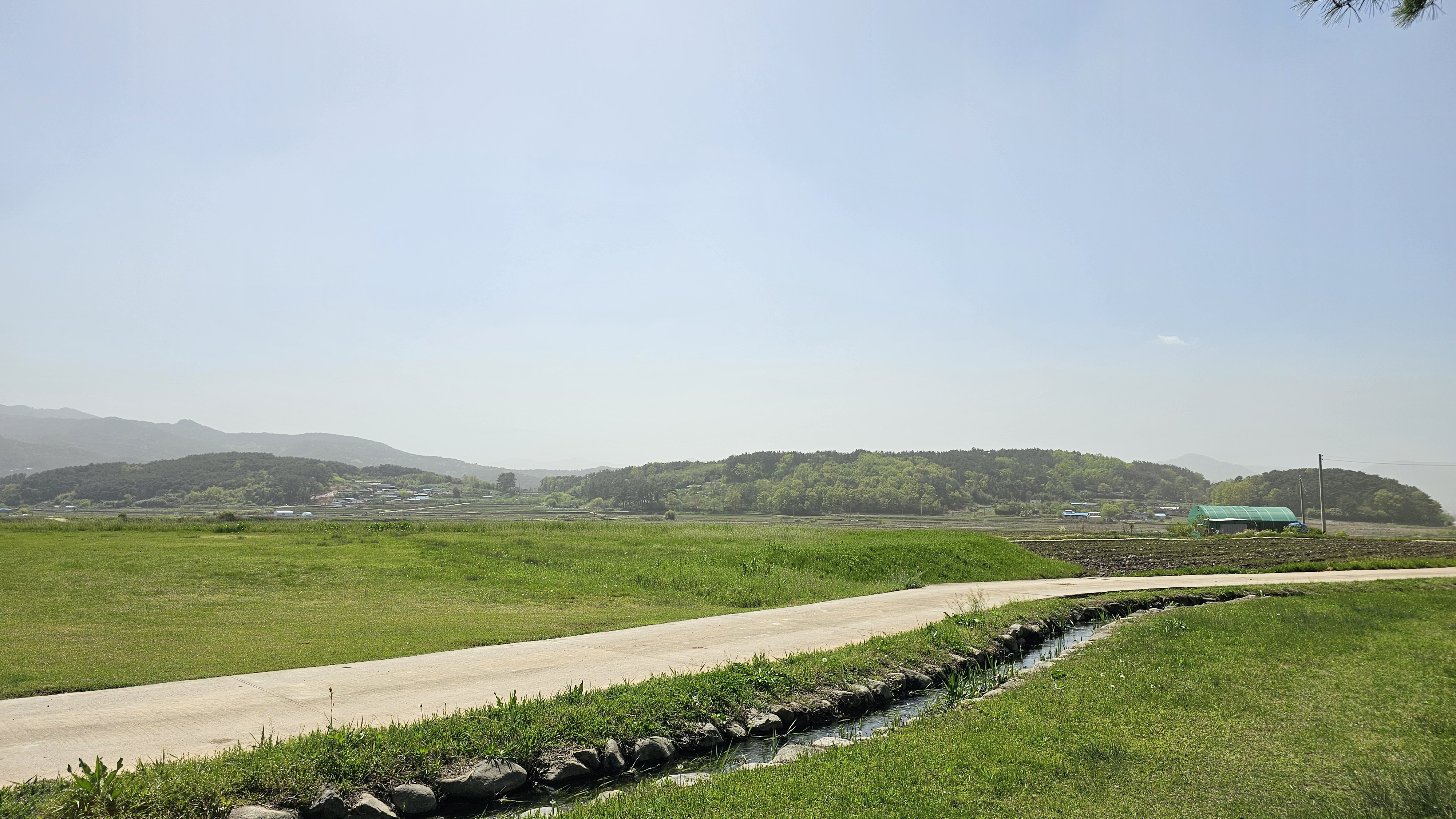 선덕여왕의 아버지 진평왕릉으로...차량으로 사천왕사지 뒤 철로다리 해체한곳으로 쭉 이동...논길사이를 달려 진평왕릉으로 갑니다.