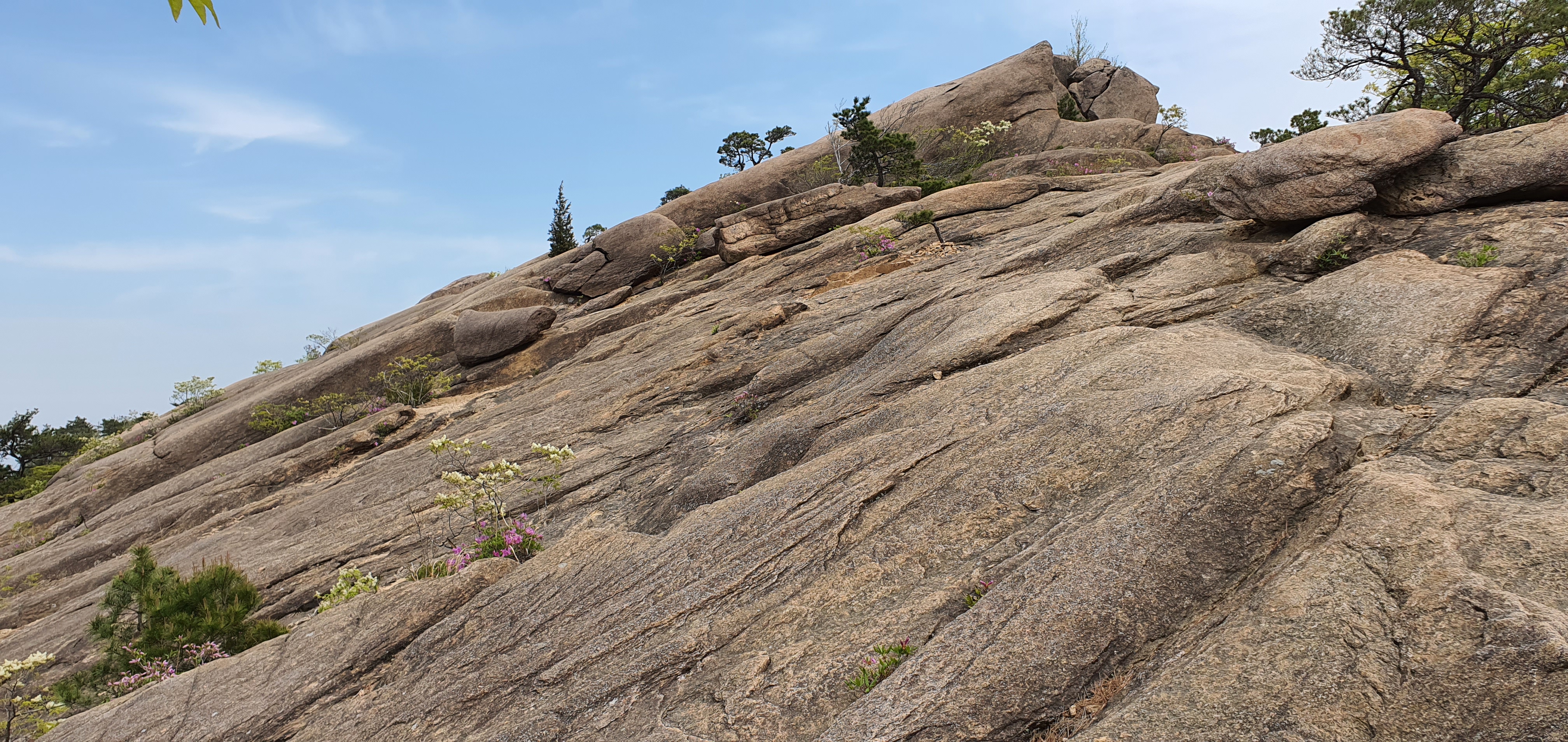 황매산을 오르는길에 영암사 본당의 무지개다리를 연상케하는 자연바위계단이 있다. 예나지금이나 바위 다스리는 기술은...