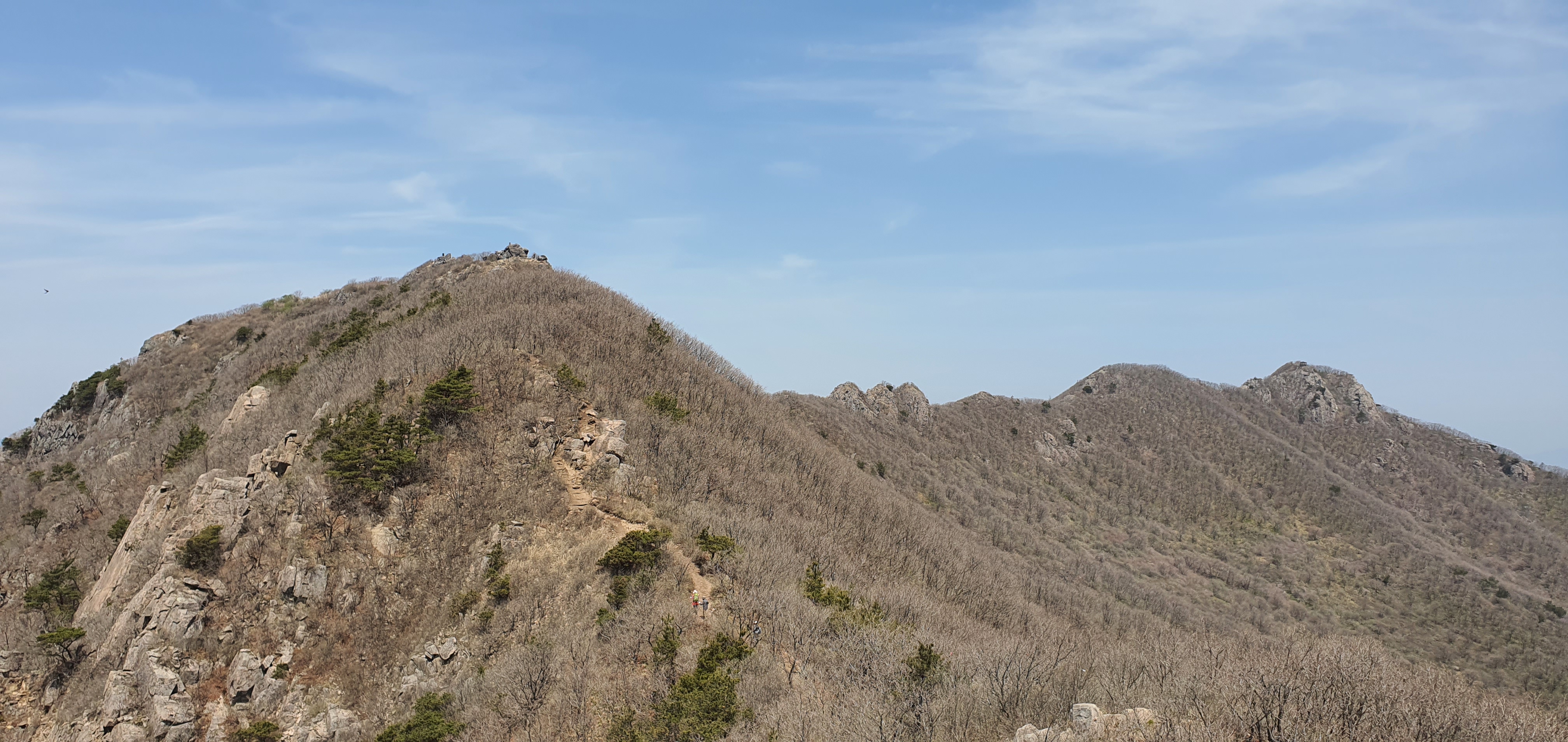 황매산정상과 황매삼봉, 중봉, 상봉이 나란히 도열해있다. 힘이 남아있으면 어서 와보라고...