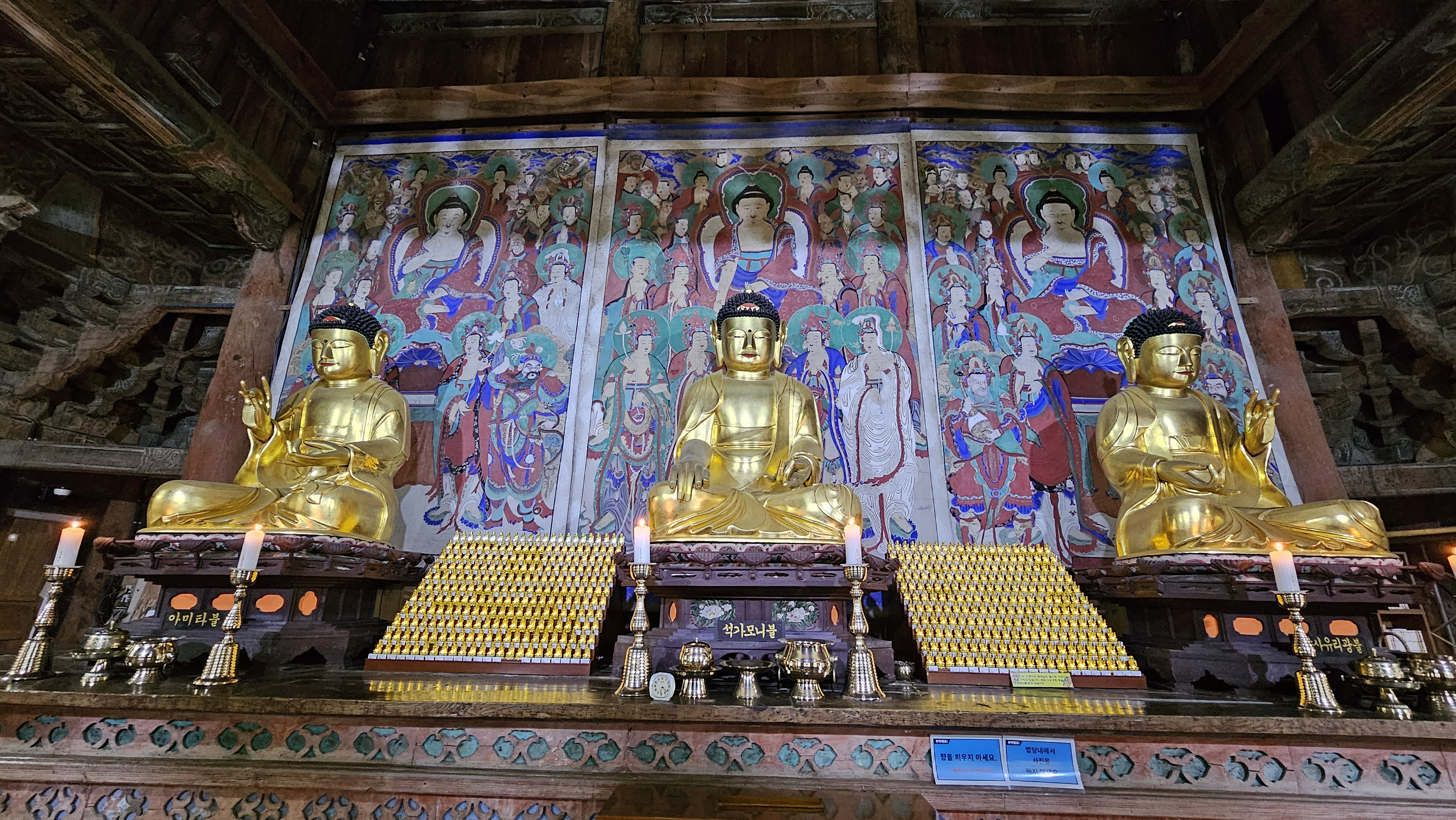 2층으로 된 큰 전각인 대웅보전을 지탱하고 있는 기둥은 싸리나무 기둥이라고 합니다.
