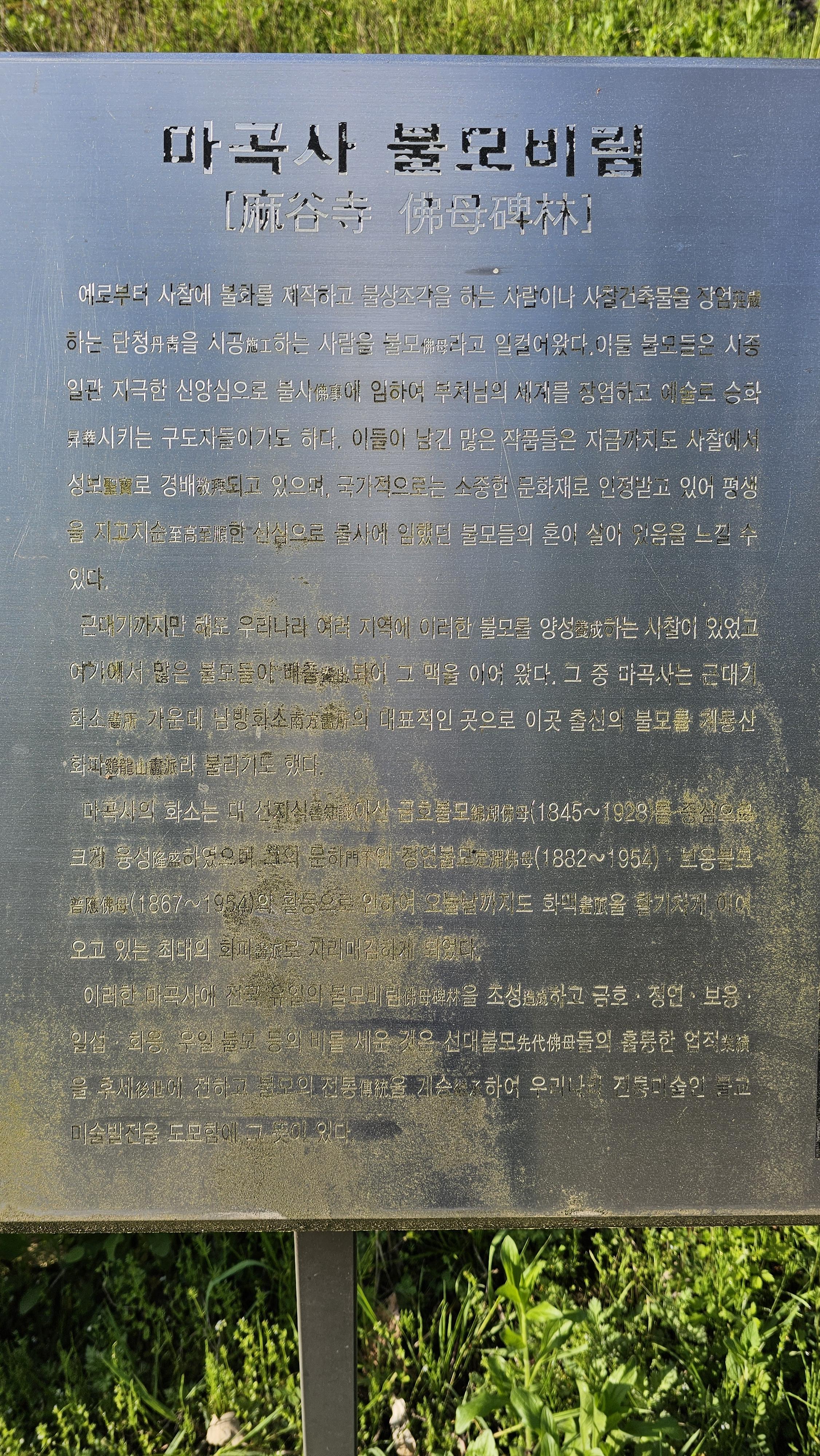 마곡사 비림. 마곡사, 갑사는 전국 사찰에서 불화, 탱화 그림의 전수지로 이름이 나있습니다. 부처님을 그리는 스님을 불모라고 합니다. 이곳 비림은 이 불모 스님들의 비를 모아 모셨습니다. 유일하게 아는 일섭스님 비도 있네요. 해인사 봉황문 사천왕상 탱화를 그리신 분.
