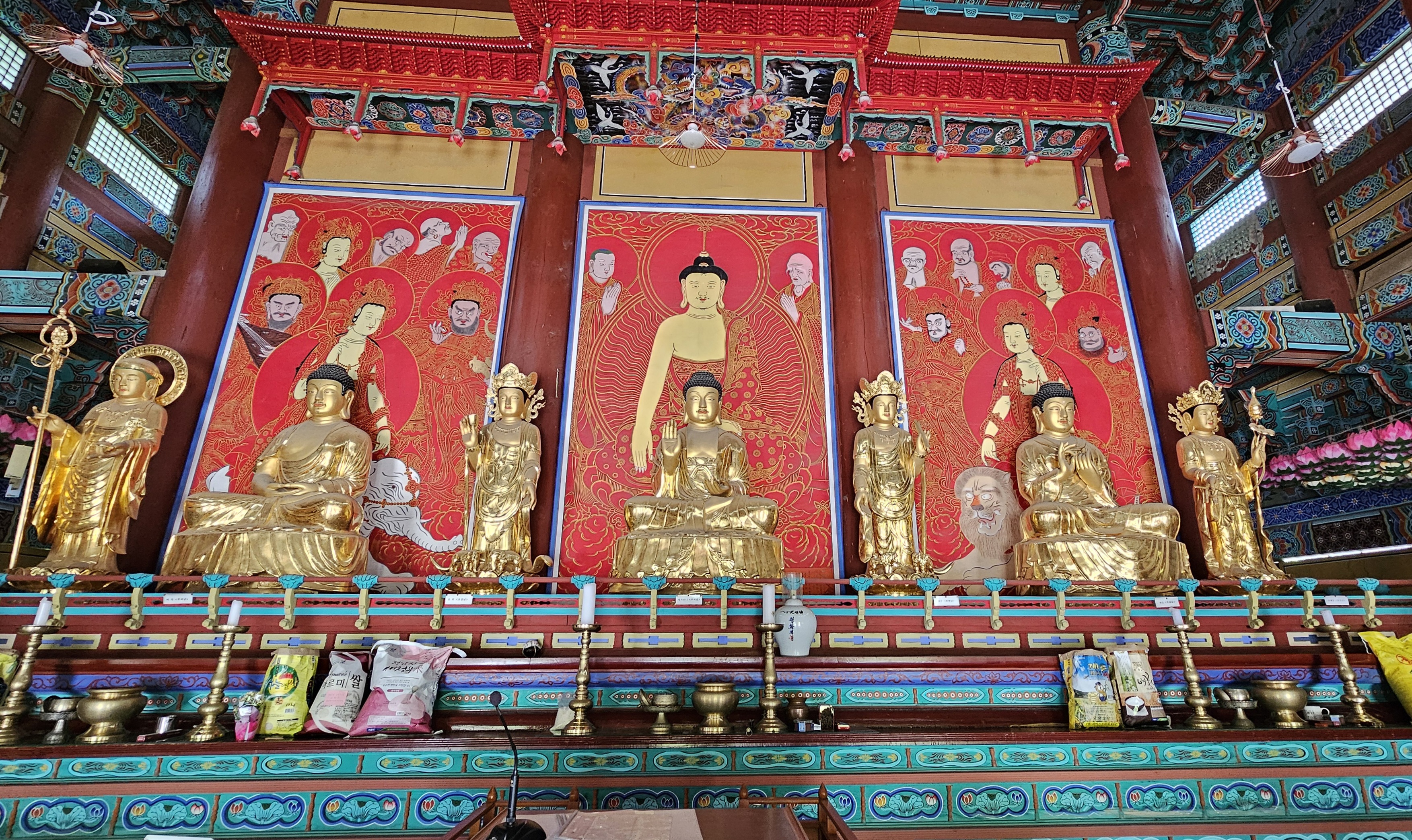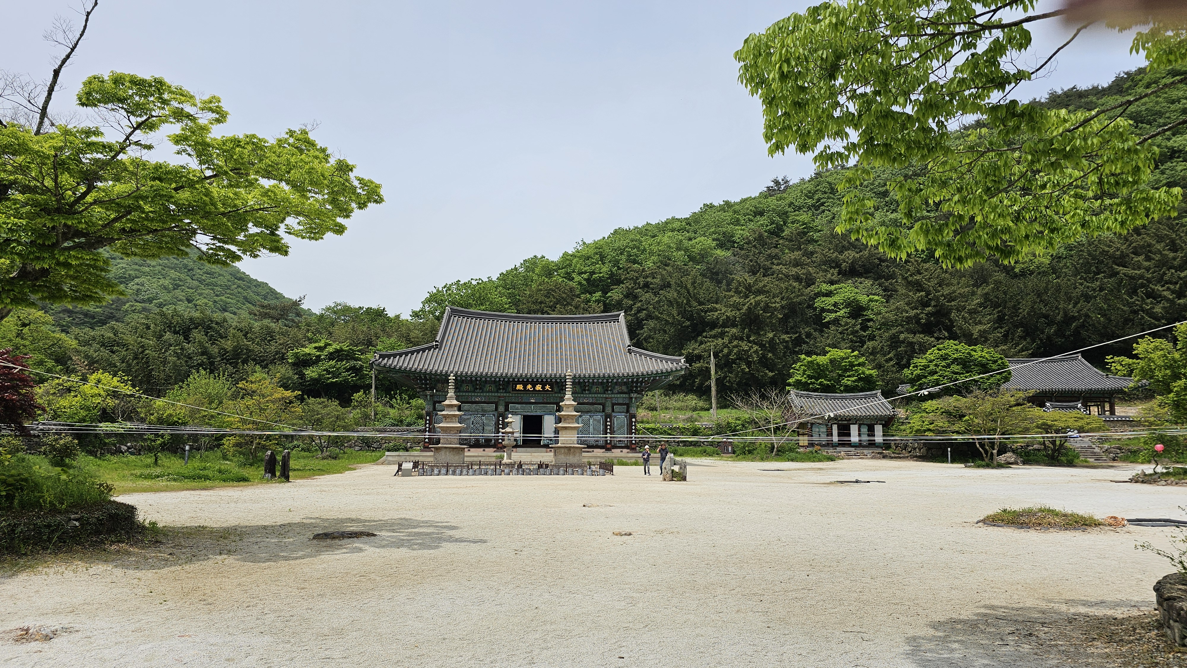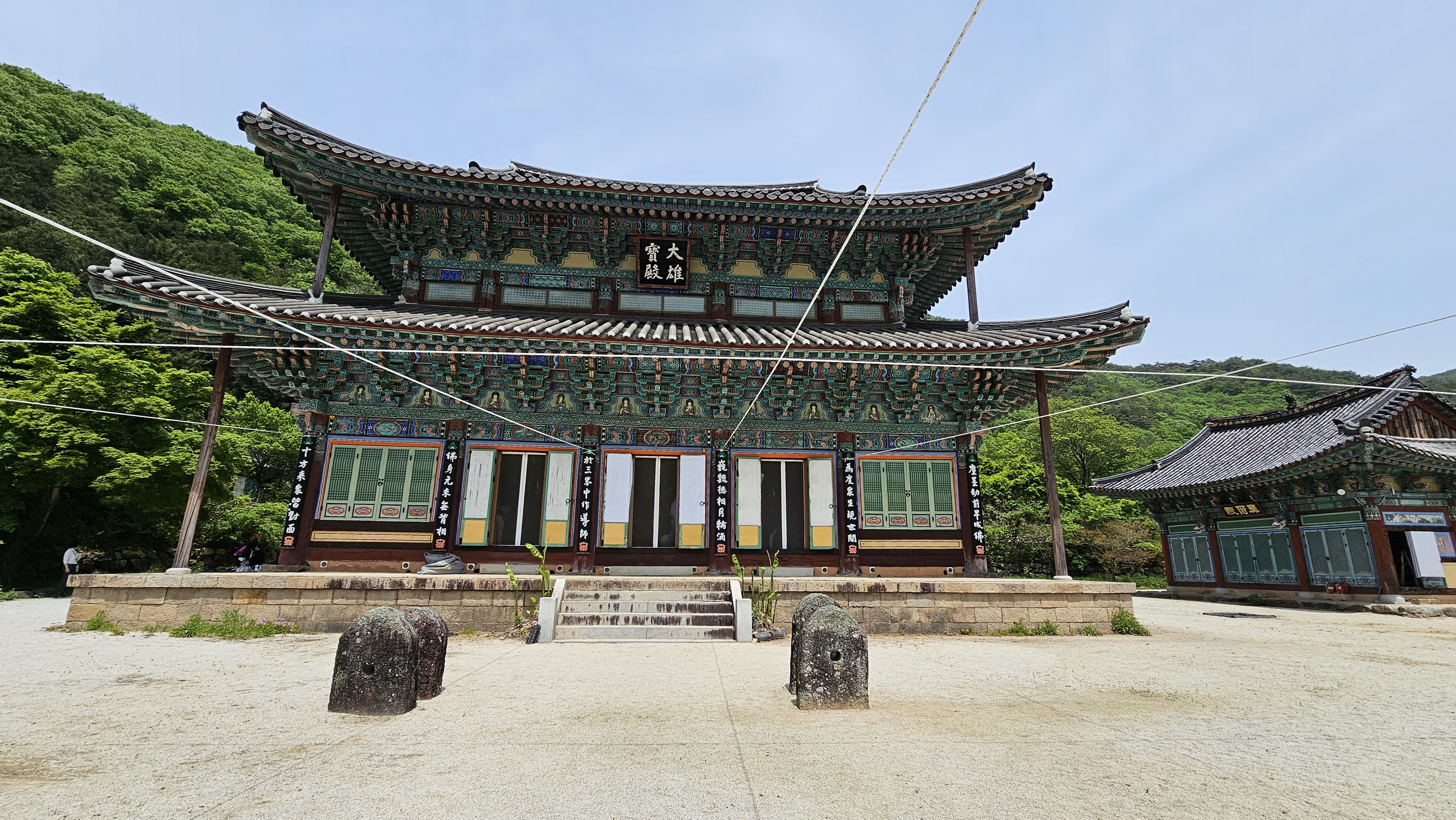 대웅전 정면 5칸, 측면 4칸, 중층팔작重層八作지붕. 80년대 화재로 전소된것을 재건.