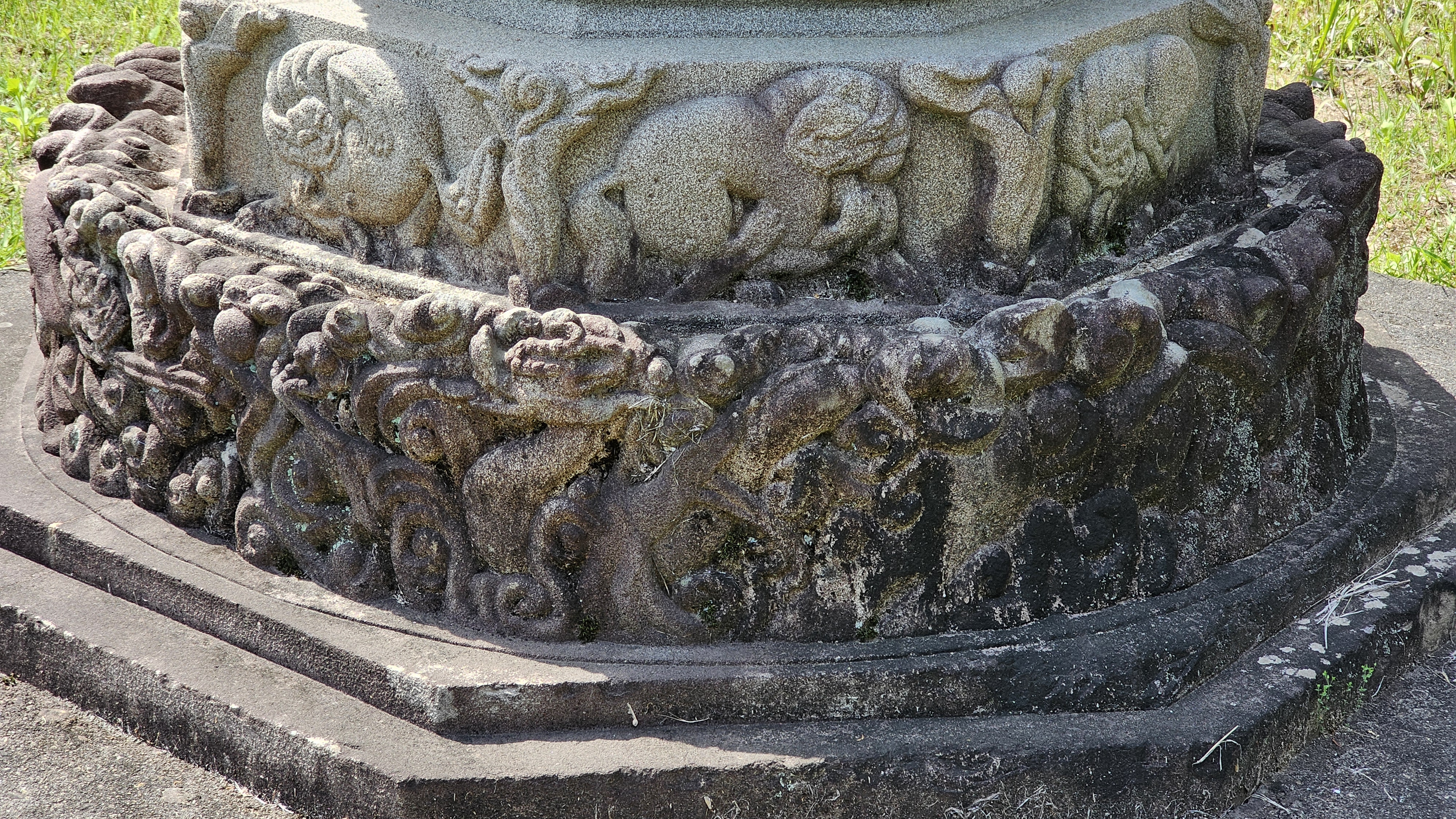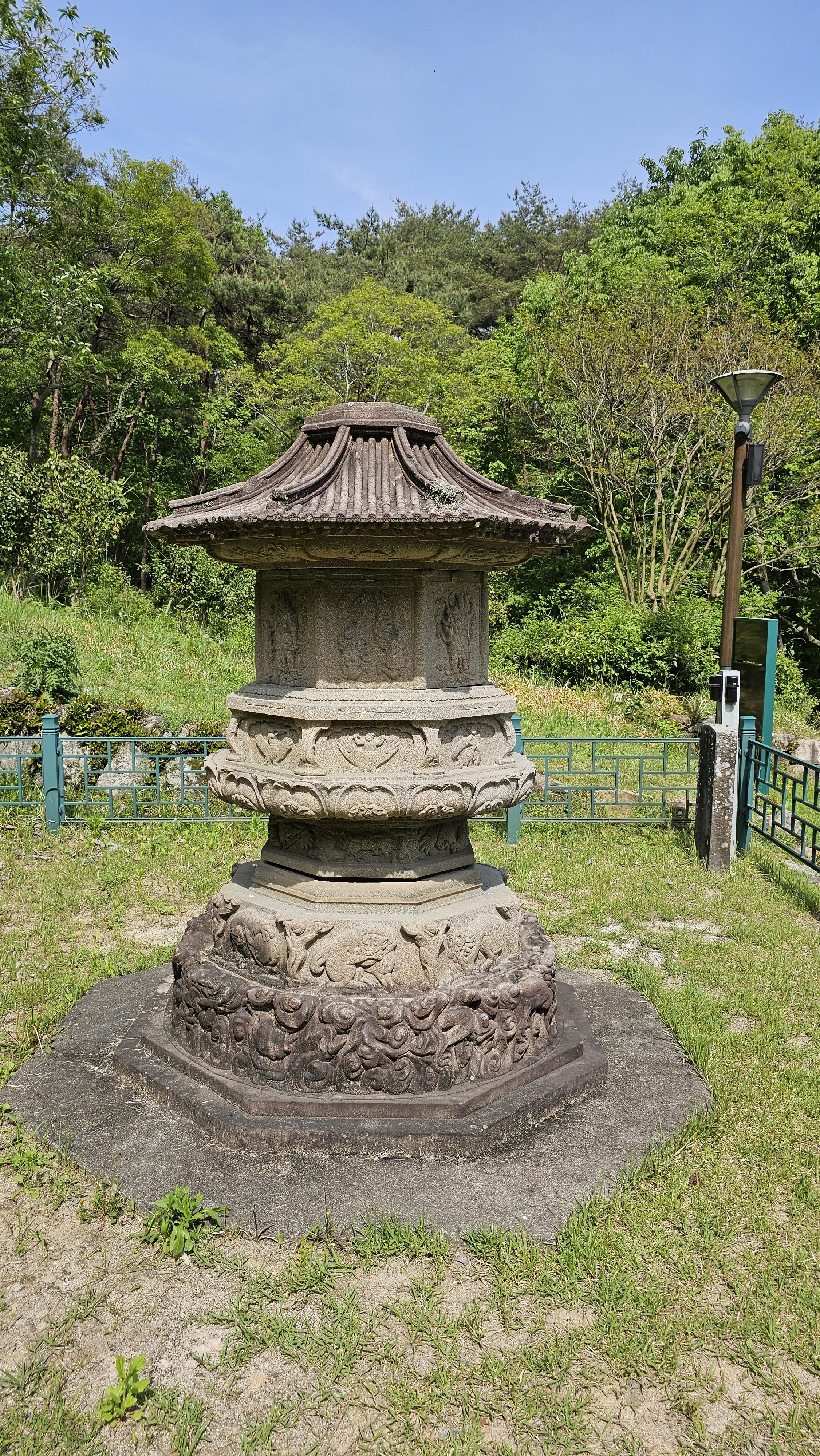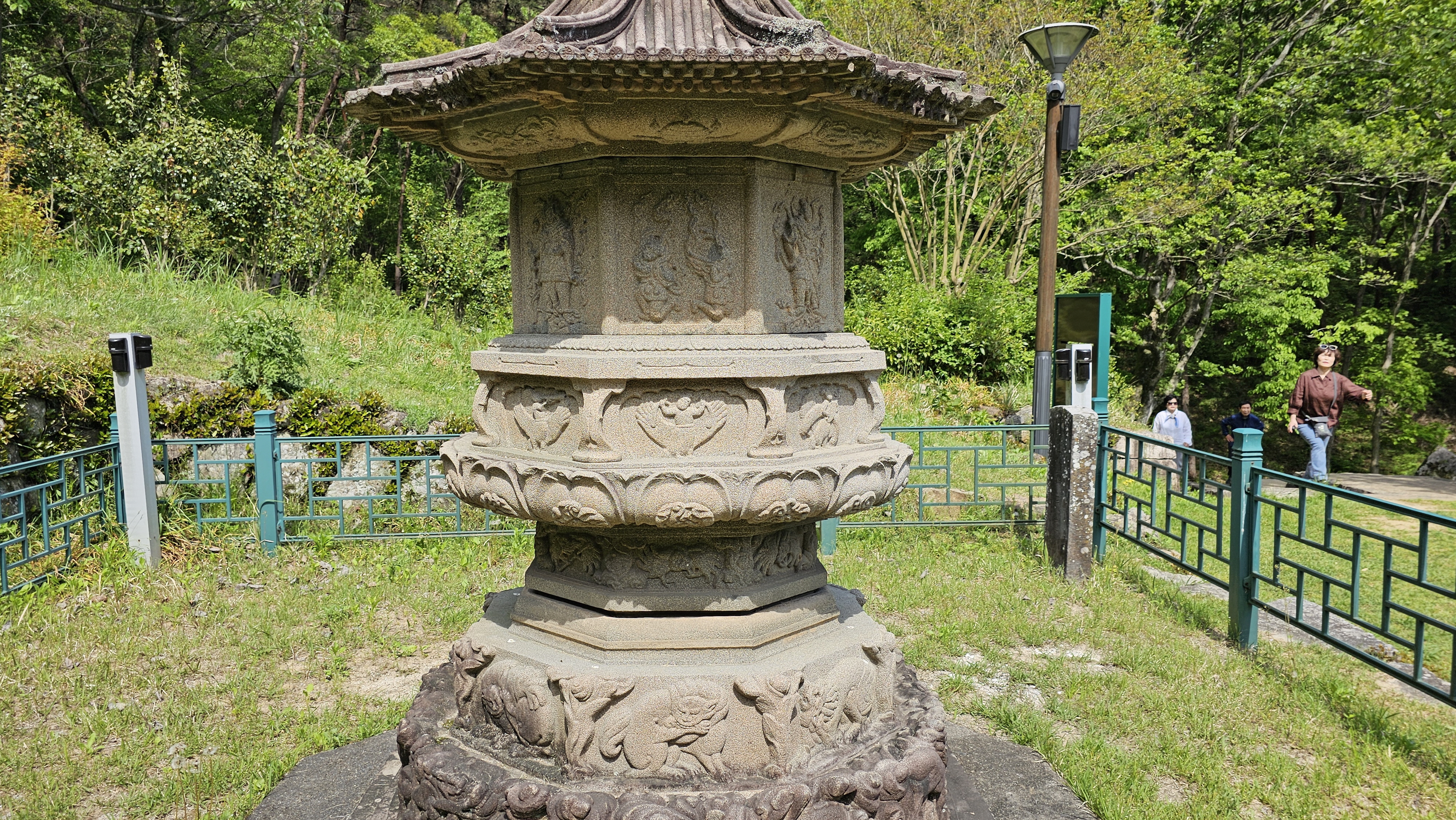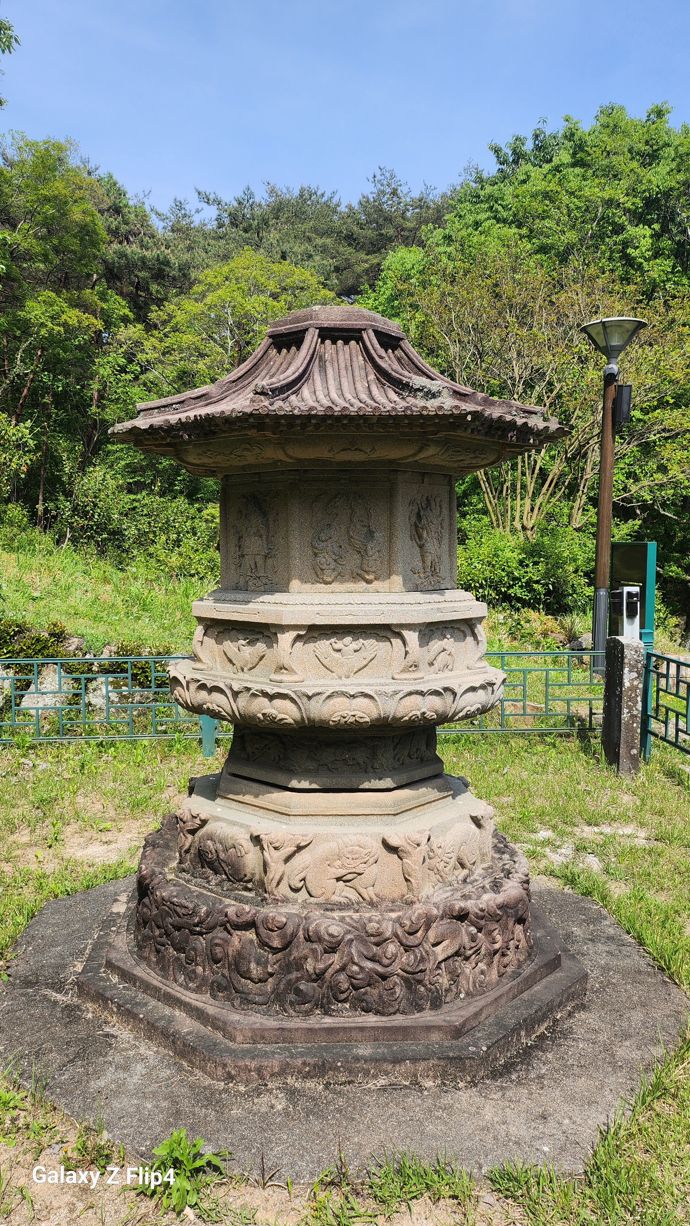 남북으로 문, 동서로 구름문양, 사방 사천왕, 기단에 안상(코끼리눈모양, 연꽃잎이라고 해야 더 어울림) 을 새기고 그안에 다양한 모양의 극락조 가릉빈가를 새겼다.