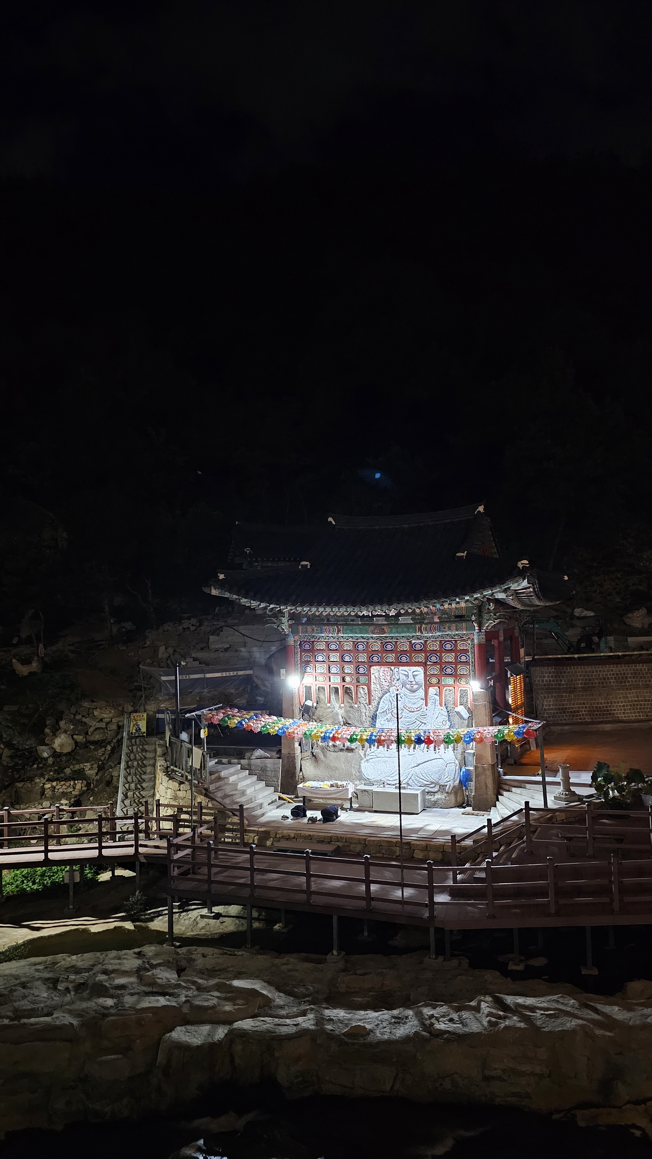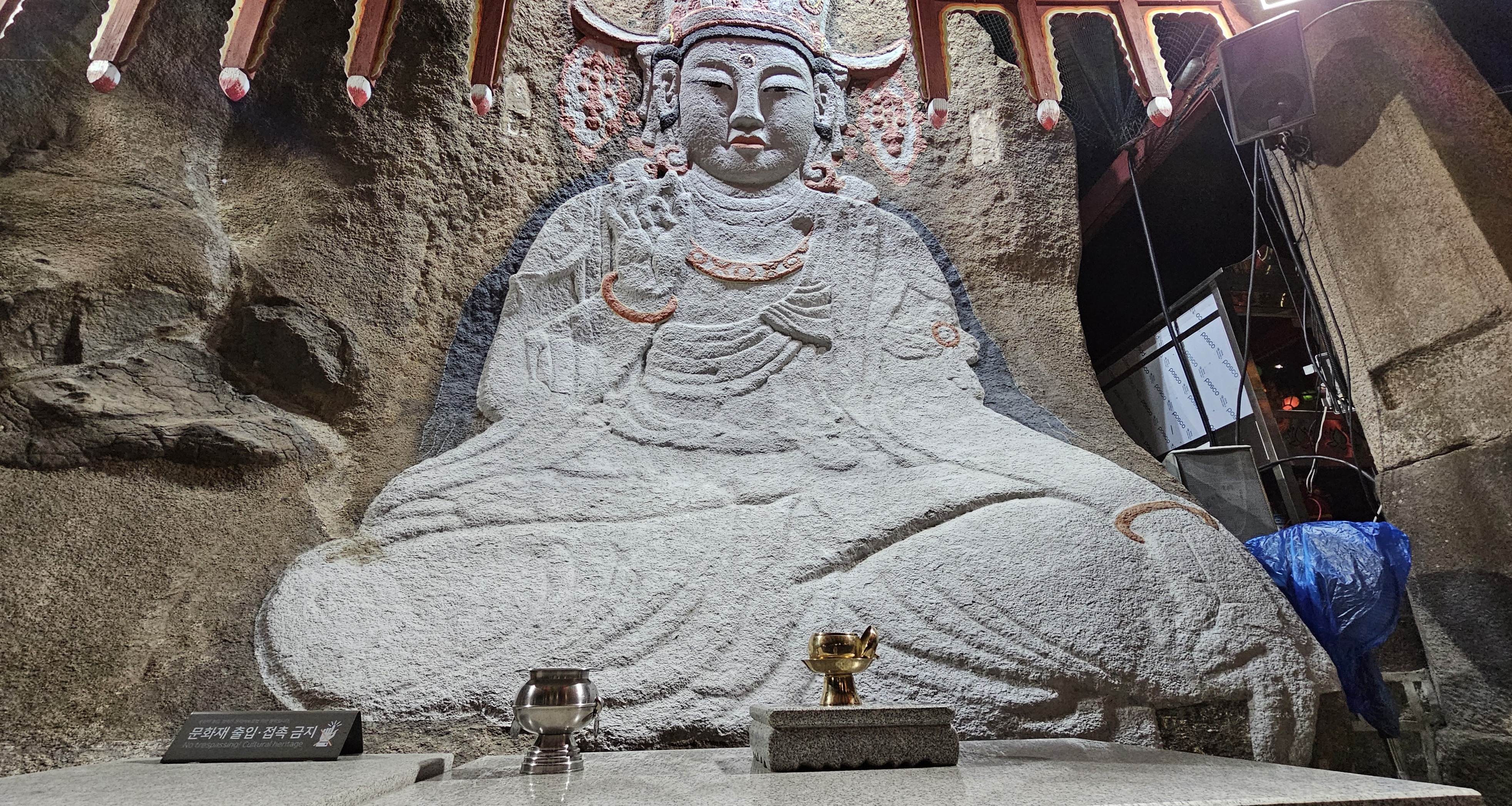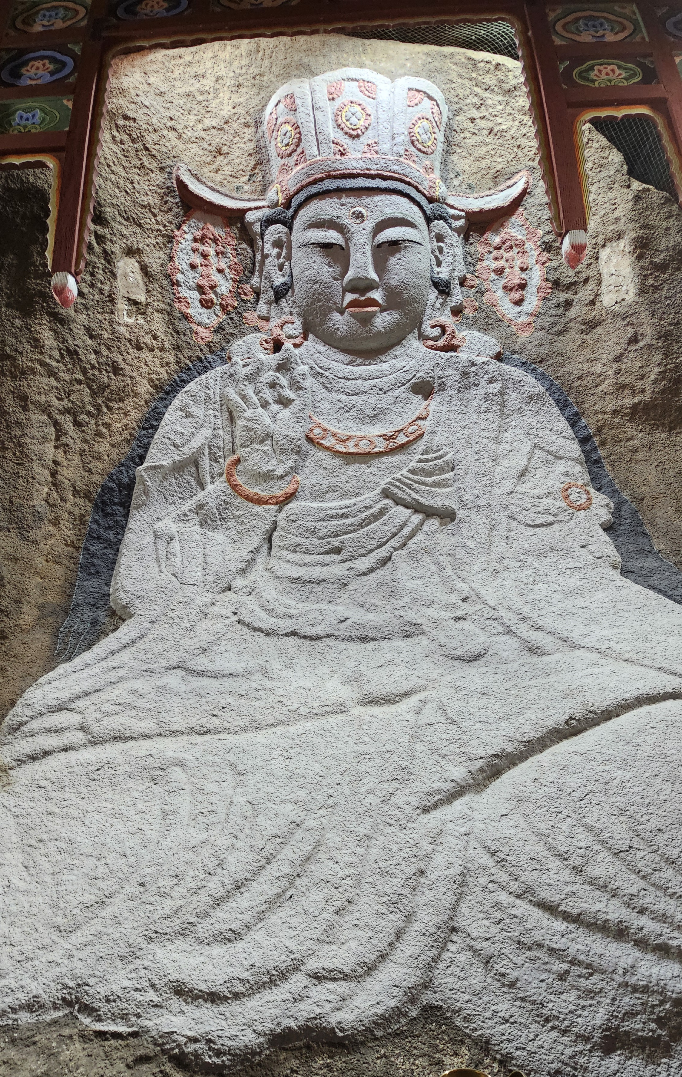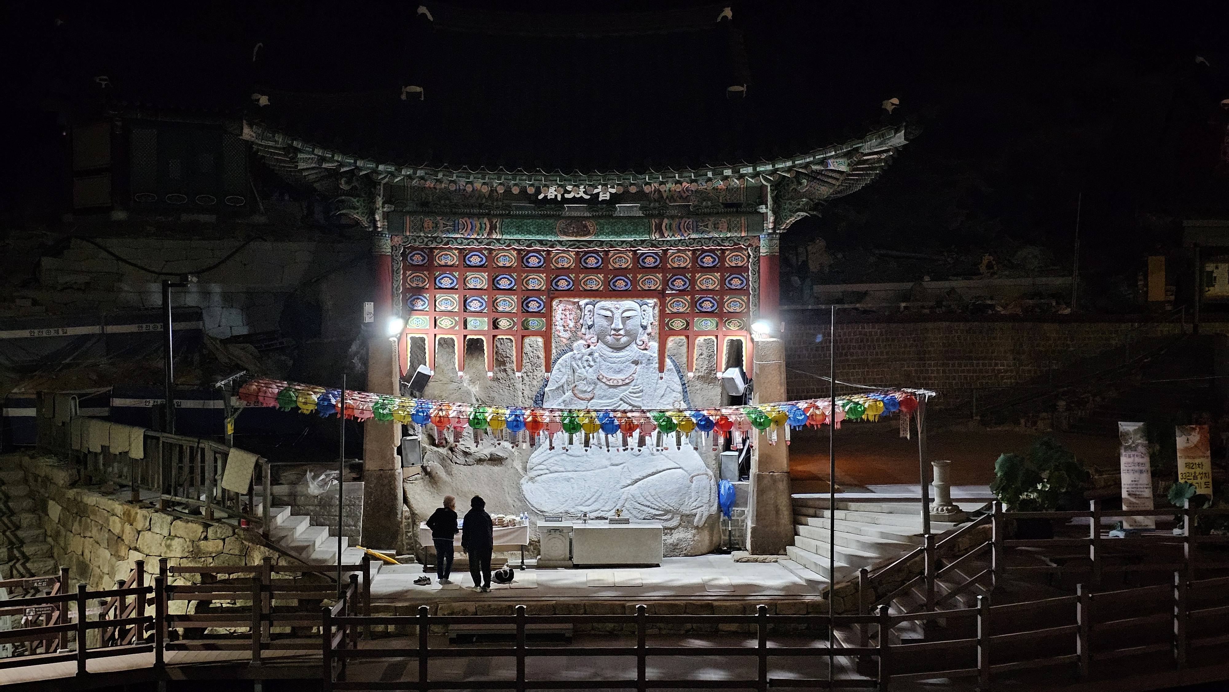 보도각 백불로 알려진 마애 관세음보살님. 새벽에도 기도객이 있습니다.