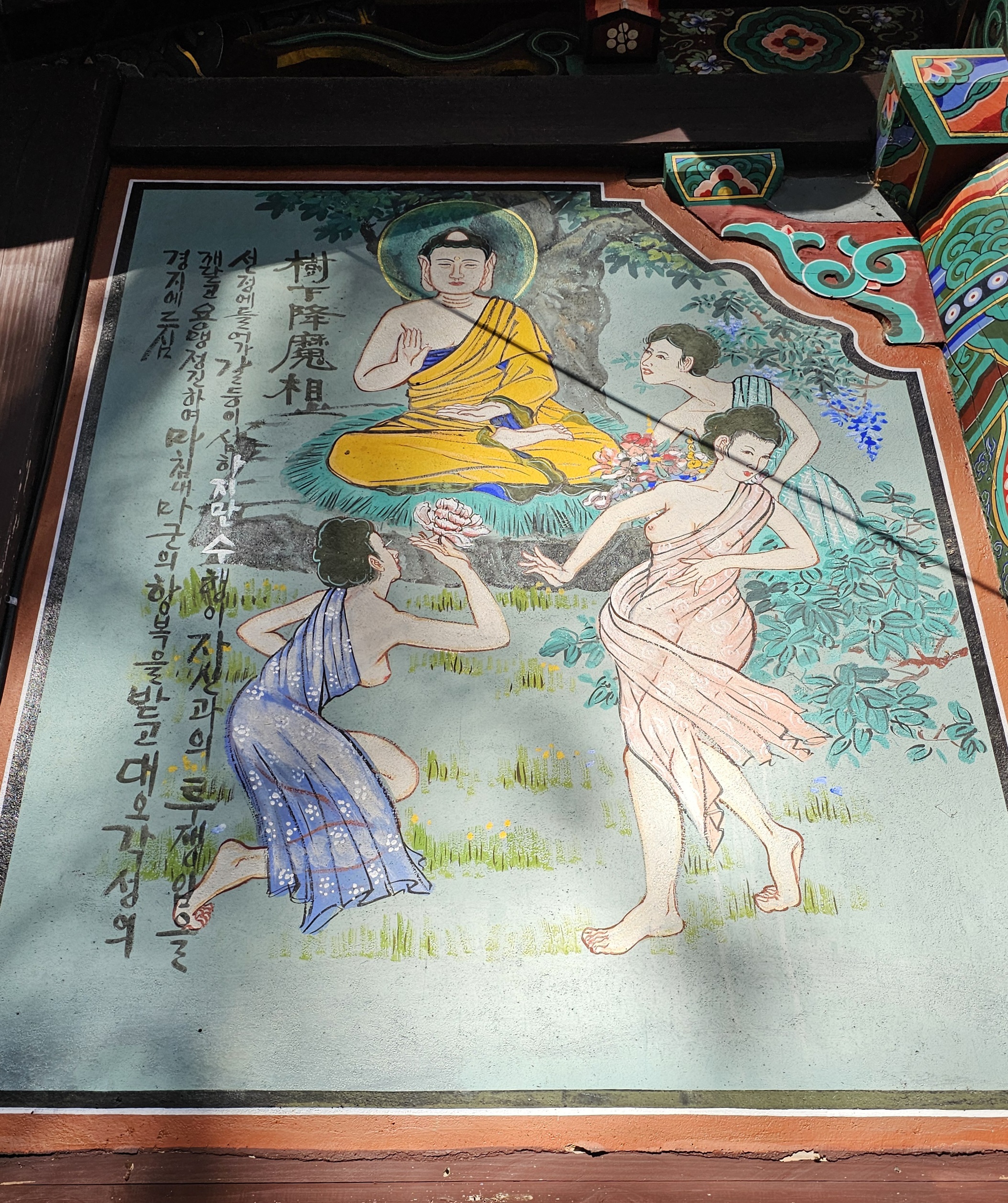 대웅전 벽화 팔상도 중 수하항마상...지금까지 본 수하항마상중 가장 실감나고 요염하게 그린 벽화...입니다.