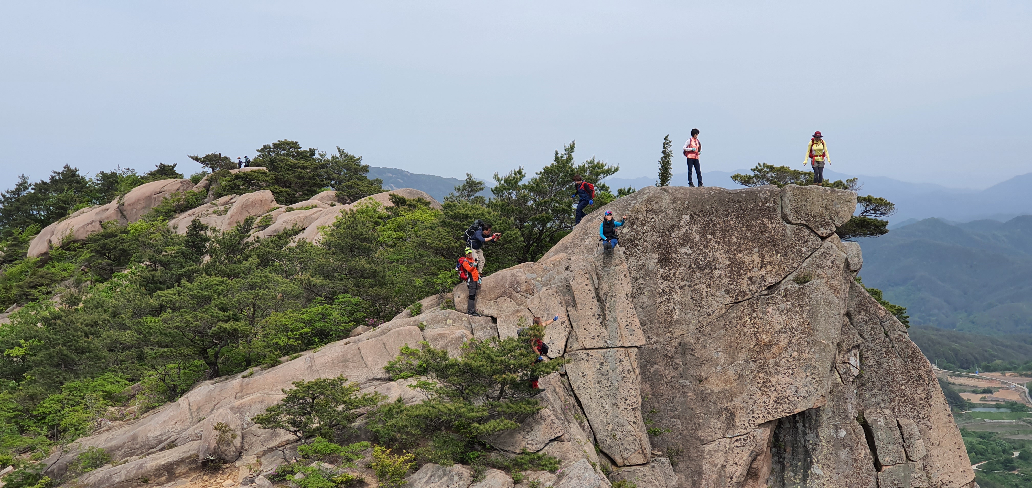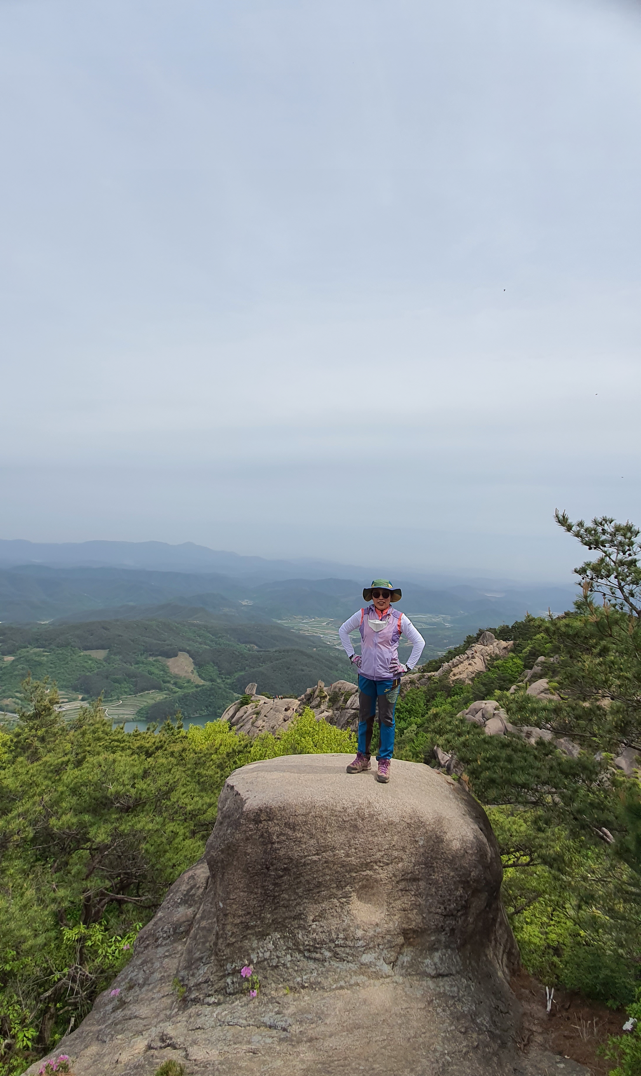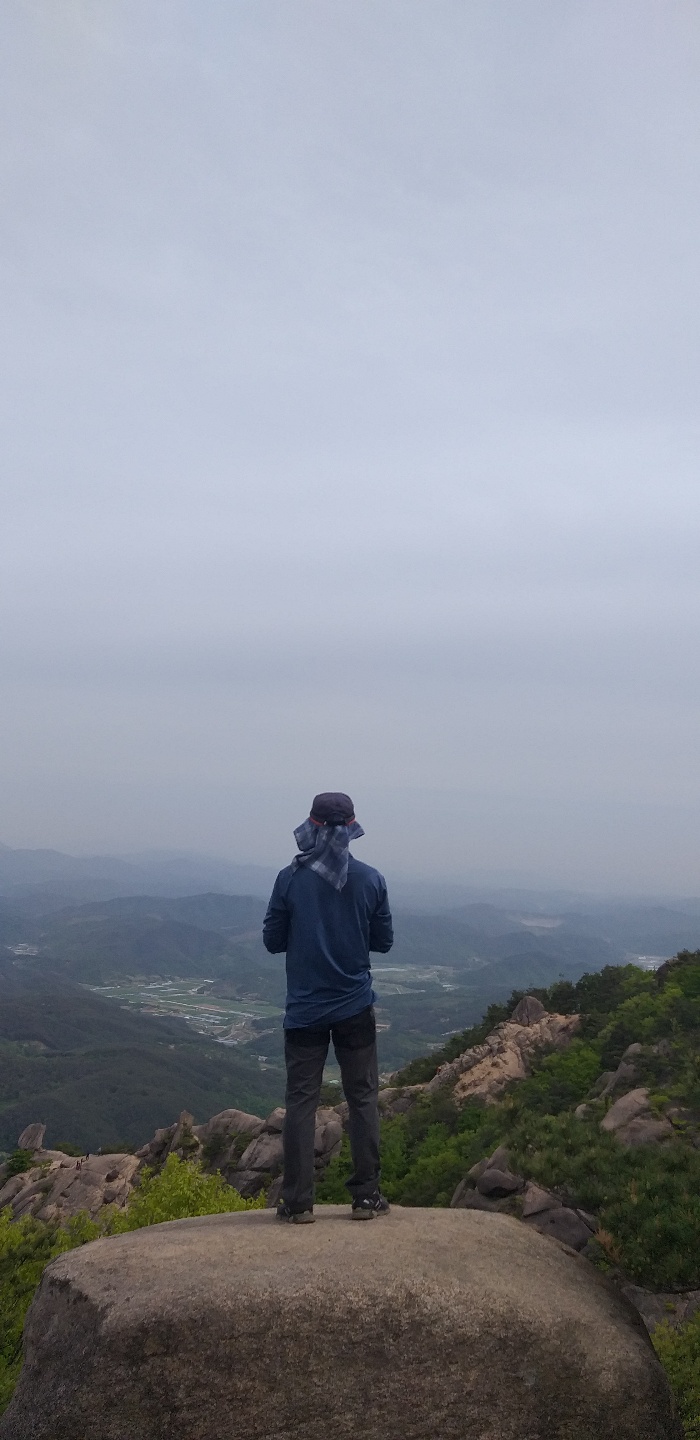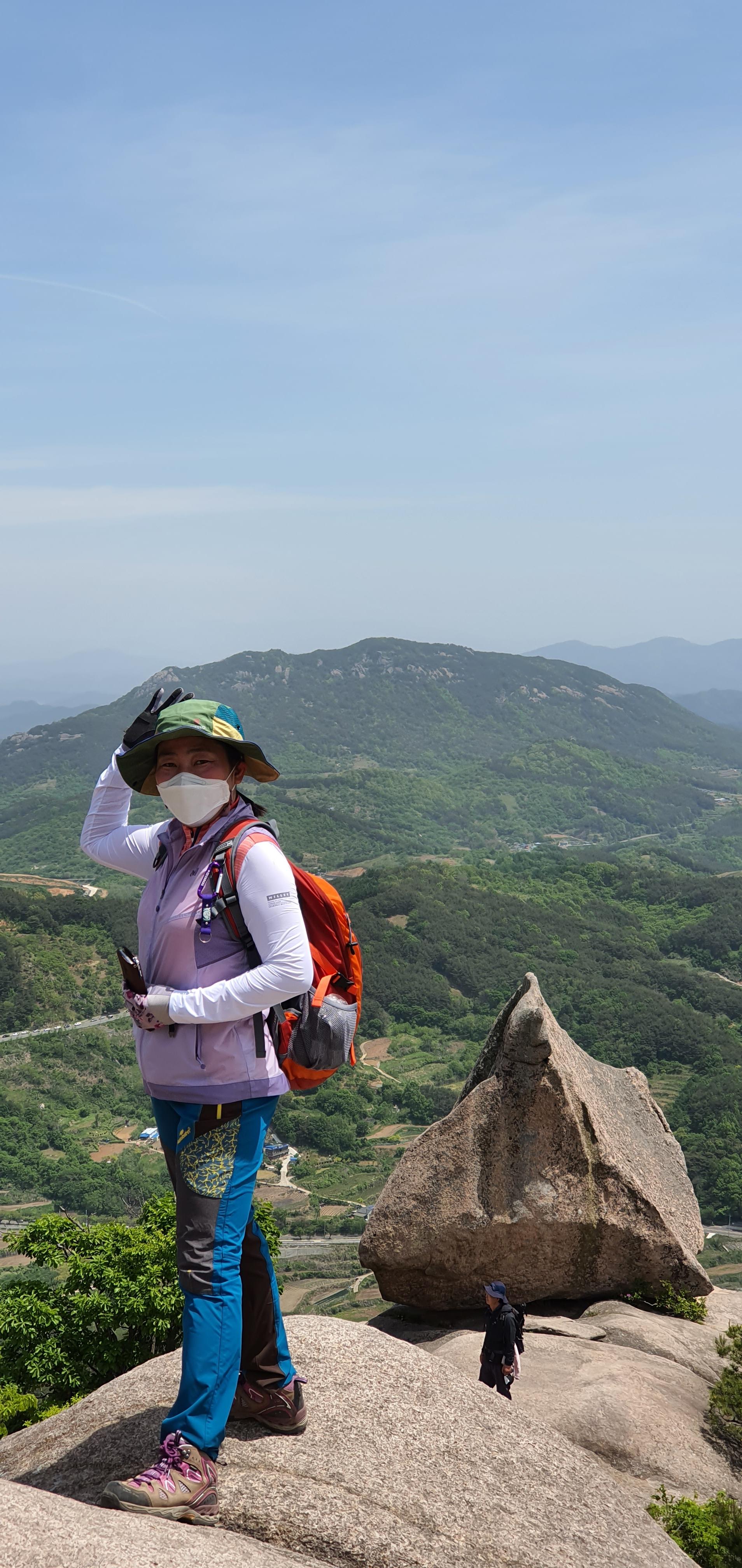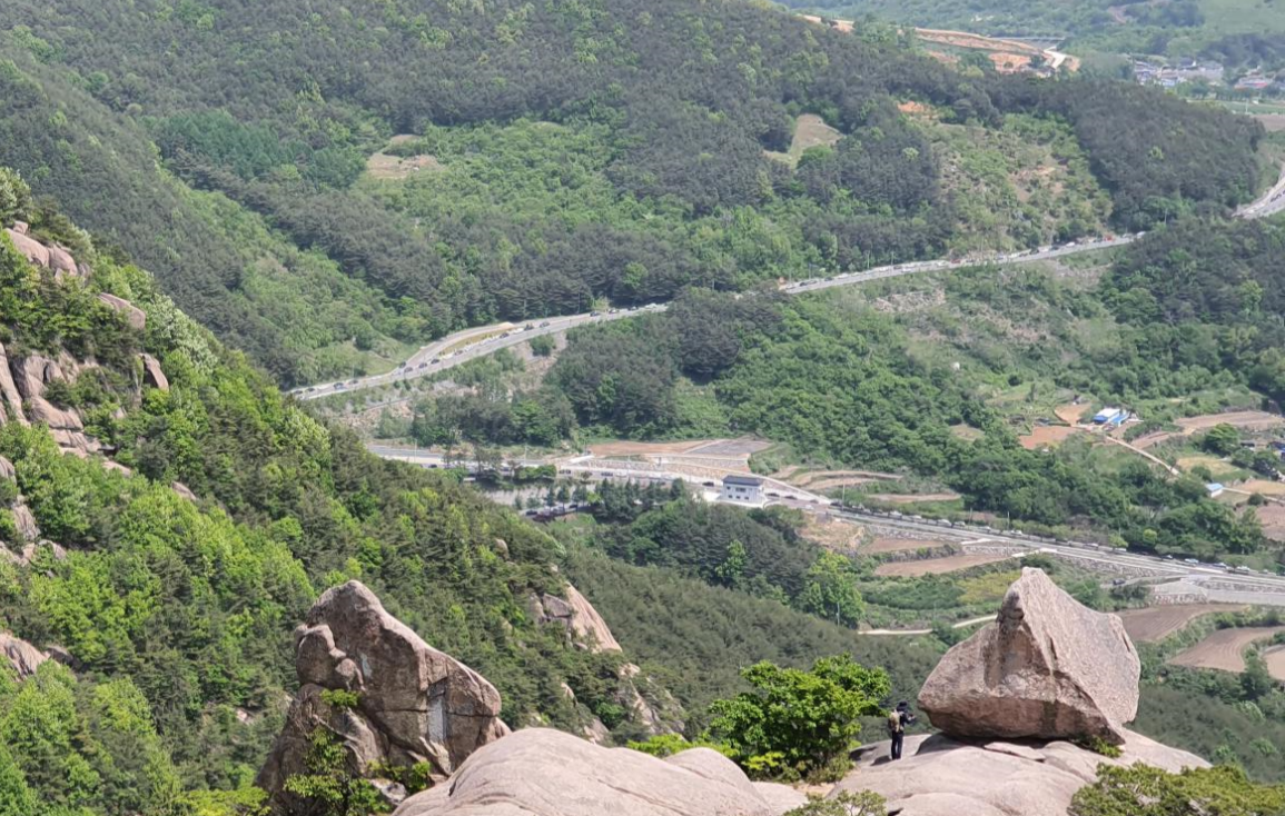 돛대바위 뒤로 대구방향에서 오는 도로와 진주방향에서 오는 도로에 차량으로 가득 찿다. 오전 10시 이전에 오면 한가한데...11시 넘어가니 사람보다 차량으로 바글바글...모산재 능선으로는 아주 한가하다.