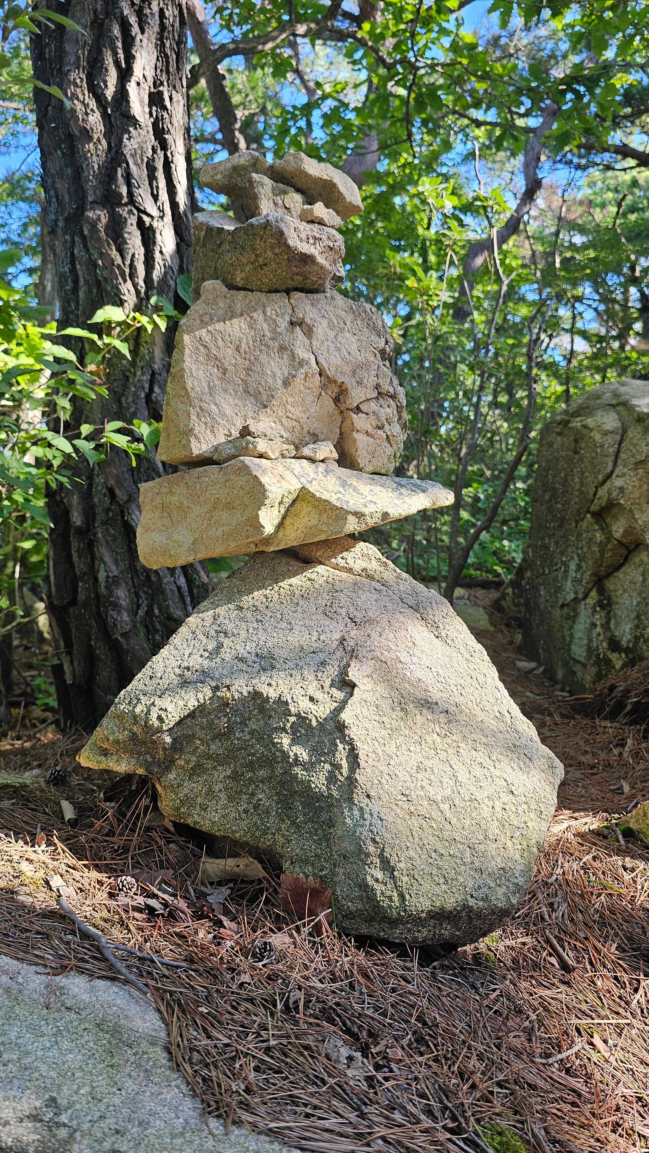 사람 손 타더니 바위 위 소나무가 잘라졌습니다.