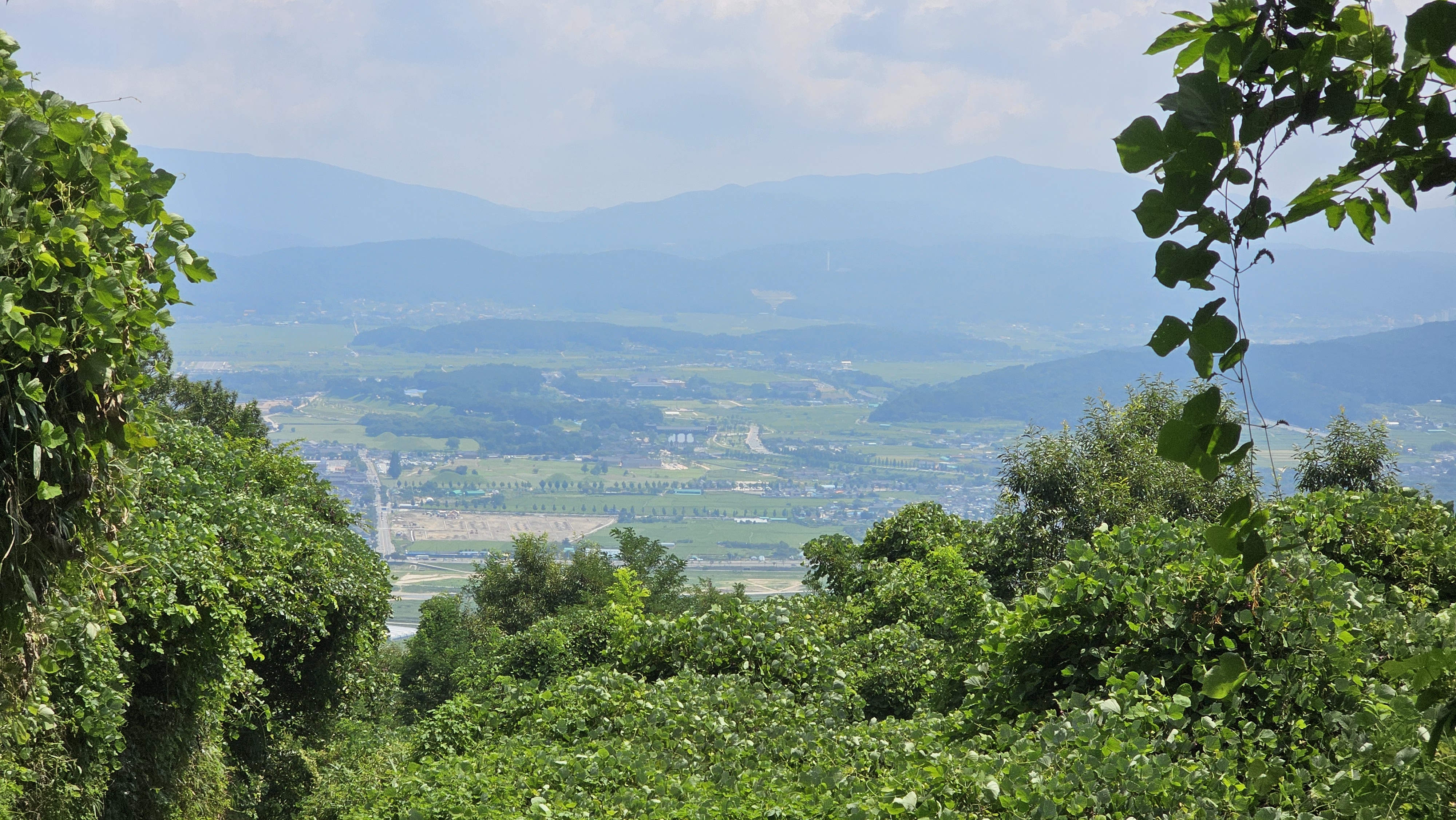 반대로 마애삼존불에서 아래 왕릉과 고속도로를 내려다 본다. 엇갈린 시선.