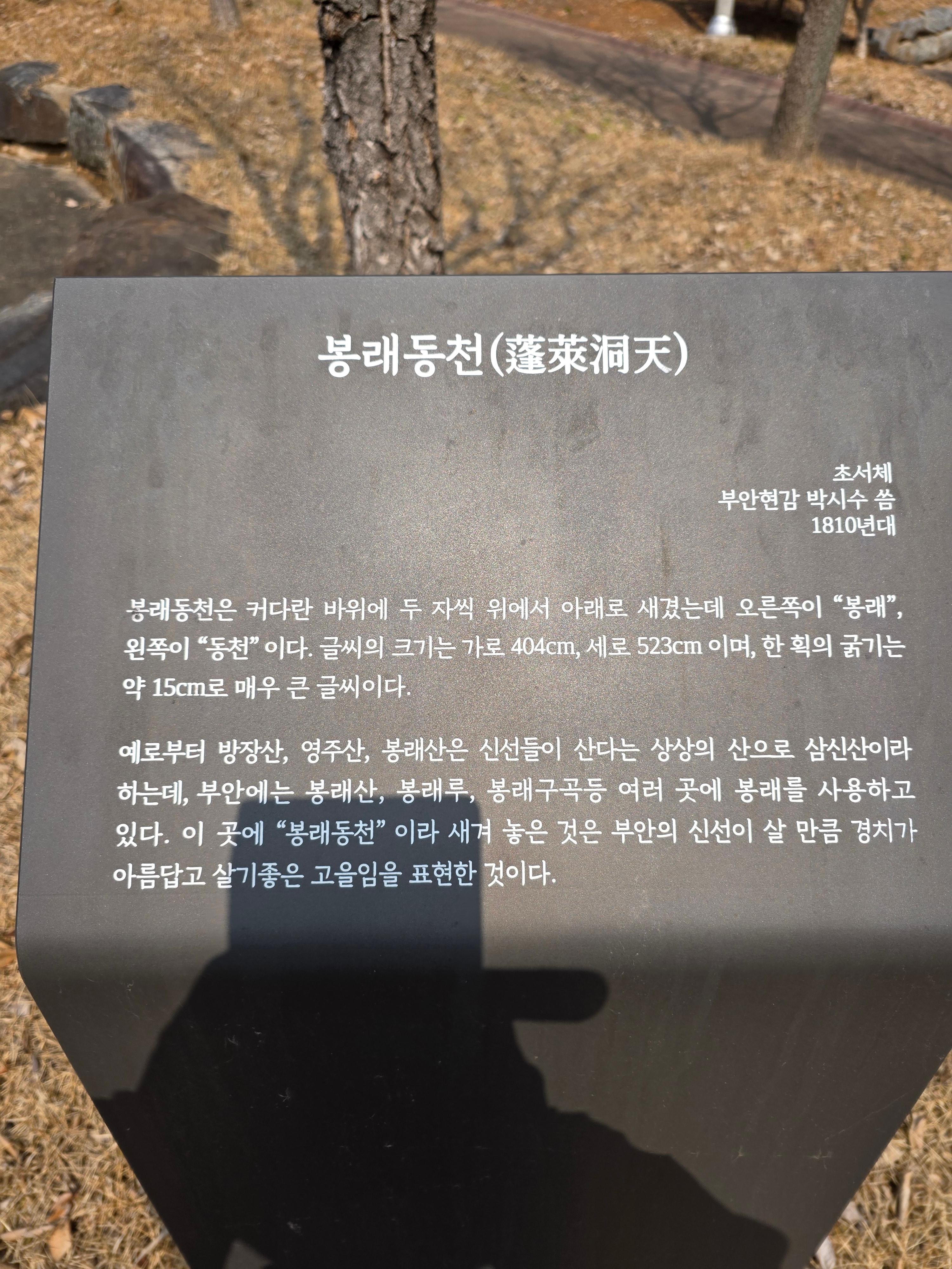 부안군청 안마당에 봉래동천 석각이 있습니다. 우리나라에서 가장 큰 석각같은데요...제 사견입니다. 부안현감 박시수가 1810년 썼습니다.