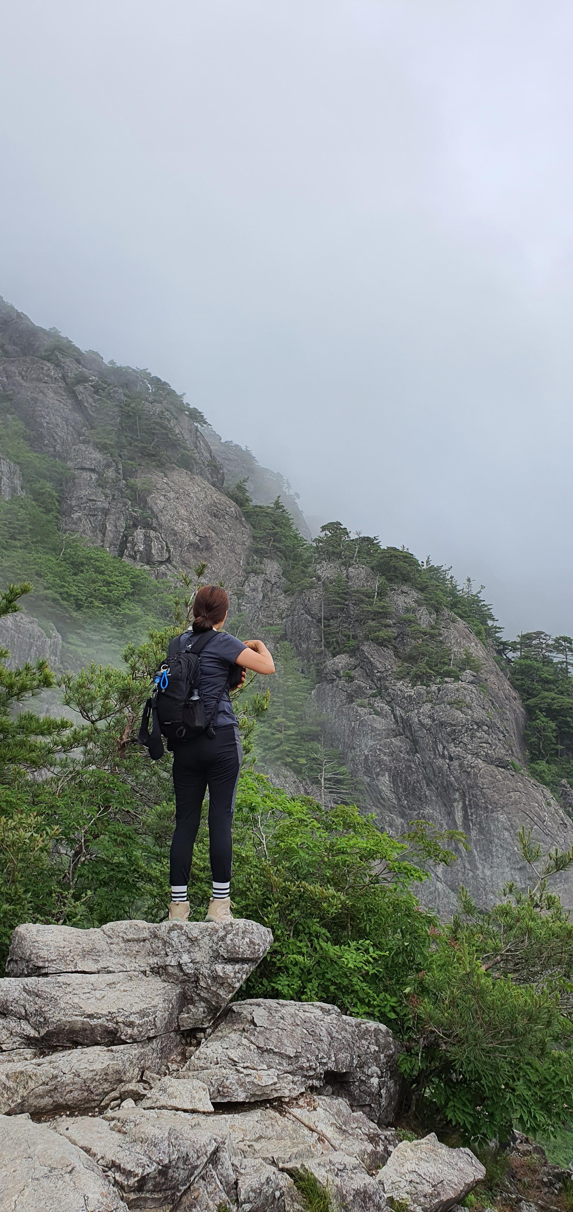 동성봉으로 이어지는 능선.구름이 걷히는데...저기가 사람이 다니는데인가...