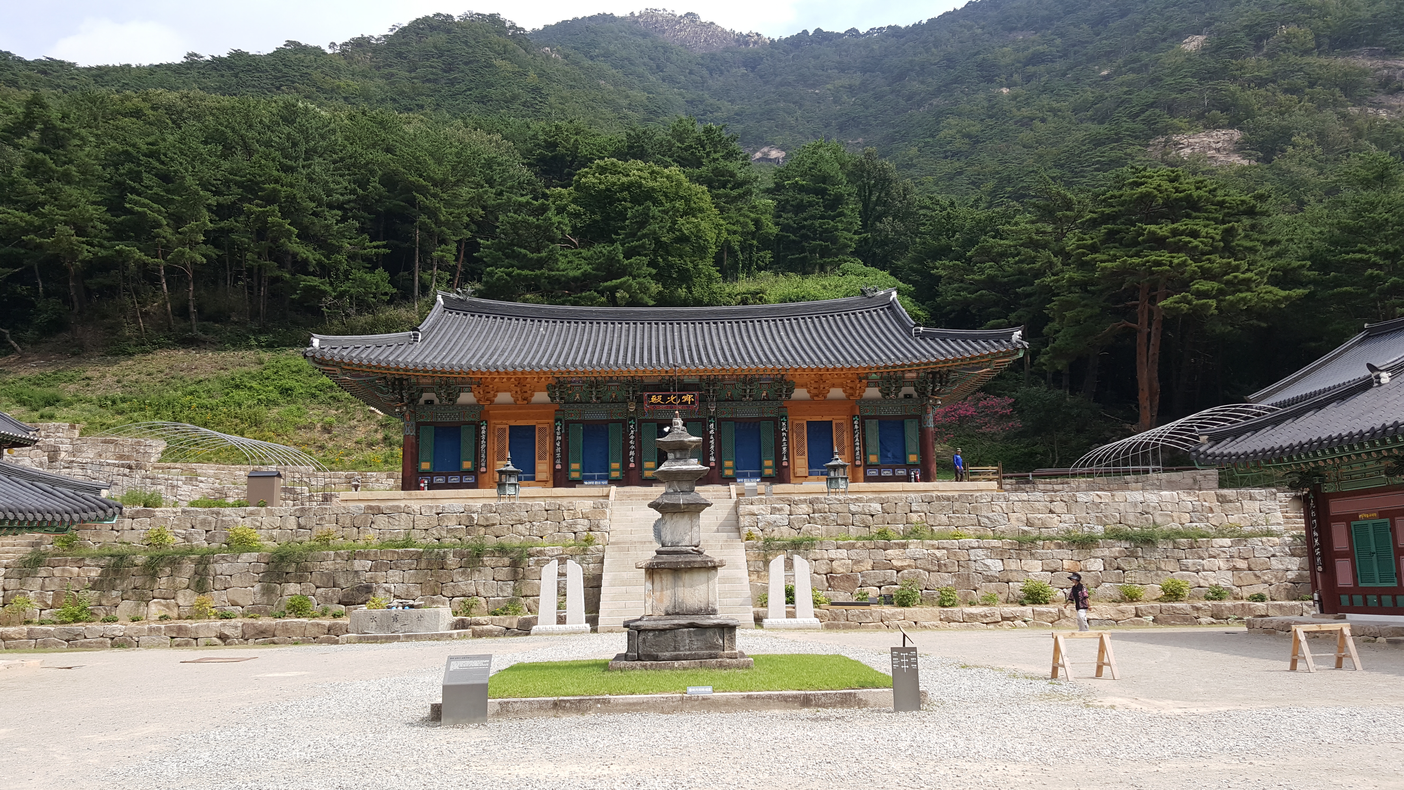 삼화사 비로전...복원공사중인데 건물을 양쪽으로 쪼개 기둥을 붙이는 공사인것같은데...이런방법도 있네.