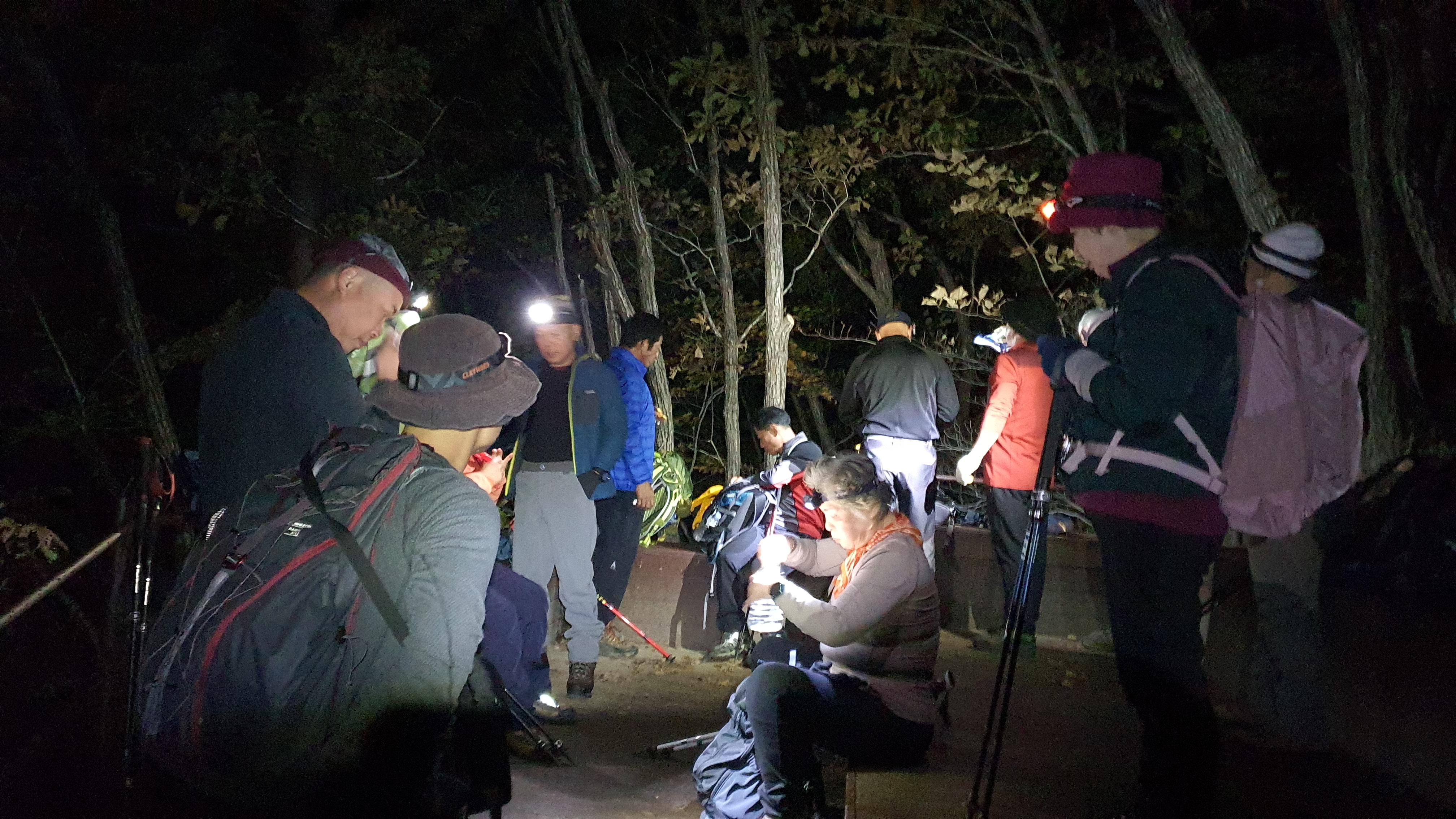 새벽, 랜턴불빛에 의지하여 땅만보고 올라갑니다.