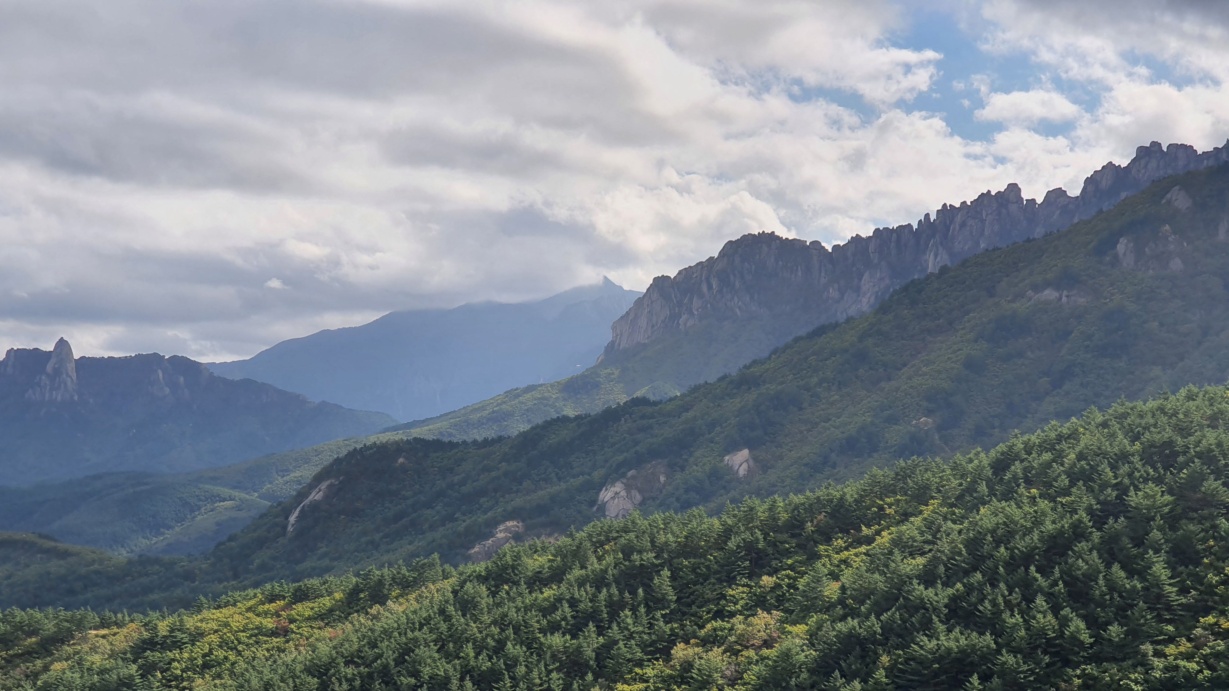 미시령과 우측에 울산바위를 멈추게한 신선봉.