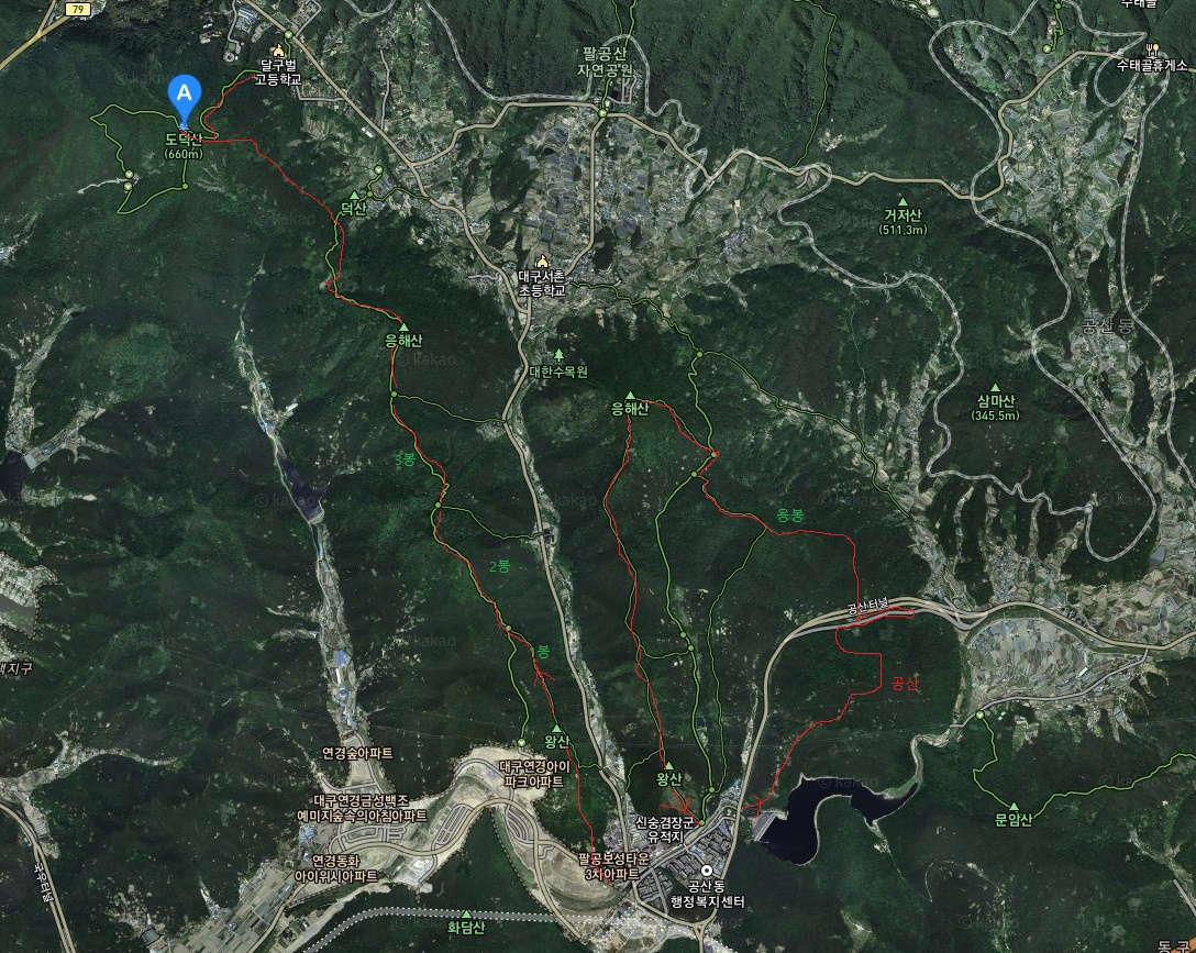 ① 공산터널 위로 가는 공산, 응봉, 응해산(동), 왕산코스.