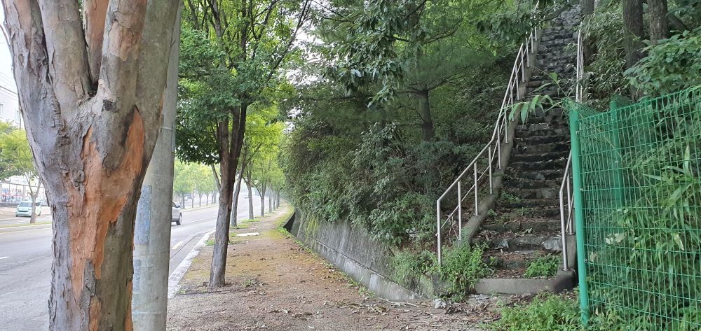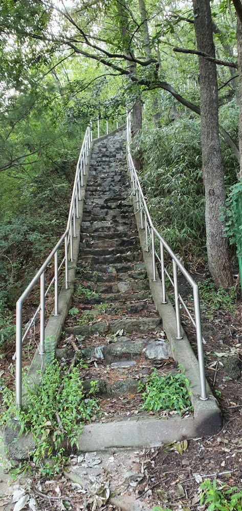 공산동 공산댐 입구 계단이 산행 초입입니다.