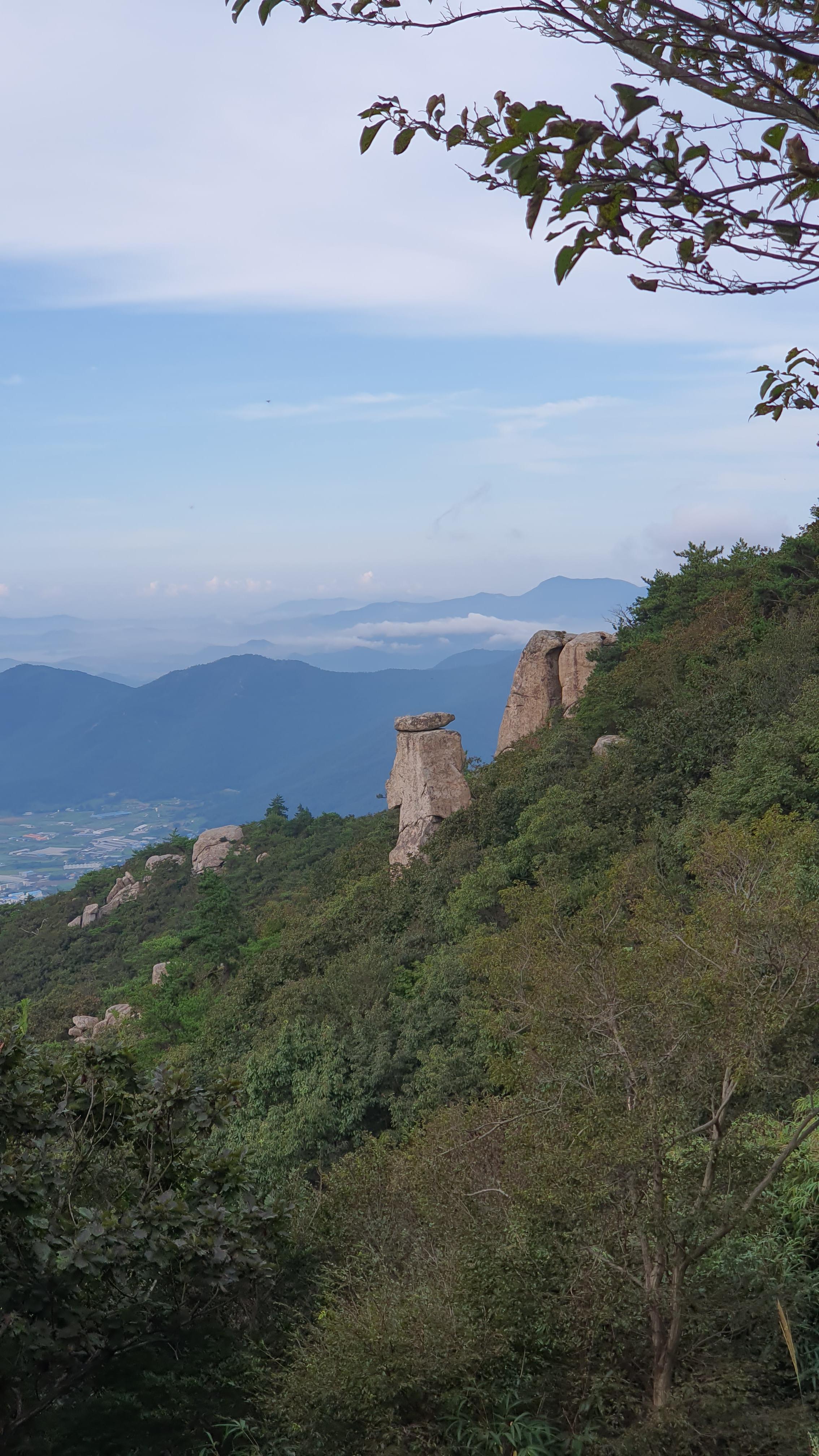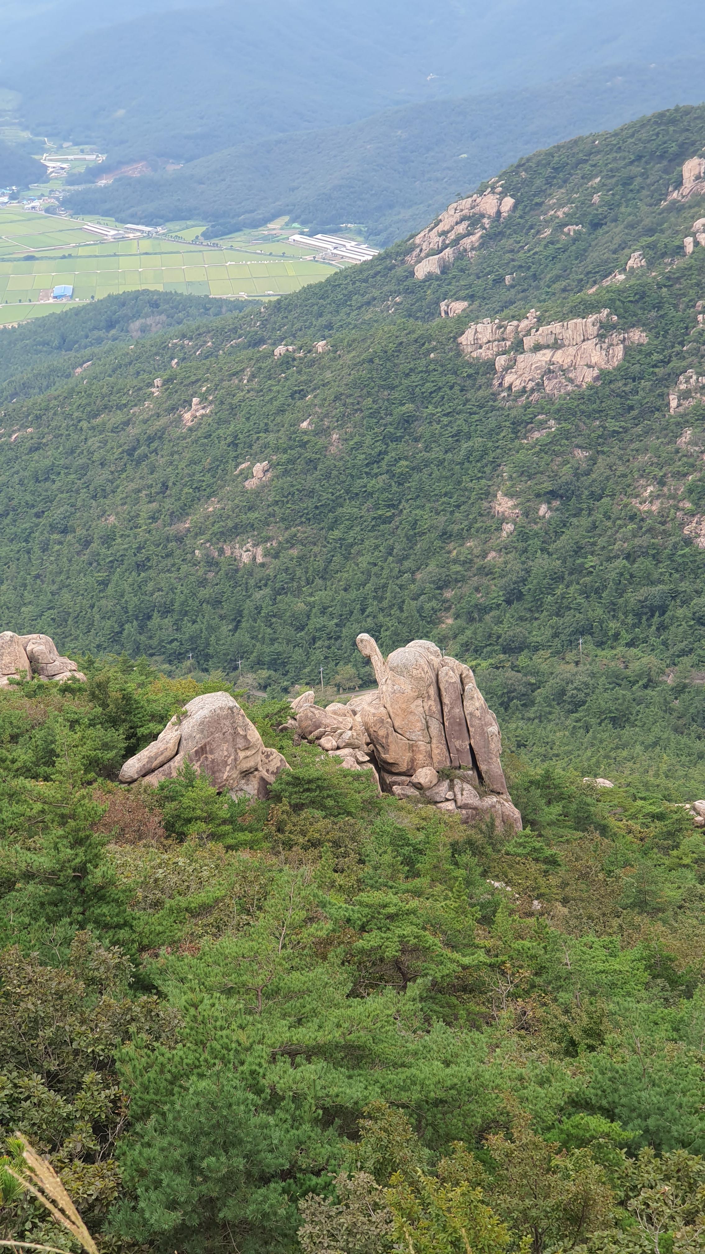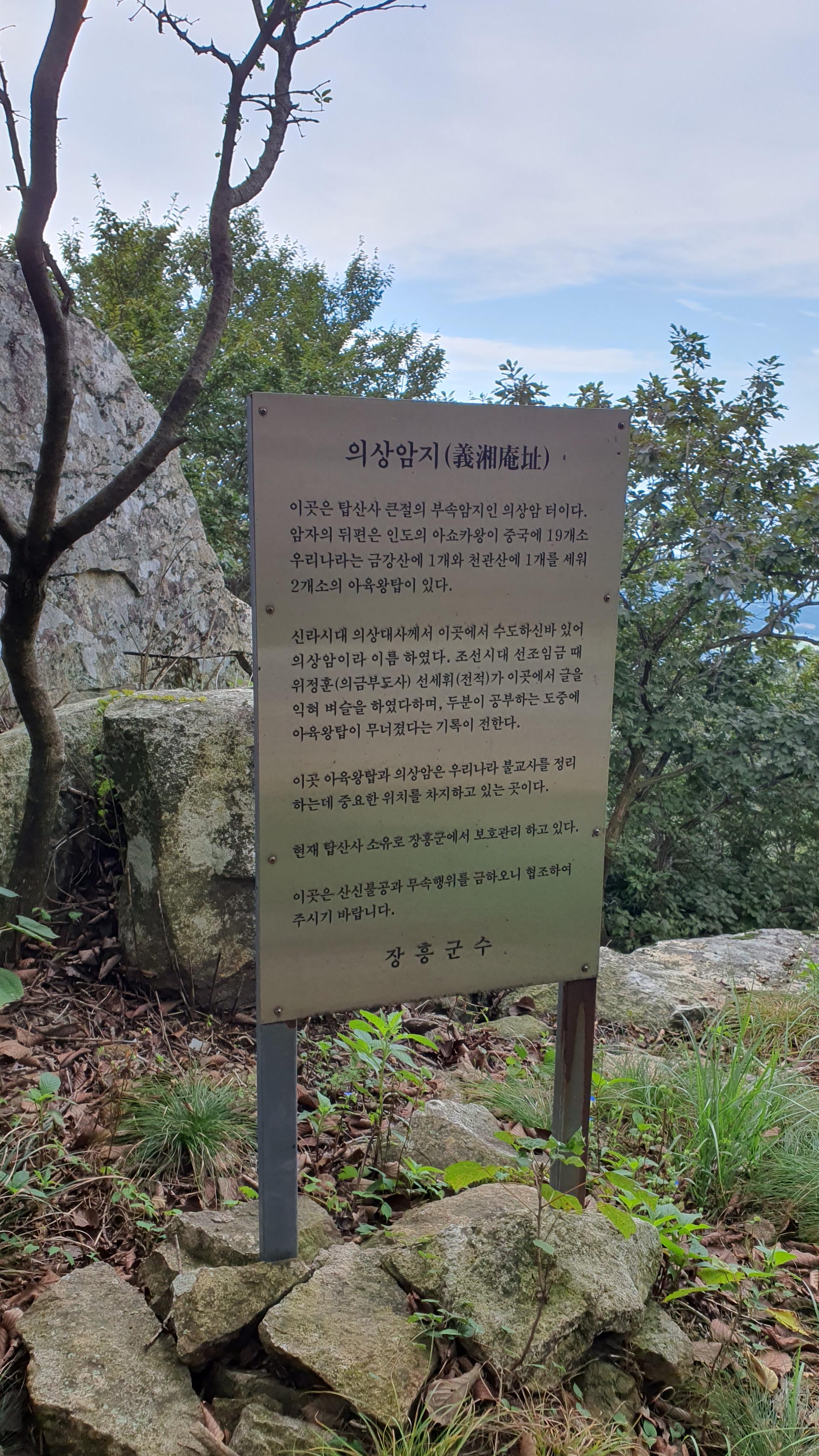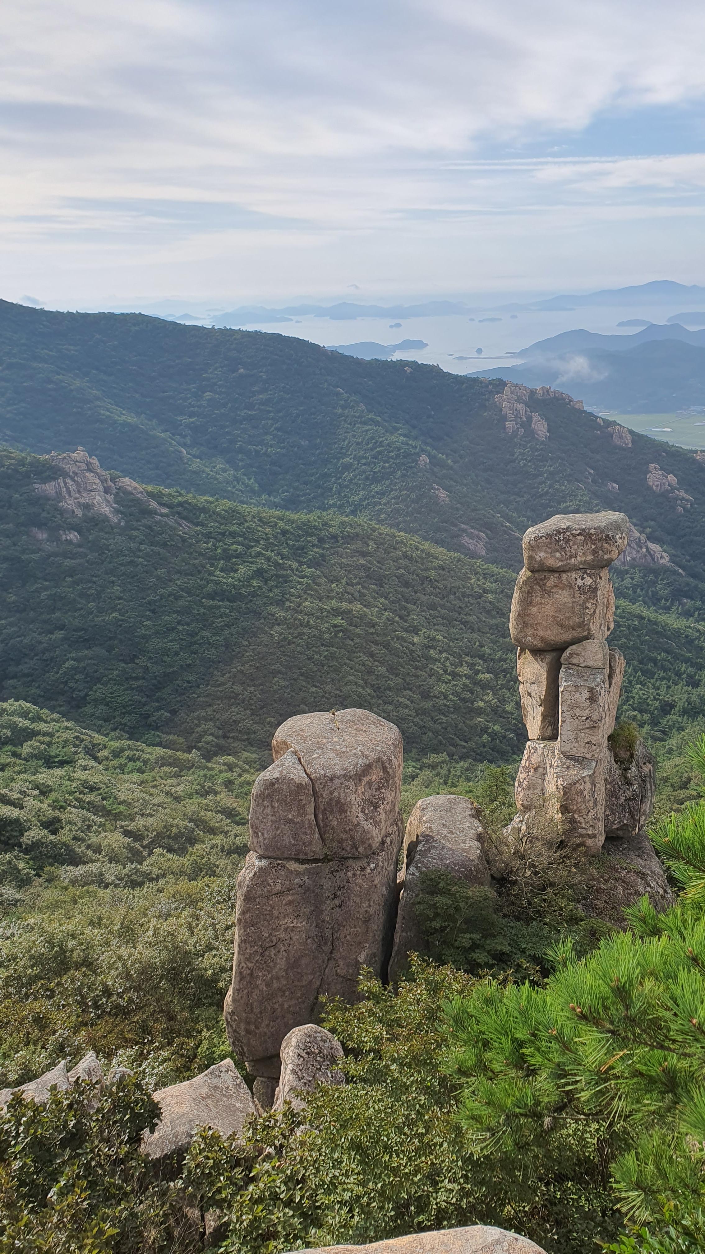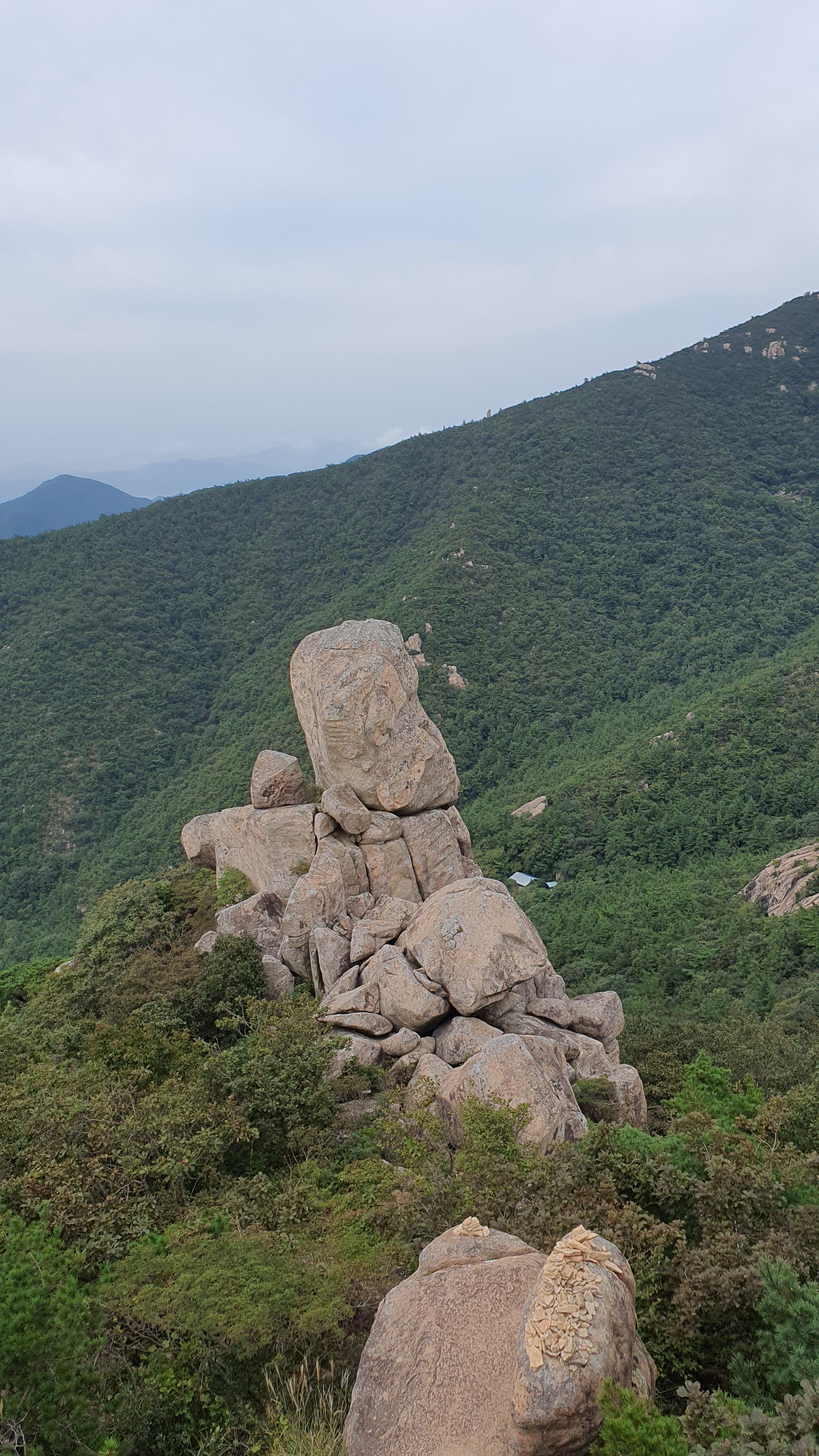 탑산사 주차장이리갈까 저리갈까 차라리 돌아갈까....세갈레 등로가 나오는데...가장 왼쪽 탑산사로 오르면 구룡봉을 바로 오를수 있습니다. 가운데 닭봉코스는 정상 연대봉으로 바로가고...오른쪽은 불영봉으로...석굴 수도처탑산사 도착.고양이 보리가 나와 맞이하고 스님은 법당에서 참선수행중이시네요.절을 통과하여 아육왕탑으로 올라갑니다.아육왕탑 직하 의상암지.아육왕탑. 아육왕은 아쇼카대왕으로 인도 전체를 통일하고 부처님의 가르침을 널리 전파한 부처님의 화신이라고 하는 인도의 대왕입니다.아쇼카대왕이 세운 불탑만 8만4천이라고 하니 과장을 좀 보태도 많은 불탑을 세웠습니다. 그중 우리나라에 부처님진신사리를 모셔와 자연 바위에 사리를 모신 불탑입니다.아육왕탑 위가 구룡봉입니다. 봉우리가 전체 통바위로 웅장하고 장흥 앞바다를 널리 조망할수 있는 최고의 조망처입니다.구룡봉에서 바라본 진죽봉과 지장봉왼쪽이 진죽봉 이티 바위라는데...물구덩이가 월출산 구정봉봉 보다 많습니다.구룡봉에서 날이 좋으면 한라산도 볼수 있습니다.진죽봉 이티바위진죽봉에 가서 보니 이렇게 생겼네요. 이짝서 보면 스핑크스. 저짝서 보면 이티.진죽봉에서 바라본 구룡봉환희대. 너럭바위세서 잠시 누웠다 갑니다.구정봉 라인. 맨앞이 천주봉, 다음이 당번봉, 문수봉, 보현봉, 대세봉, 선재봉, 관음봉...스님이 이름을 지은듯. 봉이라기보다는 바위라고 해야 맞을듯.당번천주봉과 대세봉억새가 가을을 재촉합니다.천관산 연대봉. 정상역할을 합니다.불영봉으로 가다보면 정남진 공원이 보입니다.구룡봉과 탑산사가 보입니다.달팽이바위?불영봉. 영락없는 부처님입니다. 자연이 만들어낸...