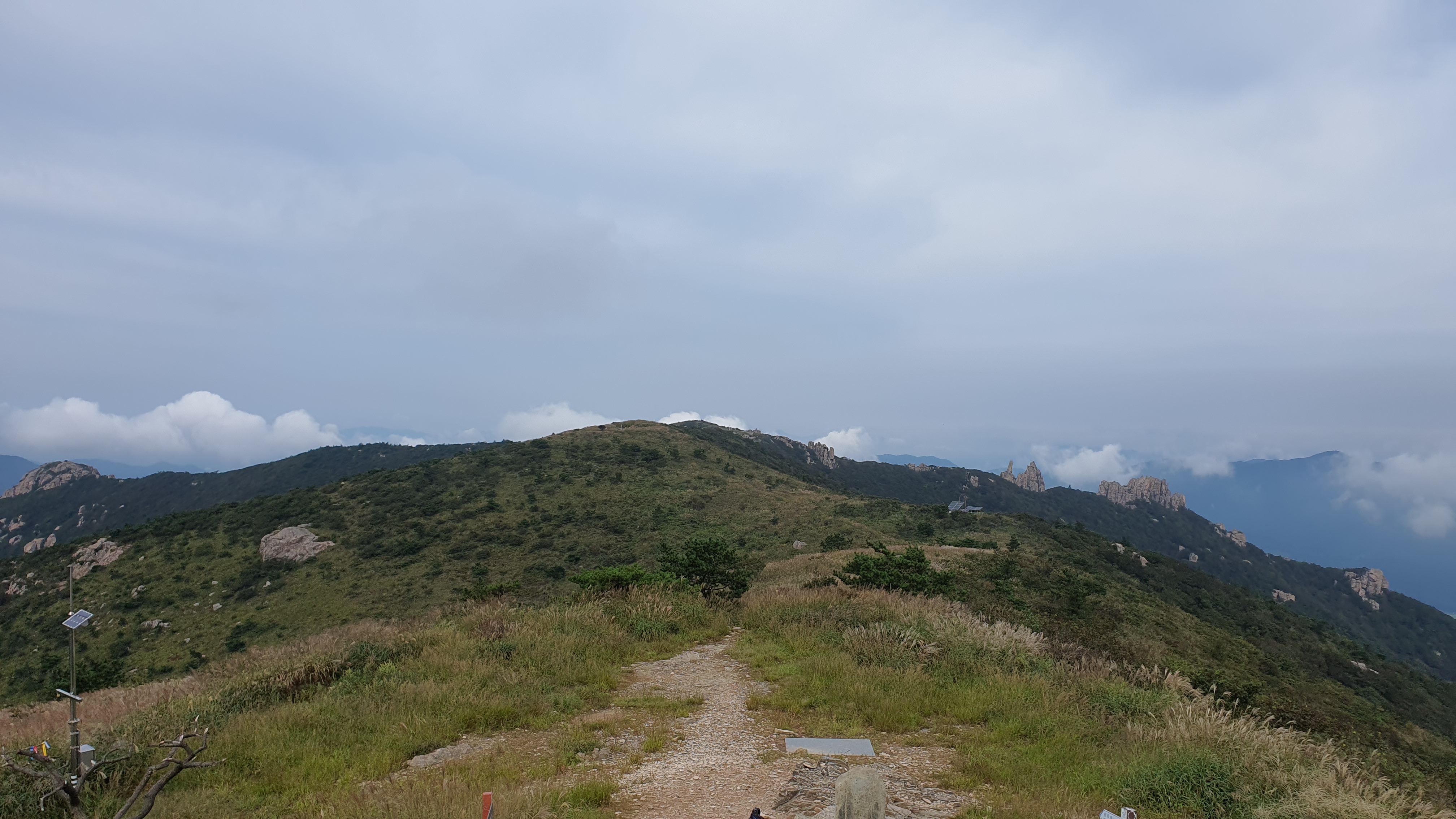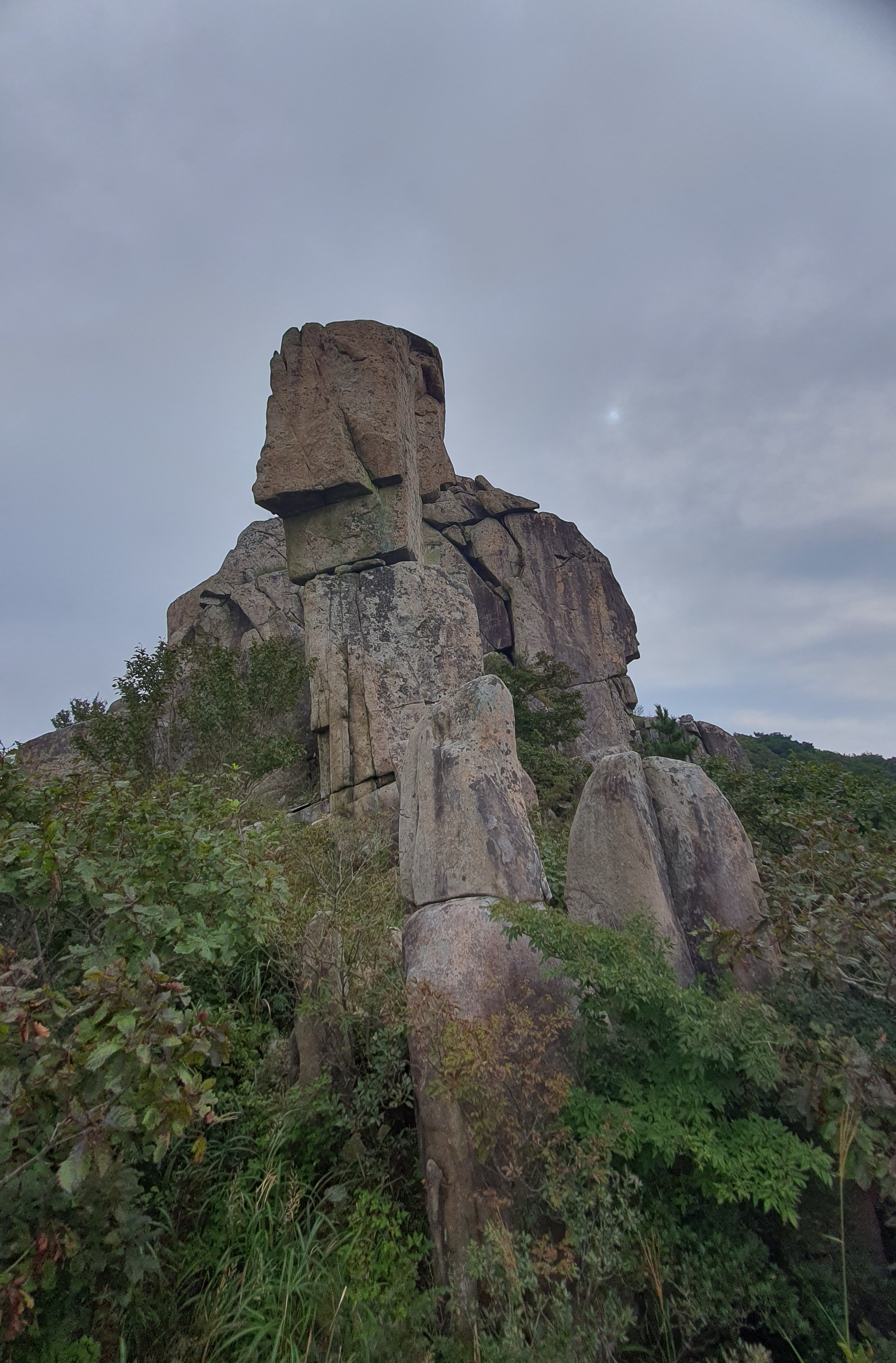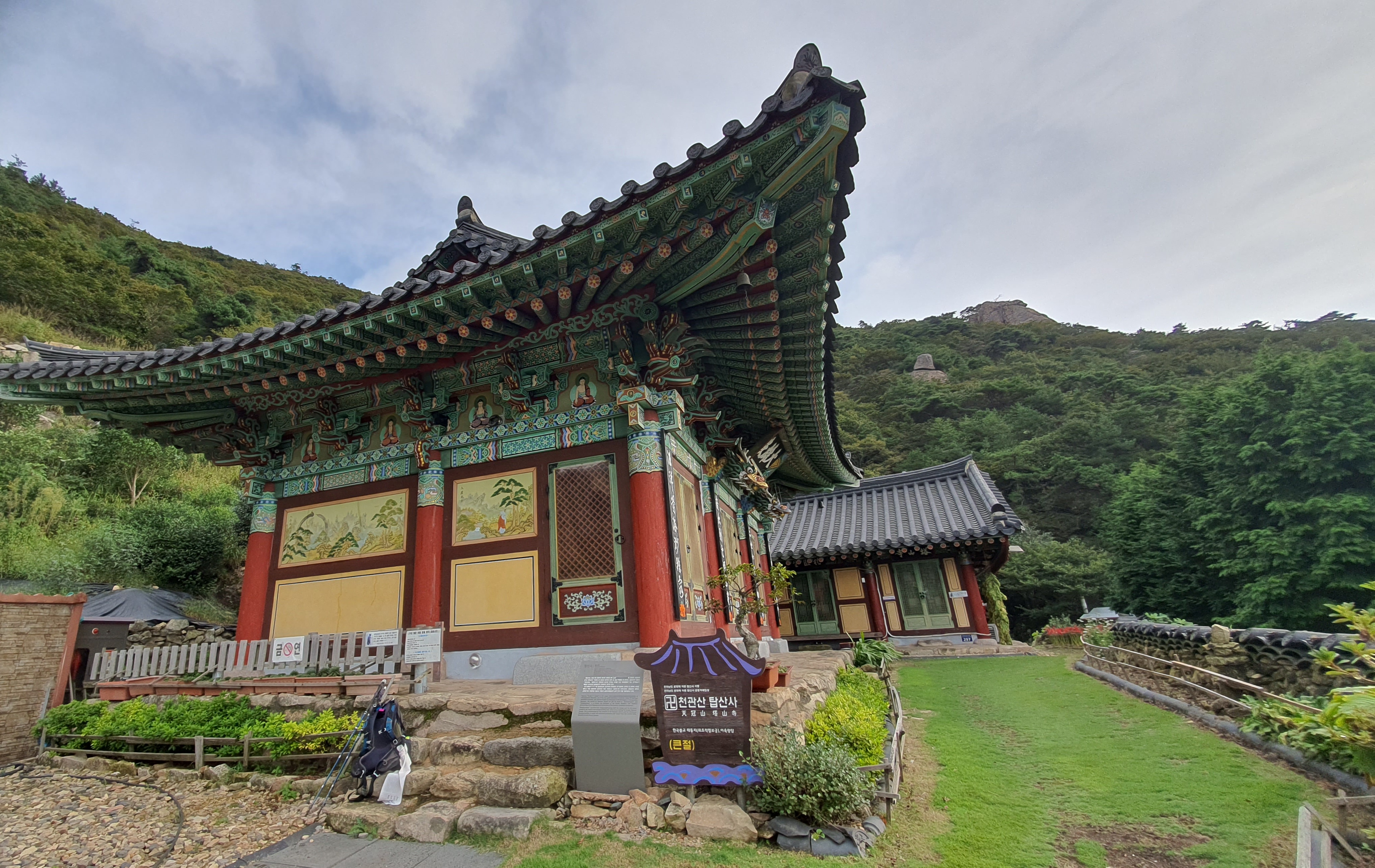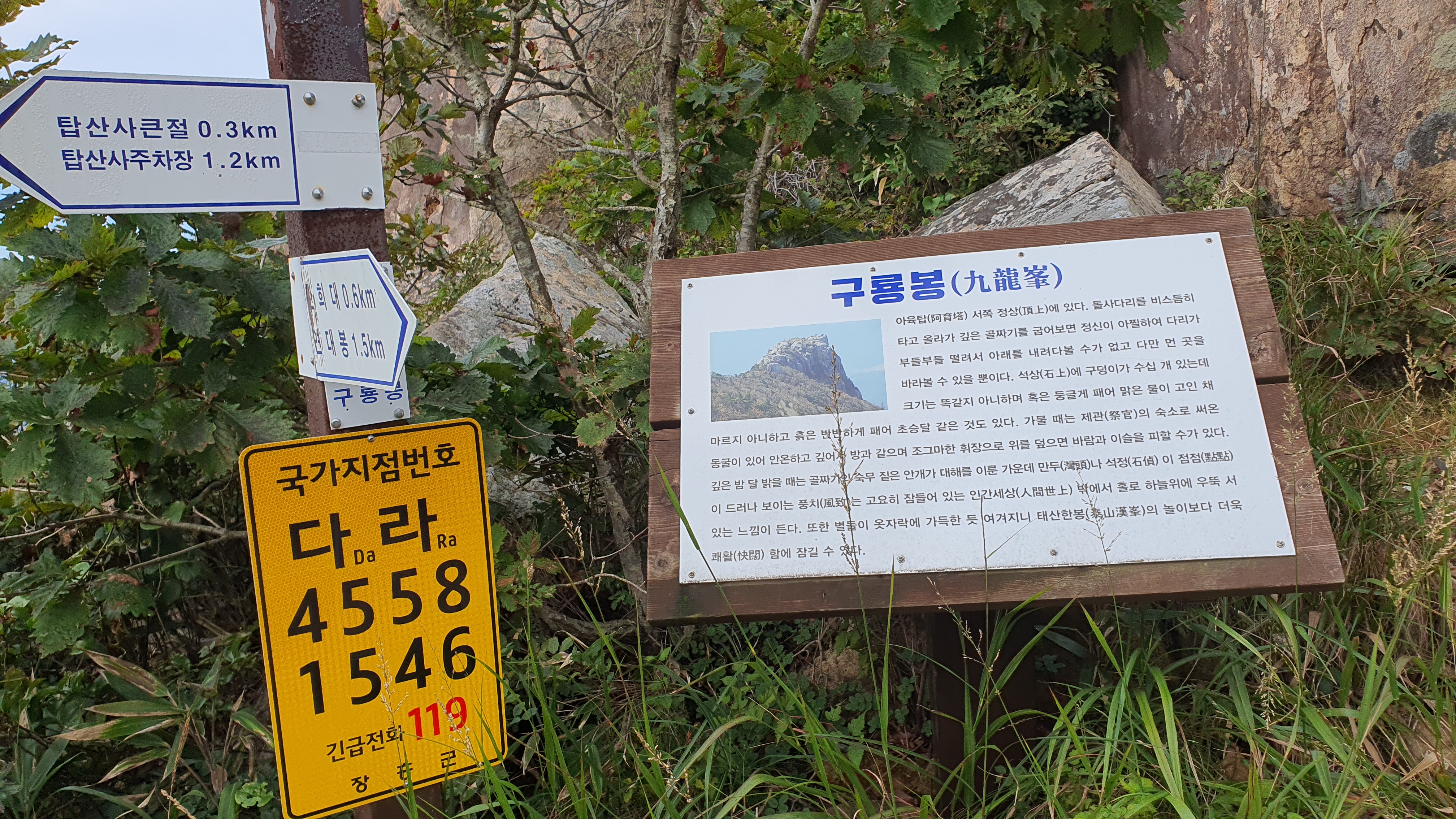 탑산사 주차장이리갈까 저리갈까 차라리 돌아갈까....세갈레 등로가 나오는데...가장 왼쪽 탑산사로 오르면 구룡봉을 바로 오를수 있습니다. 가운데 닭봉코스는 정상 연대봉으로 바로가고...오른쪽은 불영봉으로...석굴 수도처탑산사 도착.고양이 보리가 나와 맞이하고 스님은 법당에서 참선수행중이시네요.절을 통과하여 아육왕탑으로 올라갑니다.아육왕탑 직하 의상암지.아육왕탑. 아육왕은 아쇼카대왕으로 인도 전체를 통일하고 부처님의 가르침을 널리 전파한 부처님의 화신이라고 하는 인도의 대왕입니다.아쇼카대왕이 세운 불탑만 8만4천이라고 하니 과장을 좀 보태도 많은 불탑을 세웠습니다. 그중 우리나라에 부처님진신사리를 모셔와 자연 바위에 사리를 모신 불탑입니다.아육왕탑 위가 구룡봉입니다. 봉우리가 전체 통바위로 웅장하고 장흥 앞바다를 널리 조망할수 있는 최고의 조망처입니다.구룡봉에서 바라본 진죽봉과 지장봉왼쪽이 진죽봉 이티 바위라는데...물구덩이가 월출산 구정봉봉 보다 많습니다.구룡봉에서 날이 좋으면 한라산도 볼수 있습니다.진죽봉 이티바위진죽봉에 가서 보니 이렇게 생겼네요. 이짝서 보면 스핑크스. 저짝서 보면 이티.진죽봉에서 바라본 구룡봉환희대. 너럭바위세서 잠시 누웠다 갑니다.구정봉 라인. 맨앞이 천주봉, 다음이 당번봉, 문수봉, 보현봉, 대세봉, 선재봉, 관음봉...스님이 이름을 지은듯. 봉이라기보다는 바위라고 해야 맞을듯.당번천주봉과 대세봉억새가 가을을 재촉합니다.천관산 연대봉. 정상역할을 합니다.불영봉으로 가다보면 정남진 공원이 보입니다.구룡봉과 탑산사가 보입니다.달팽이바위?불영봉. 영락없는 부처님입니다. 자연이 만들어낸...