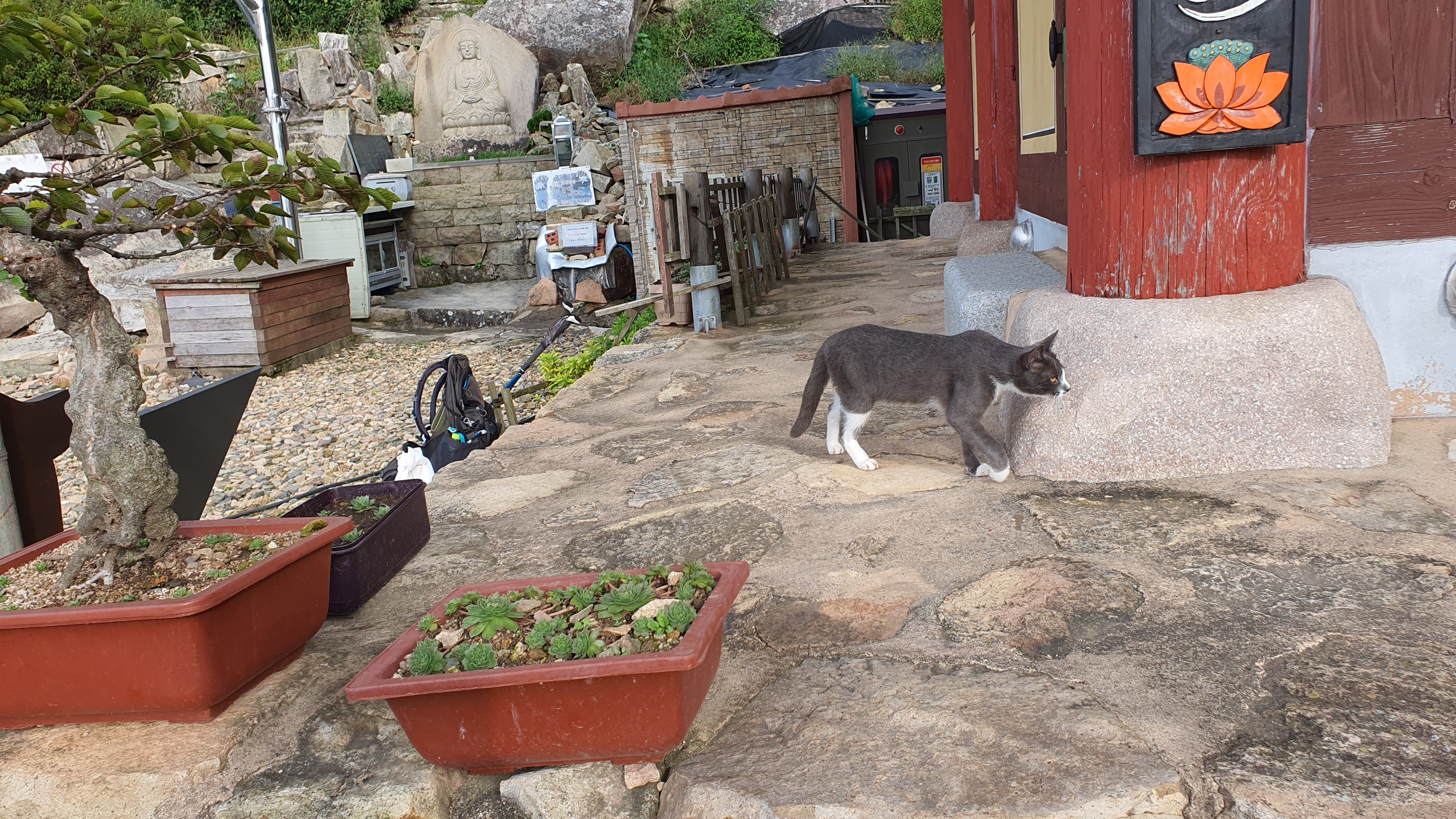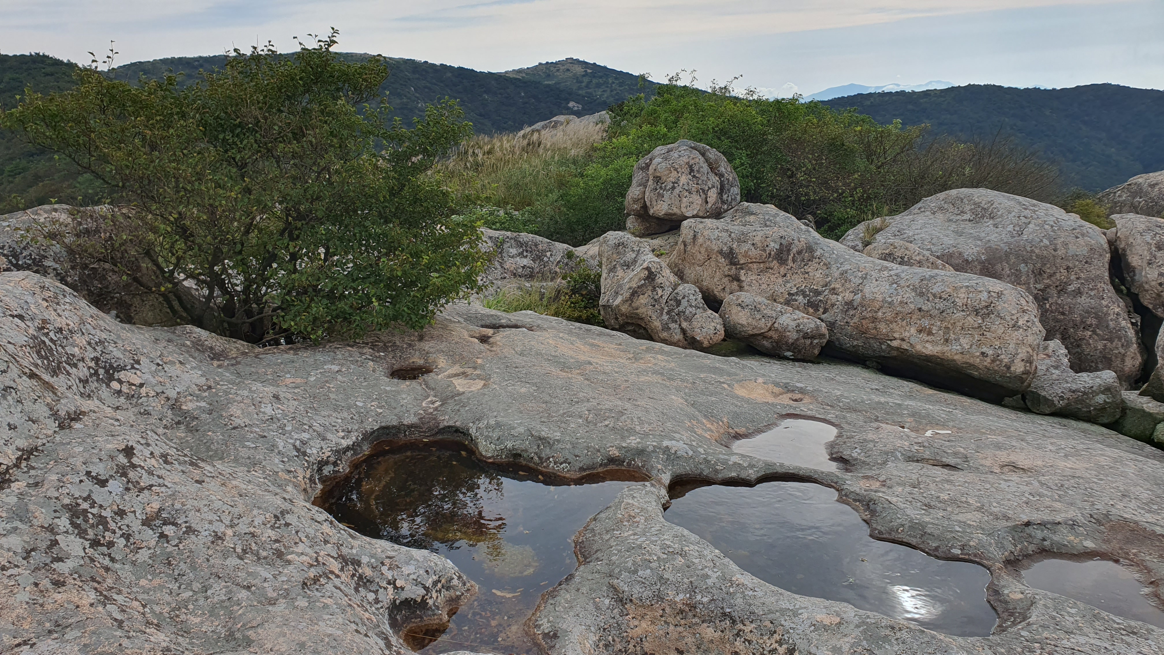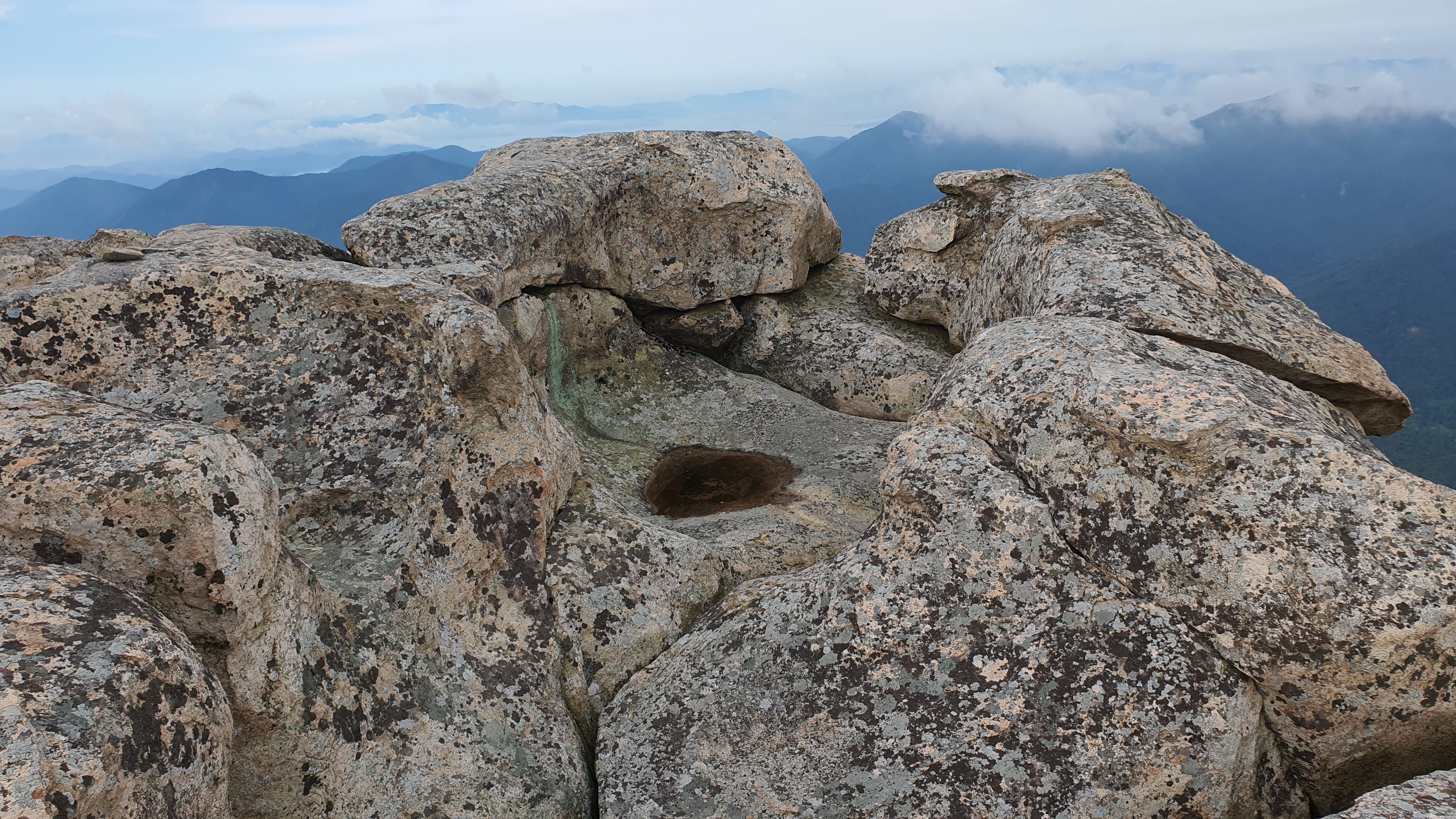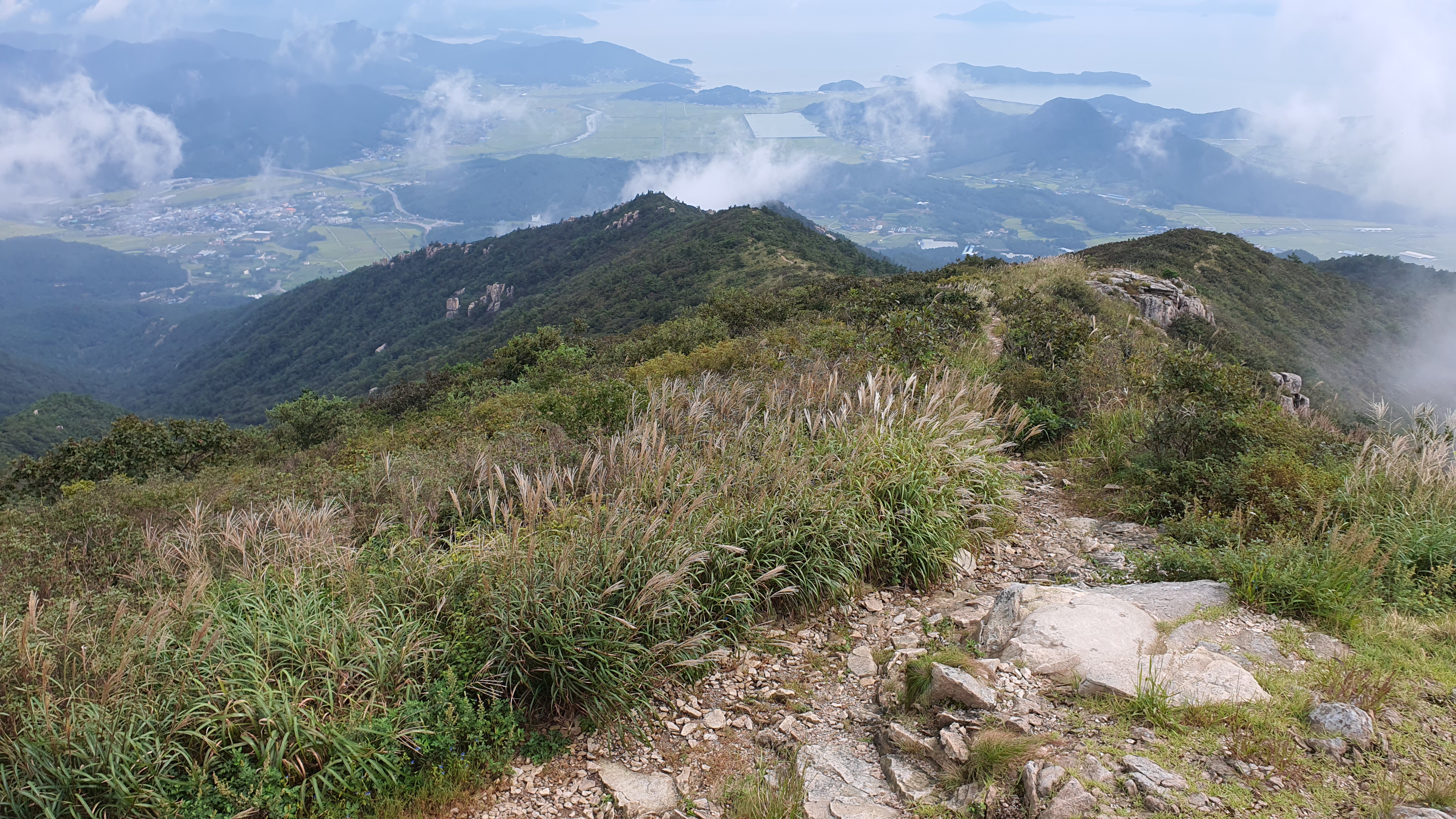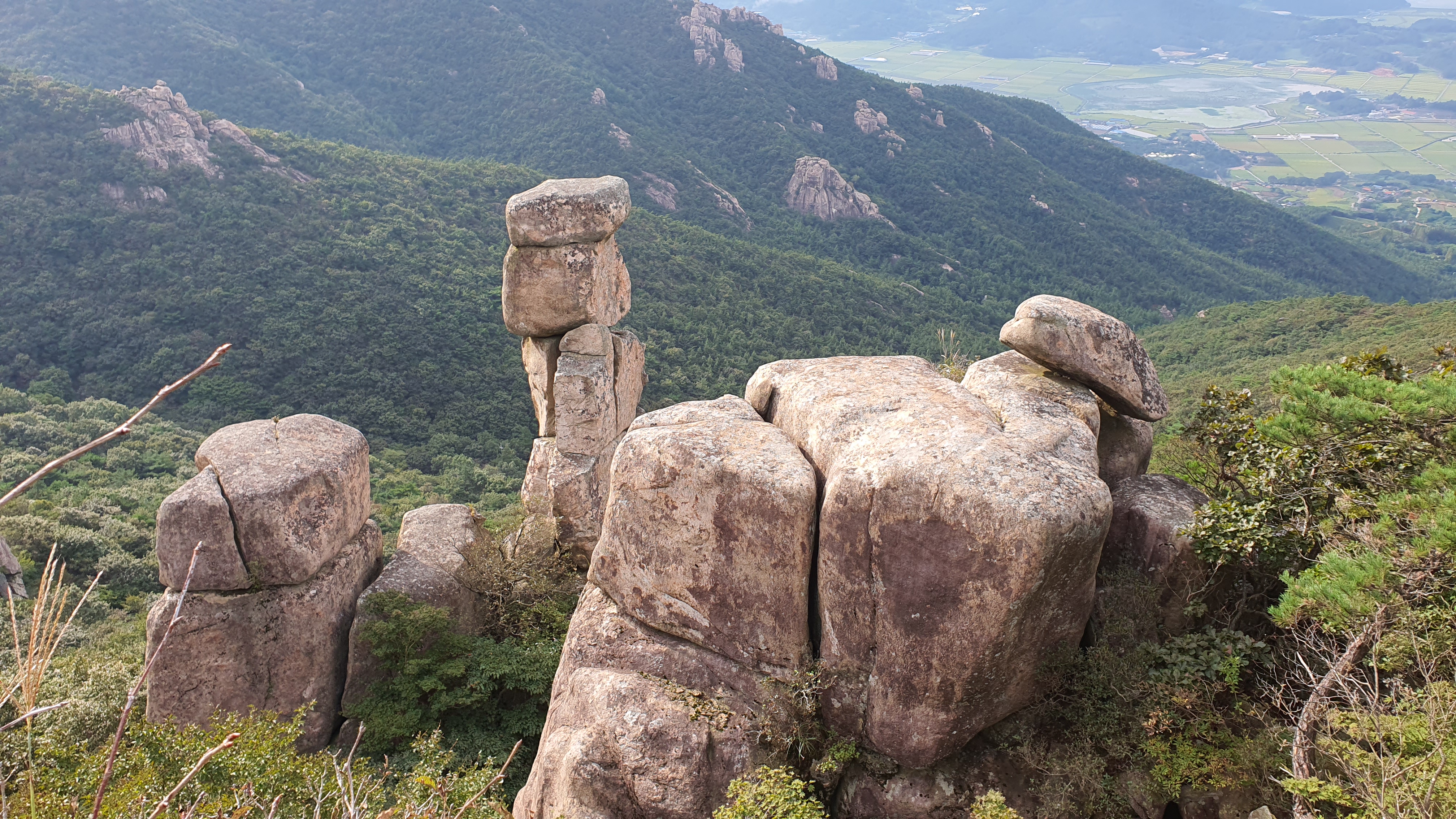 탑산사 주차장이리갈까 저리갈까 차라리 돌아갈까....세갈레 등로가 나오는데...가장 왼쪽 탑산사로 오르면 구룡봉을 바로 오를수 있습니다. 가운데 닭봉코스는 정상 연대봉으로 바로가고...오른쪽은 불영봉으로...석굴 수도처탑산사 도착.고양이 보리가 나와 맞이하고 스님은 법당에서 참선수행중이시네요.절을 통과하여 아육왕탑으로 올라갑니다.아육왕탑 직하 의상암지.아육왕탑. 아육왕은 아쇼카대왕으로 인도 전체를 통일하고 부처님의 가르침을 널리 전파한 부처님의 화신이라고 하는 인도의 대왕입니다.아쇼카대왕이 세운 불탑만 8만4천이라고 하니 과장을 좀 보태도 많은 불탑을 세웠습니다. 그중 우리나라에 부처님진신사리를 모셔와 자연 바위에 사리를 모신 불탑입니다.아육왕탑 위가 구룡봉입니다. 봉우리가 전체 통바위로 웅장하고 장흥 앞바다를 널리 조망할수 있는 최고의 조망처입니다.구룡봉에서 바라본 진죽봉과 지장봉왼쪽이 진죽봉 이티 바위라는데...물구덩이가 월출산 구정봉봉 보다 많습니다.구룡봉에서 날이 좋으면 한라산도 볼수 있습니다.진죽봉 이티바위진죽봉에 가서 보니 이렇게 생겼네요. 이짝서 보면 스핑크스. 저짝서 보면 이티.진죽봉에서 바라본 구룡봉환희대. 너럭바위세서 잠시 누웠다 갑니다.구정봉 라인. 맨앞이 천주봉, 다음이 당번봉, 문수봉, 보현봉, 대세봉, 선재봉, 관음봉...스님이 이름을 지은듯. 봉이라기보다는 바위라고 해야 맞을듯.당번천주봉과 대세봉억새가 가을을 재촉합니다.천관산 연대봉. 정상역할을 합니다.불영봉으로 가다보면 정남진 공원이 보입니다.구룡봉과 탑산사가 보입니다.달팽이바위?불영봉. 영락없는 부처님입니다. 자연이 만들어낸...
